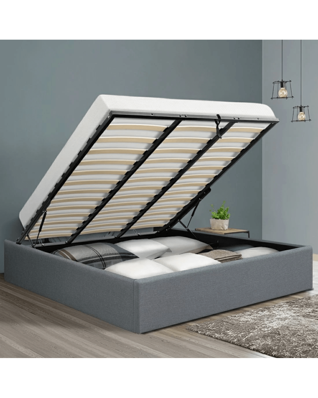 Artiss Bed Frame King Size Gas Lift Base TOKI - Grey