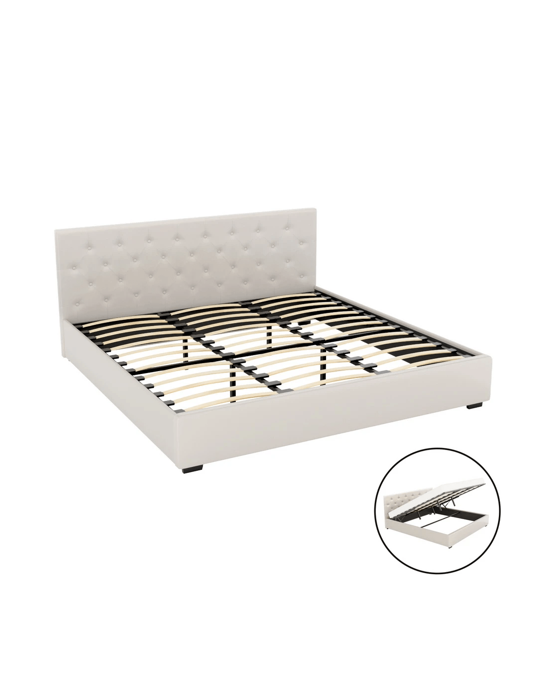 Sold by Aisle SixArtiss Bed Frame King Size Gas Lift VILA - Beige