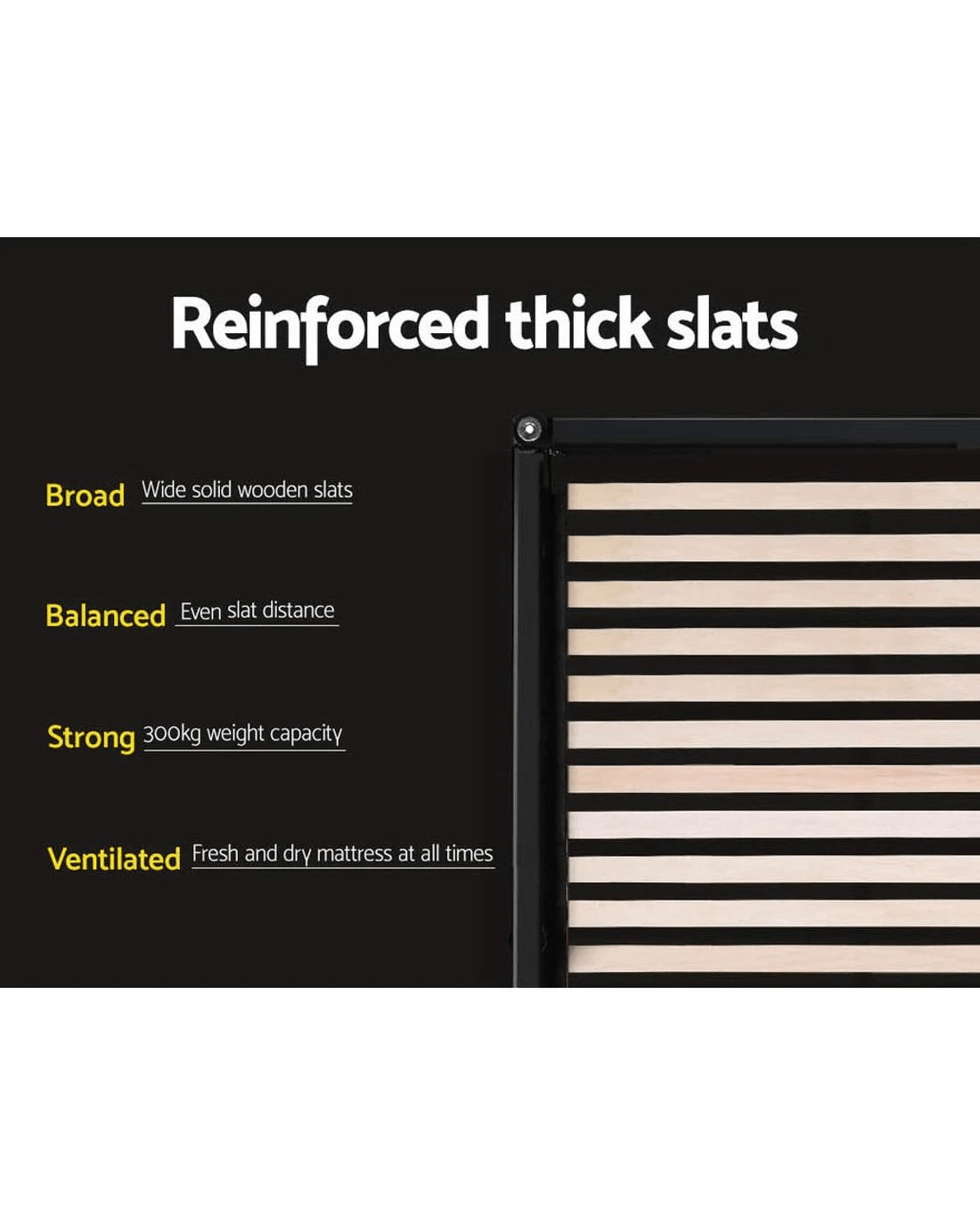 Our Toki Gas-Lift Bed Frame combines exquisite style with great storage practicality. The frame is built with reinforced steel construction while the wooden arched slat frame helps to distribute weight evenly across the framework. Heavy-duty connectors are used throughout the frame to increase its durability and reliability with long -term robust use. And for an elegant finish, the bed frame is padded with high-density foam and upholstered with premium linen fabric. Best of all, the bed frame comes with a gas-lift storage system where you will find acres of space underneath the slatted frame to store all your bedroom and home essentials. And if so desired, the bed frame can be matched with our complementary bed head for a complete look. The bed frame is designed to fit standard Australian-sized mattress.