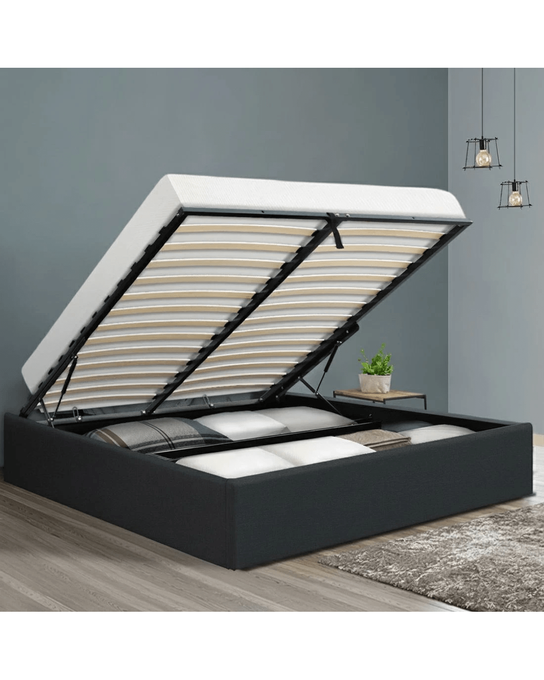 Artiss Bed Frame Queen Size Gas Lift Base Charcoal TOKI - Charcoal