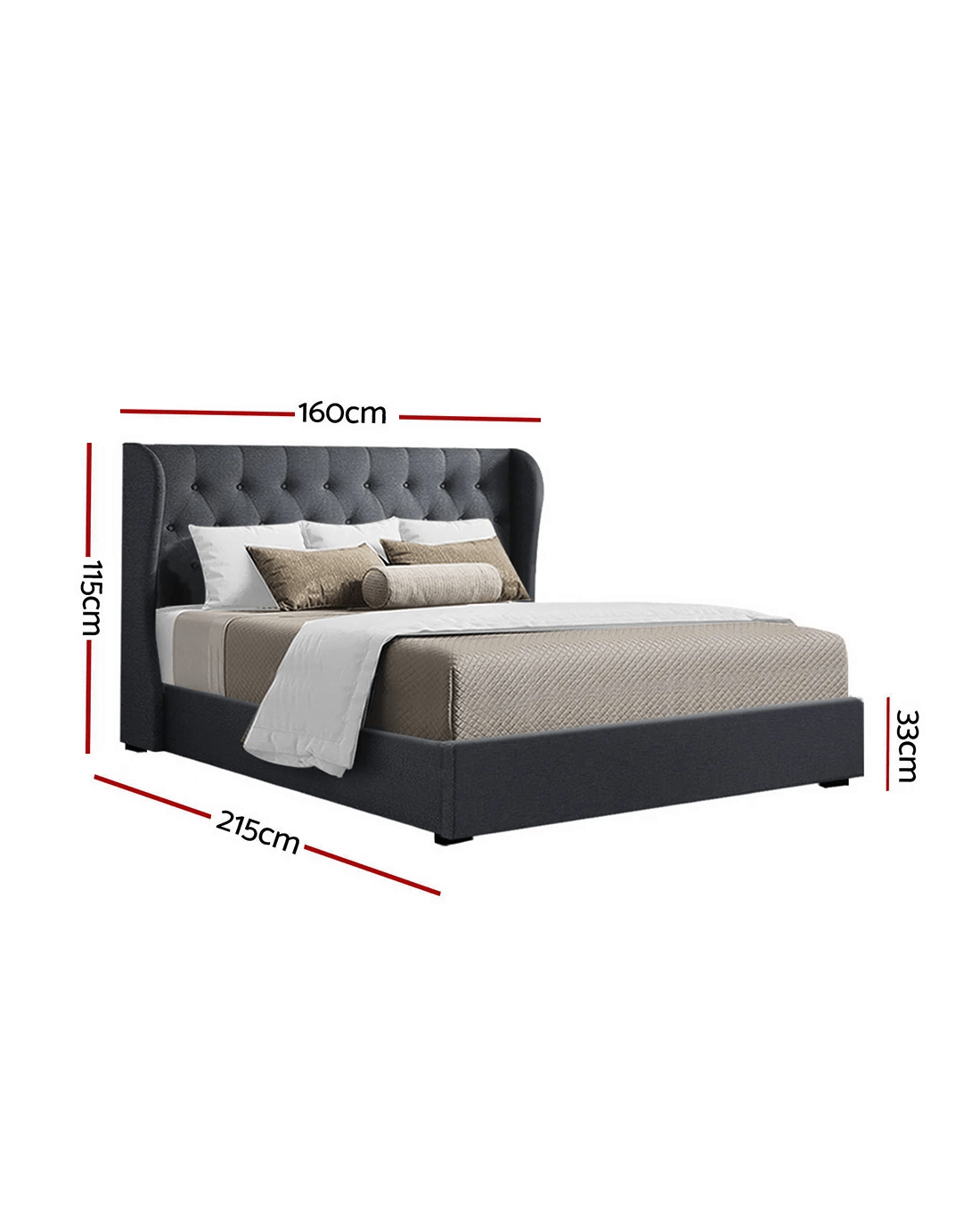 Sold by Aisle SixArtiss Bed Frame Queen Size Gas Lift Charcoal ISSA - Charcoal