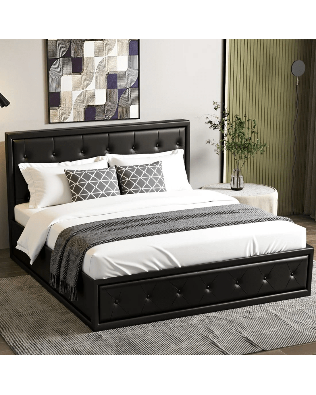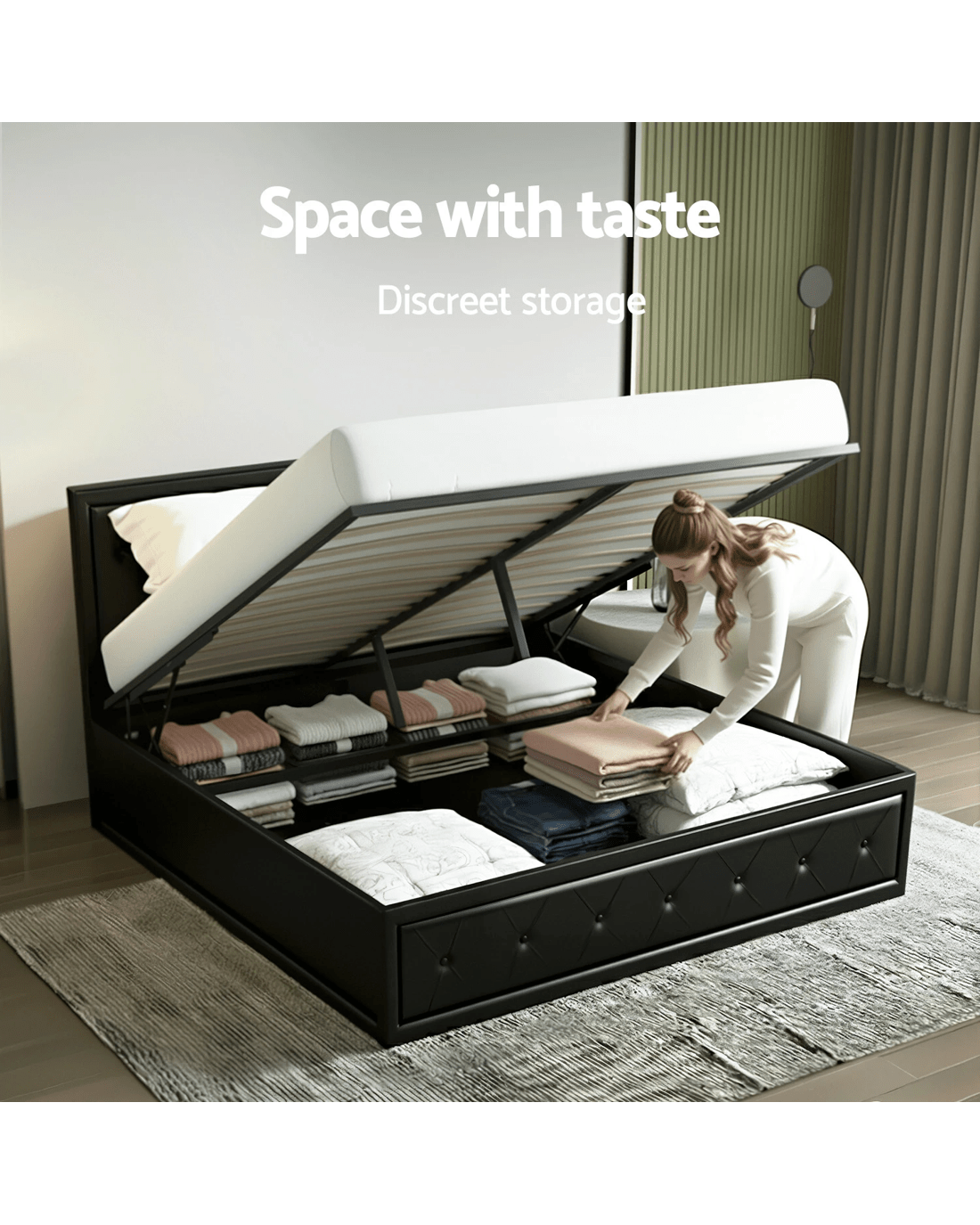 Sold by Aisle SixArtiss Bed Frame Queen Size Gas Lift Under Bed Storage Upholstered Sturdy Easy Assembly - Black
