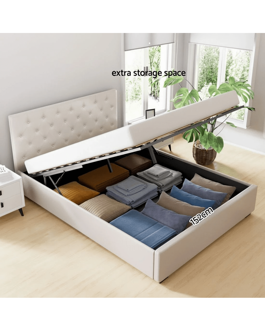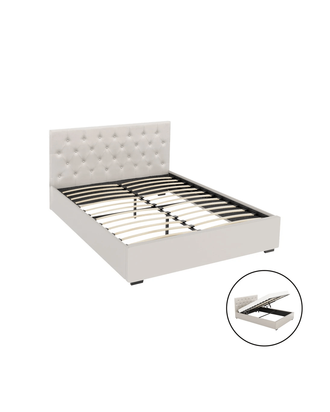 Sold by Aisle SixArtiss Bed Frame Queen Size Gas Lift VILA - Beige