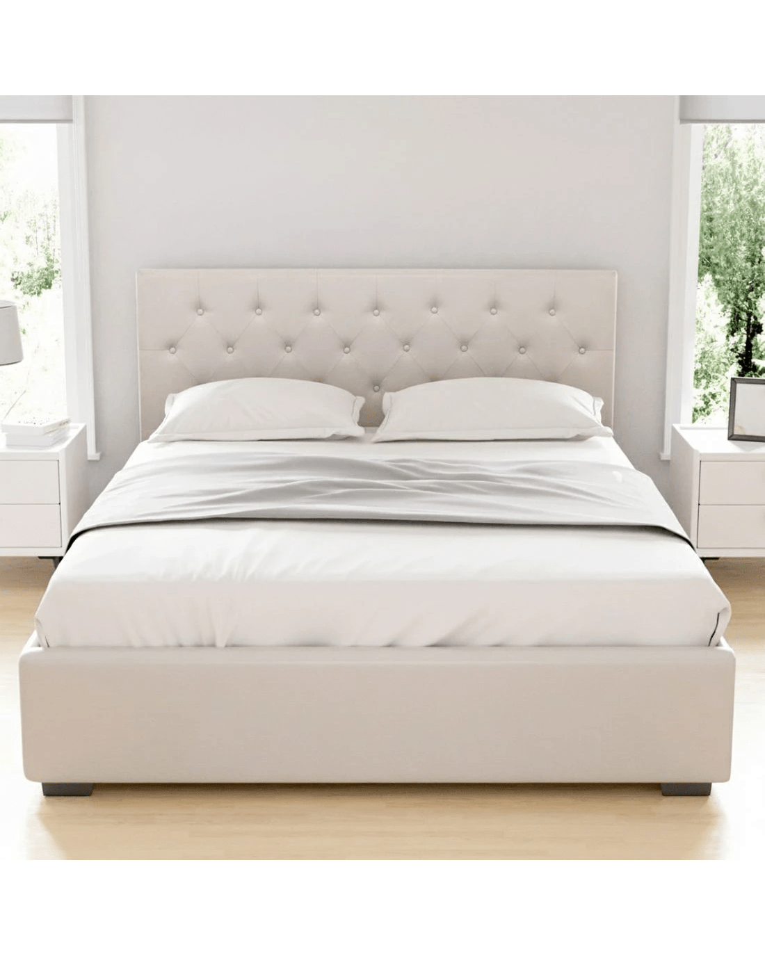 Upholstered with premium faux linen fabric