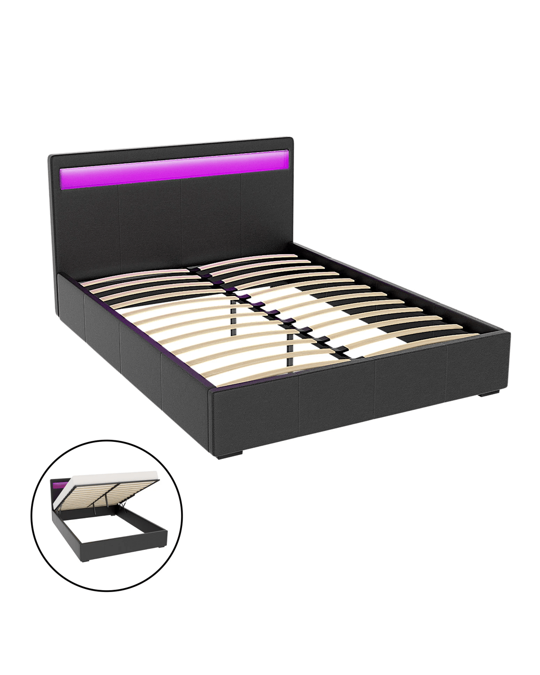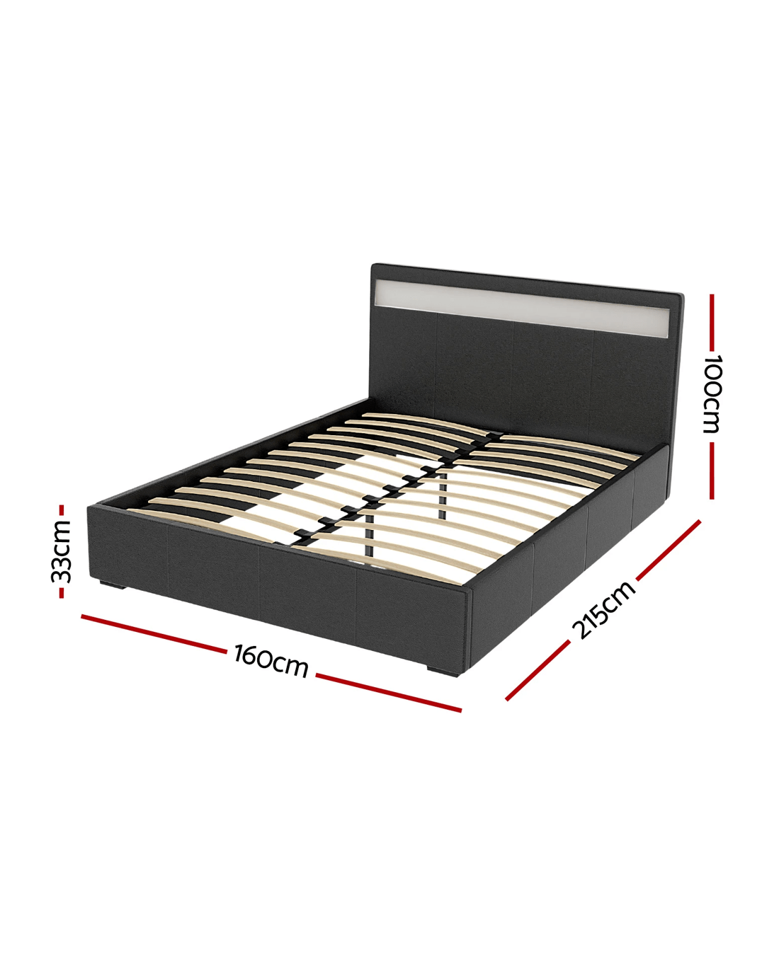 Sold by Aisle SixArtiss Bed Frame Queen Size LED Gas Lift COLE - Black