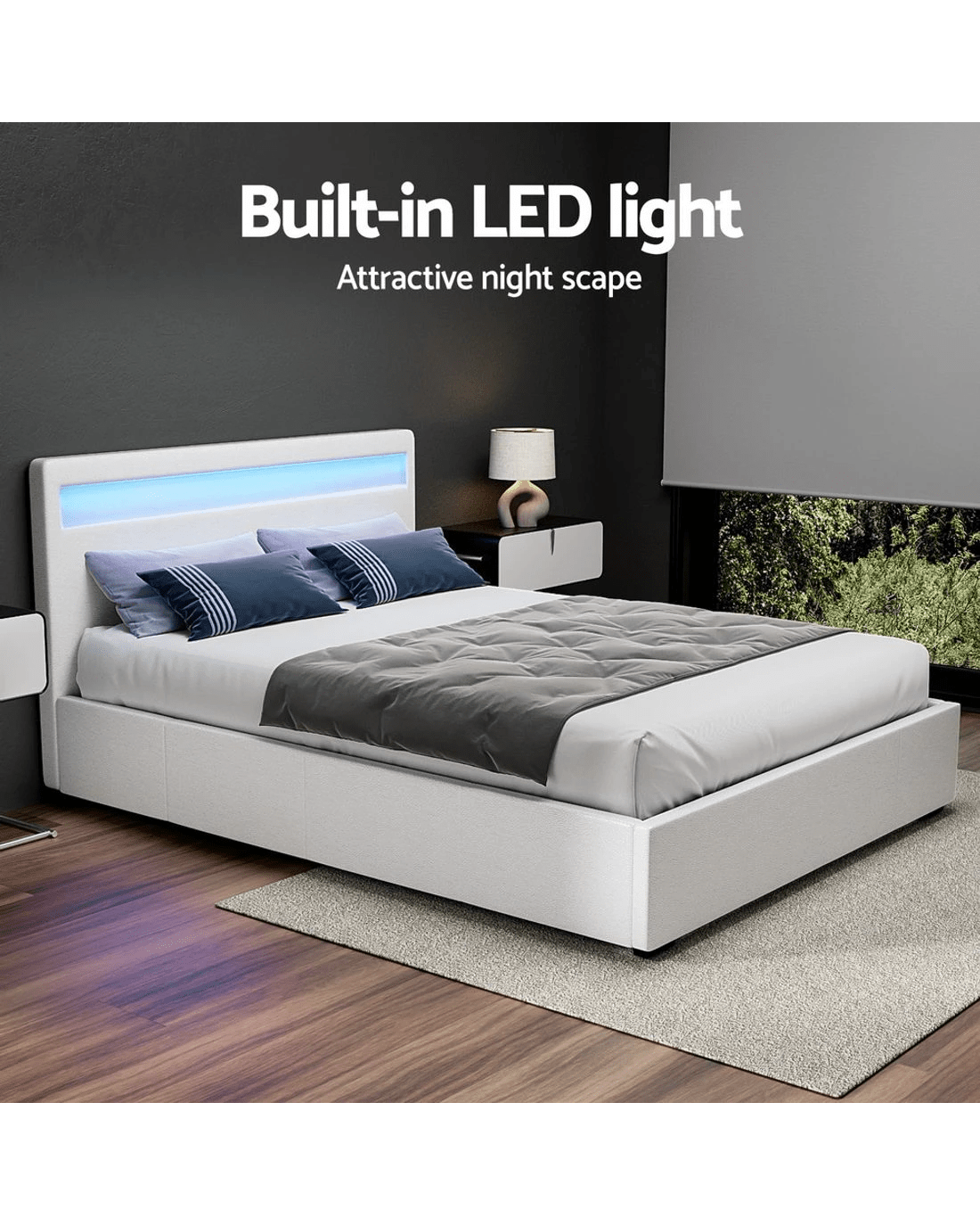 Sold by Aisle SixArtiss Bed Frame Queen Size LED Gas Lift COLE - White