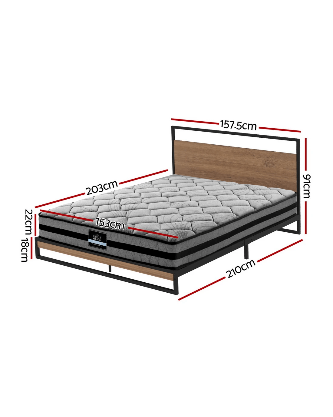 Queen: 203cm x 153cm x 22cm