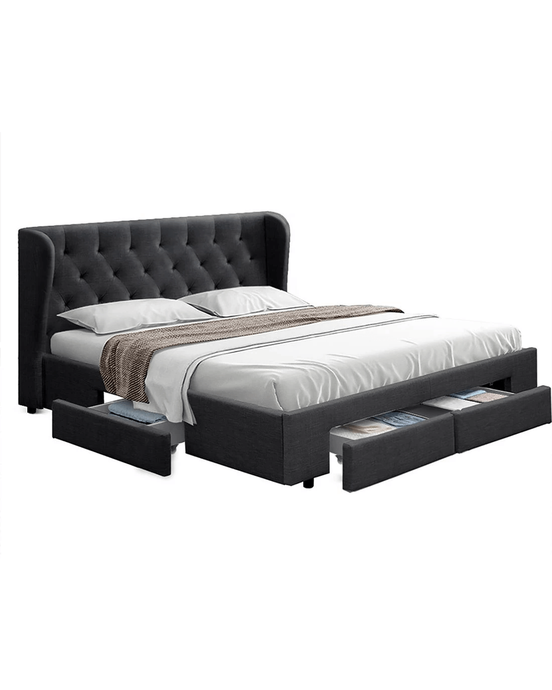 Artiss Bed Frame Queen Size with 4 Drawers Charcoal MILA - Grey