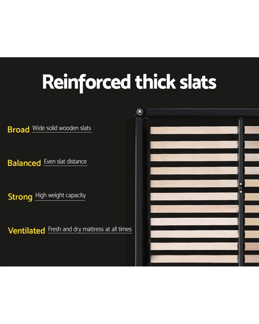 Constructed with a sturdy steel frame that's reinforced with metal bars and heavy-duty connectors, the Mila Bed Frame is also padded with high density foam and upholstered in premium faux linen fabric for a soft and comfortable touch. The Bed Frame features a wooden arched slat base that helps to distribute weight evenly across the frame and a centre support strut to provide added stability to the overall structure.
