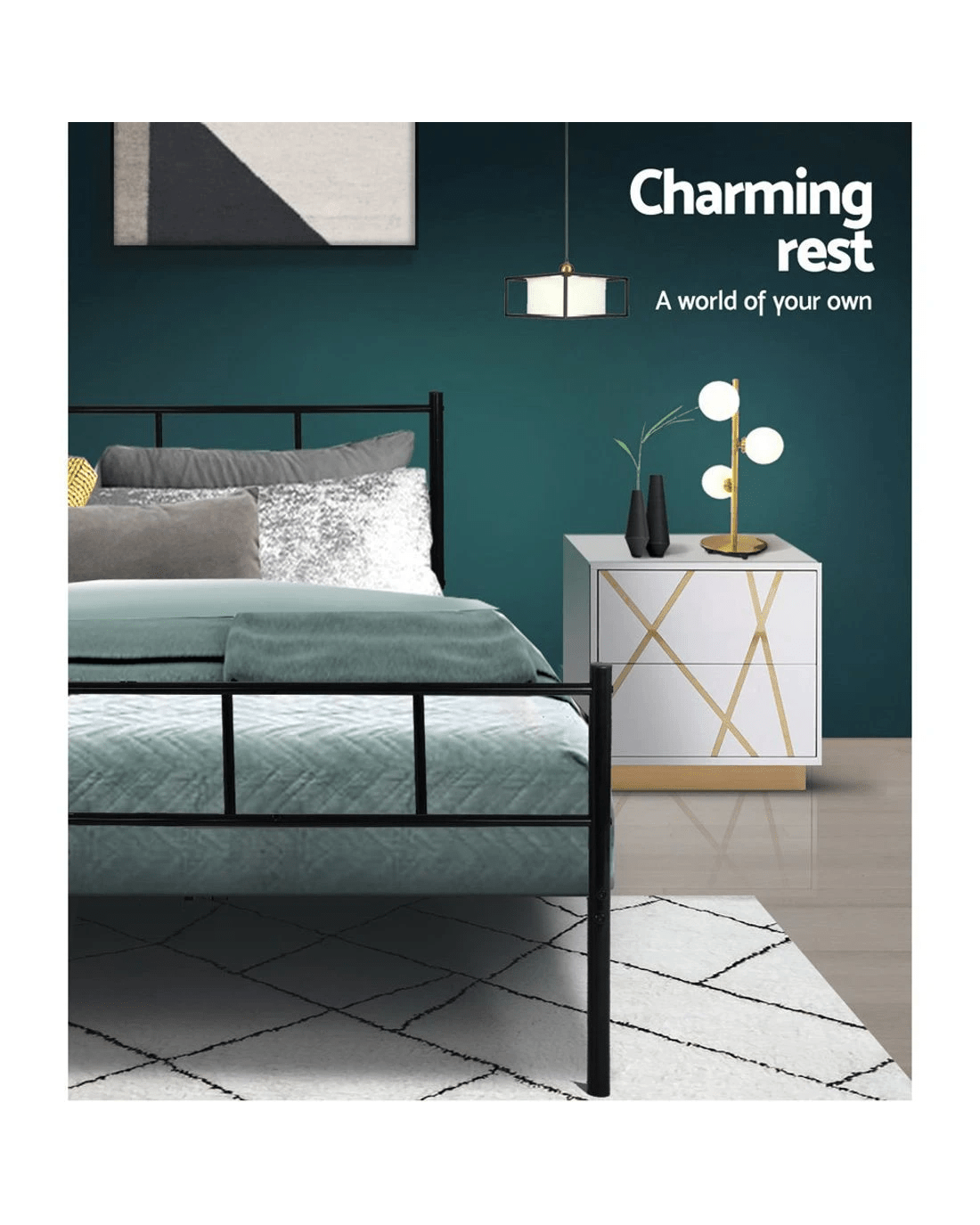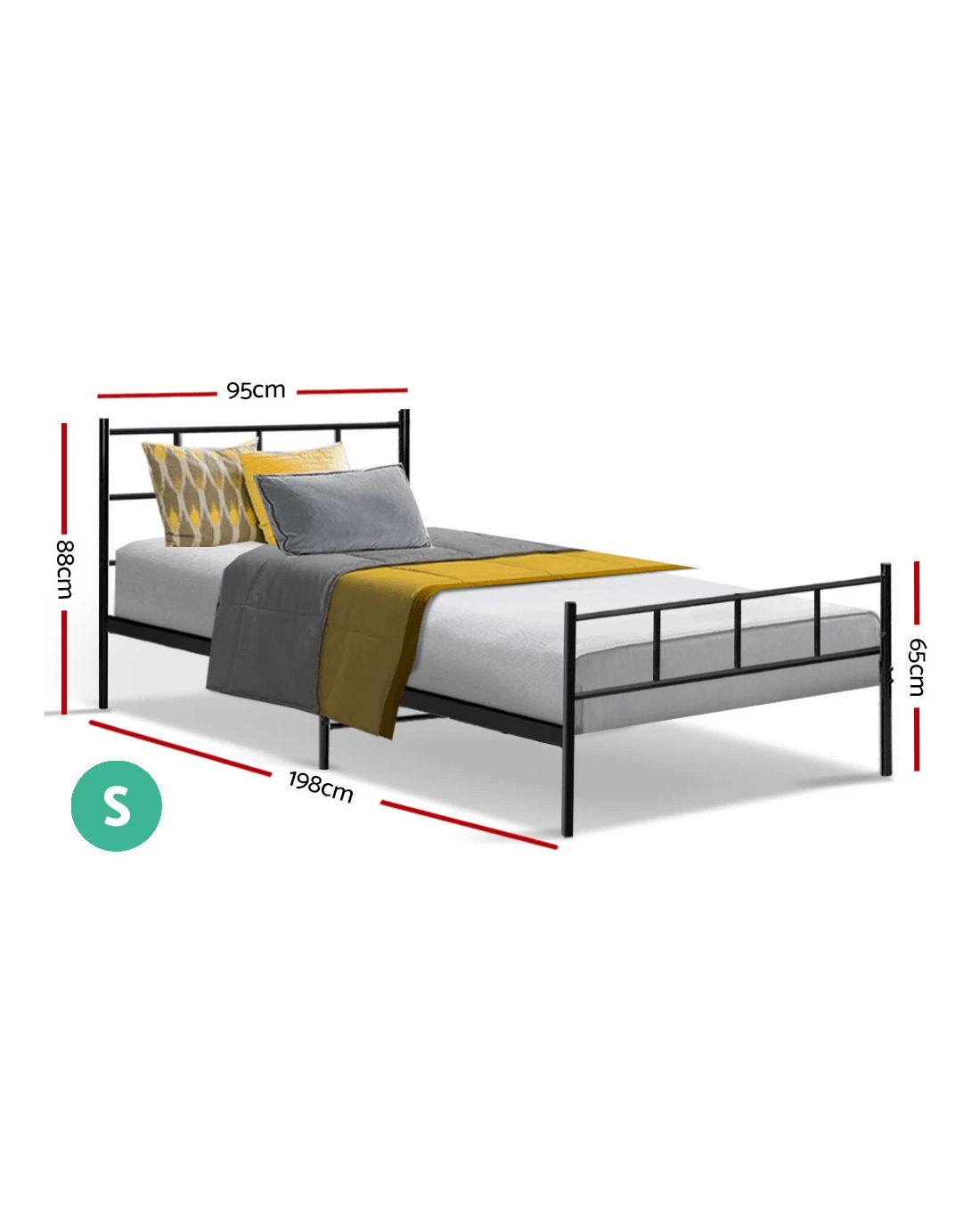 Sold by Aisle SixArtiss Bed Frame Single Metal Bed Frames SOL - Black