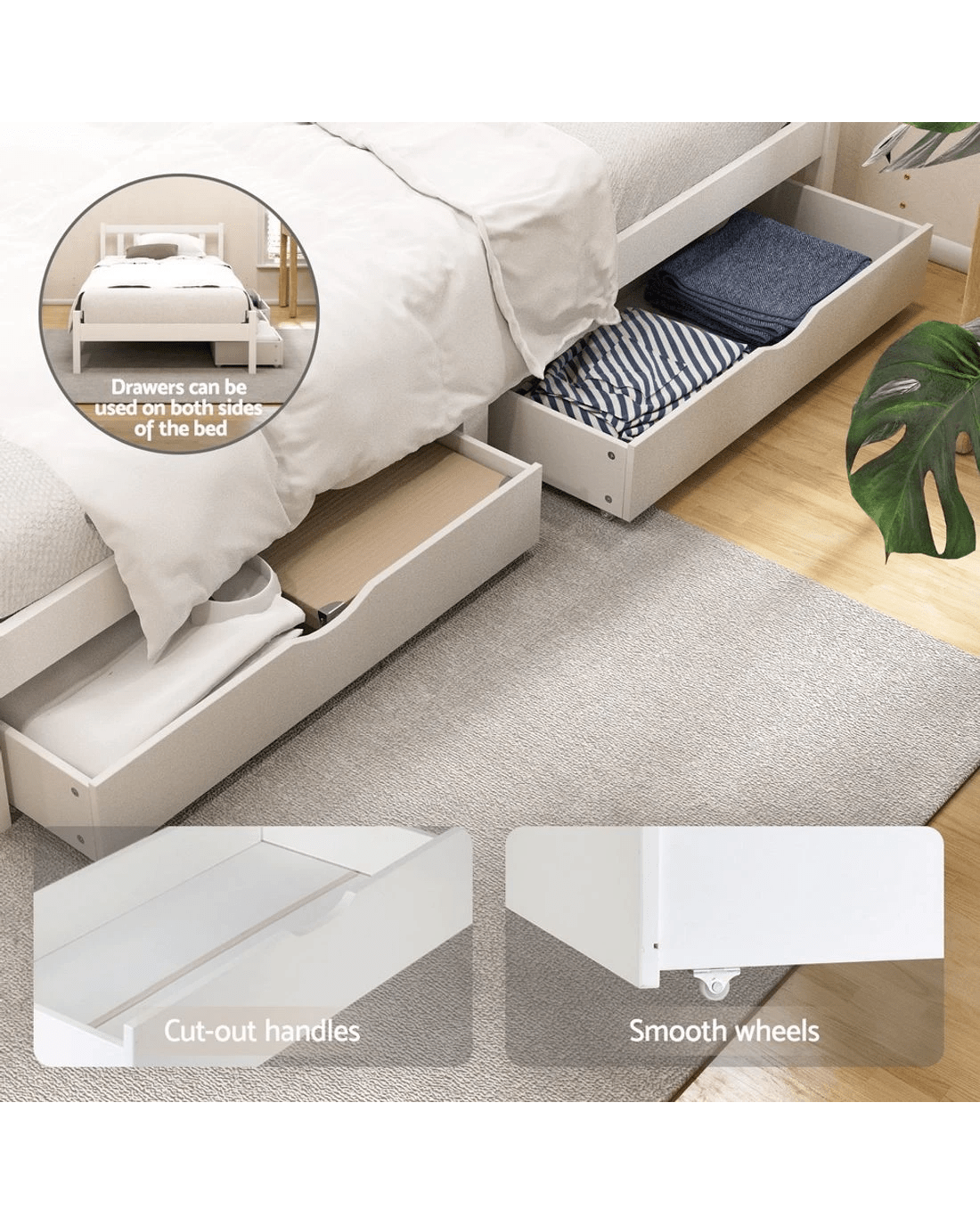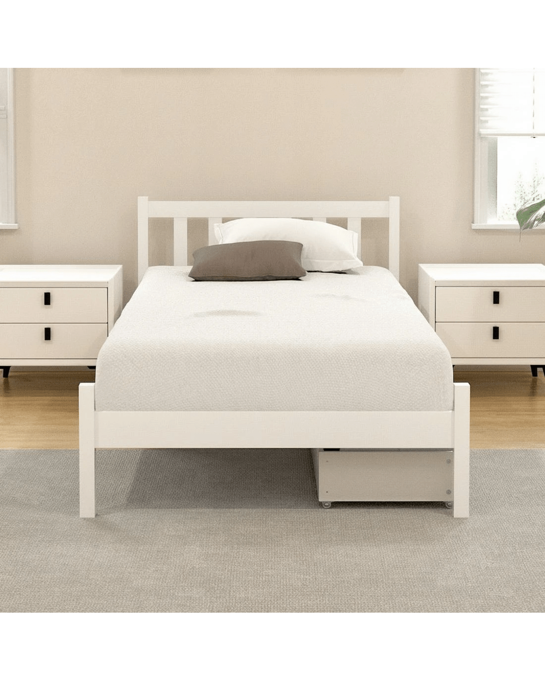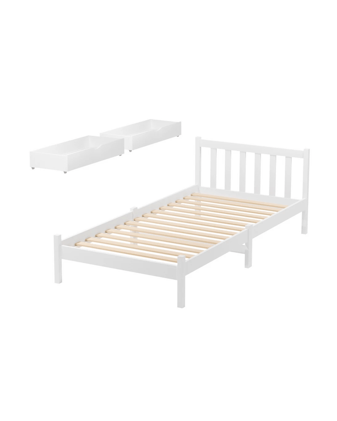 Sold by Aisle SixArtiss Bed Frame Single Size Wooden Platform with 2 Storage Drawers SOFIE - White