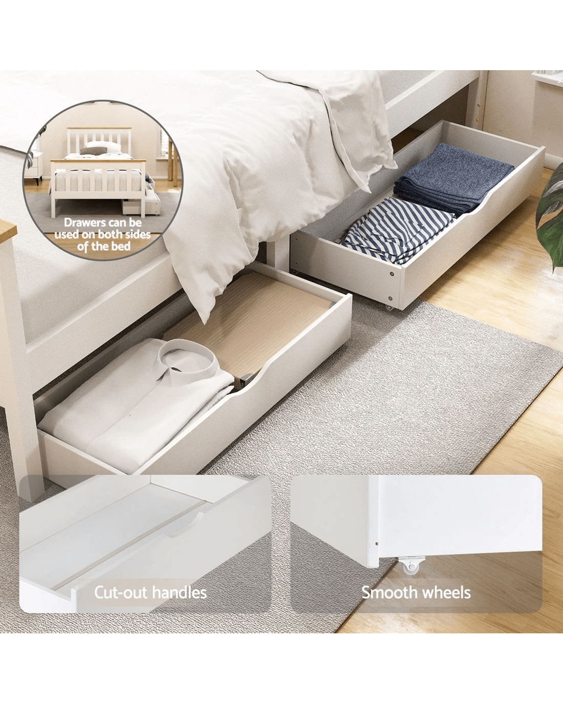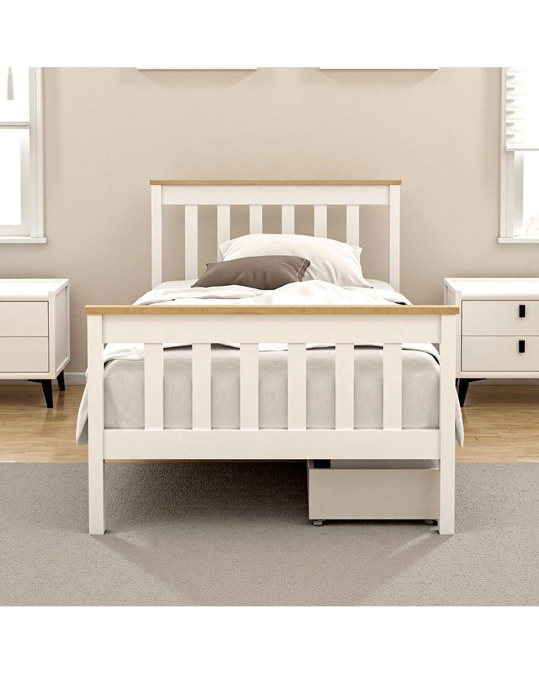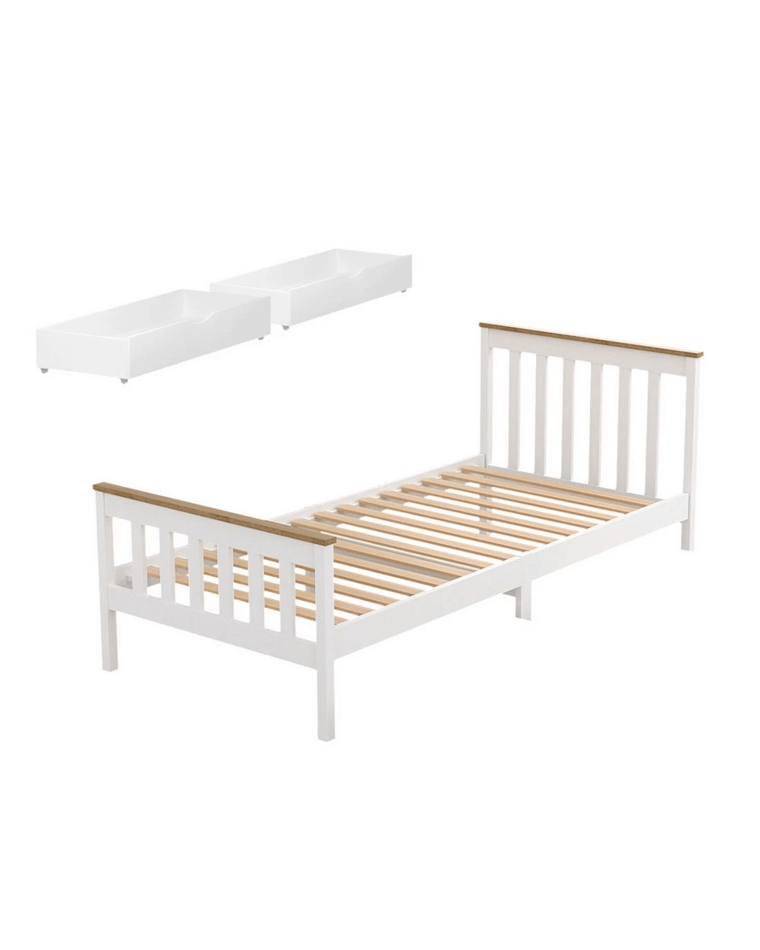 Sold by Aisle SixArtiss Bed Frame Single Size Wooden Platform with 2 Storage Drawers PONY - White