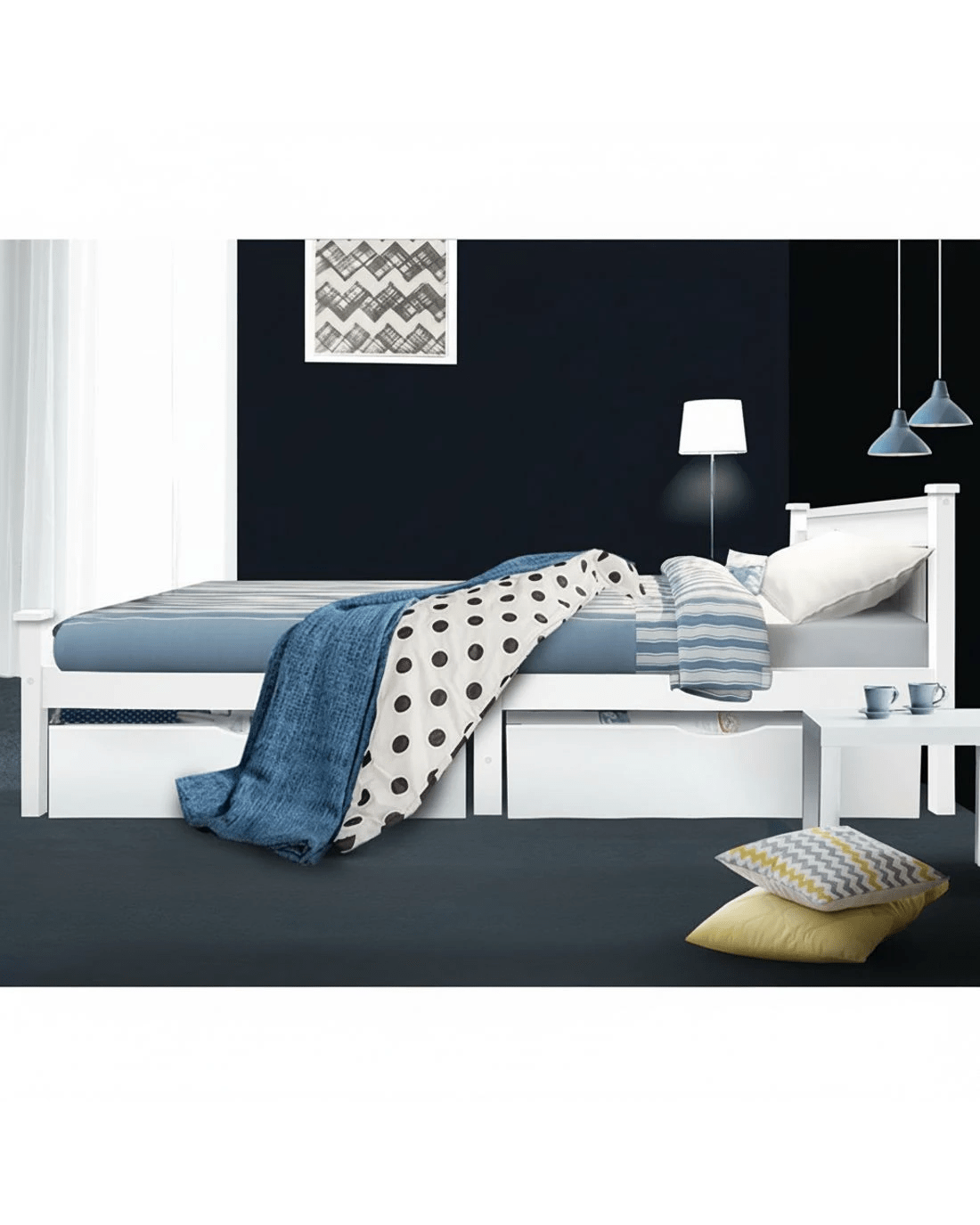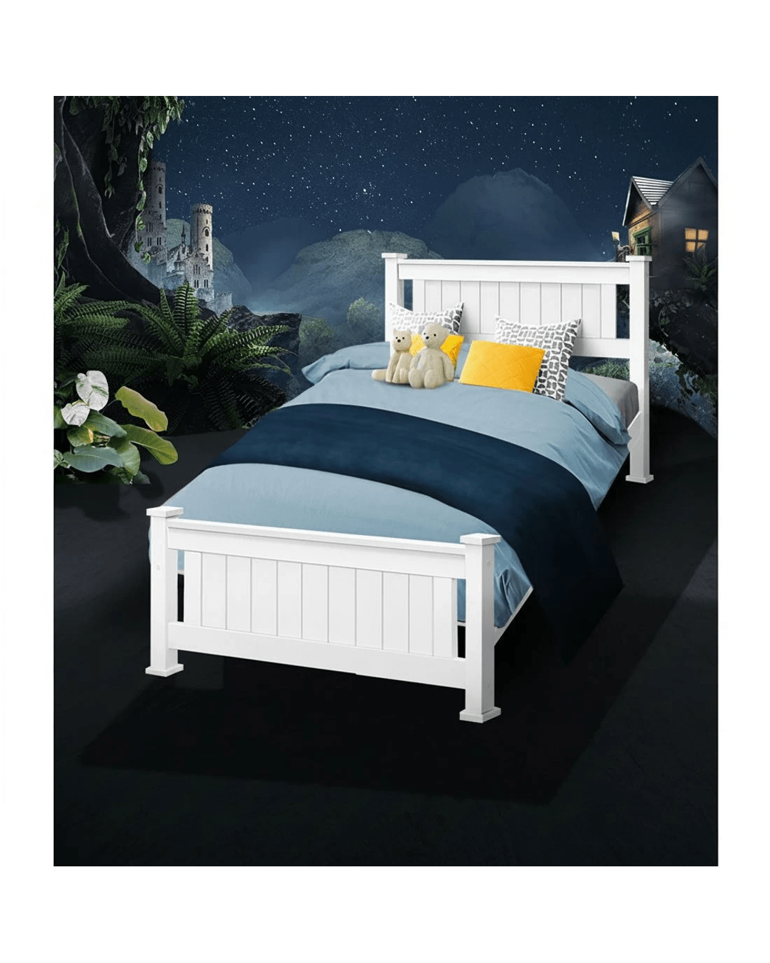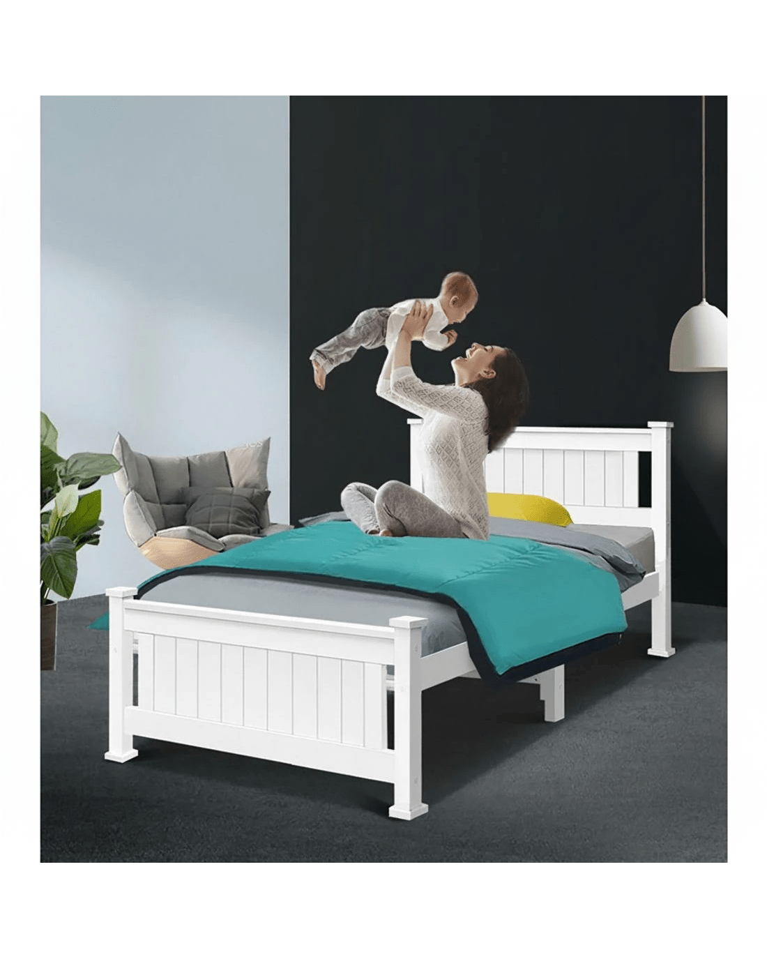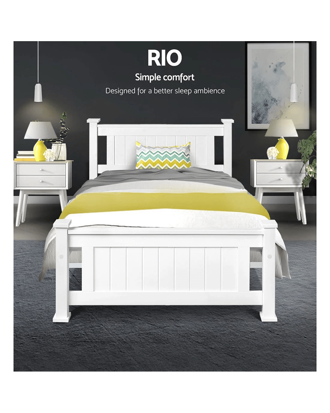Made of natural pine wood, the Rio bed frame is ideal for your kids as it for any adult. Strong and sturdy, the bed frame comes with a solid timber slated base, stylish headboard, heavy duty steel fixings and smooth edges all round. Finished in a non-toxic, eco-friendly white paint, the neutral coloured bed frame makes for easy décor coordination with any bedroom. So, the next time you need a durable and contemporary bed frame that has quality written all over it, make it a Rio bed frame from ozplaza.living. We make living great.