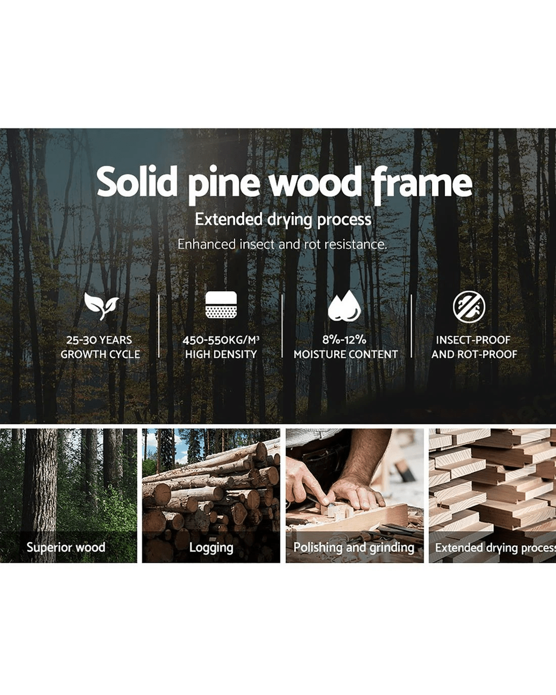 Bed frame material: Pine wood