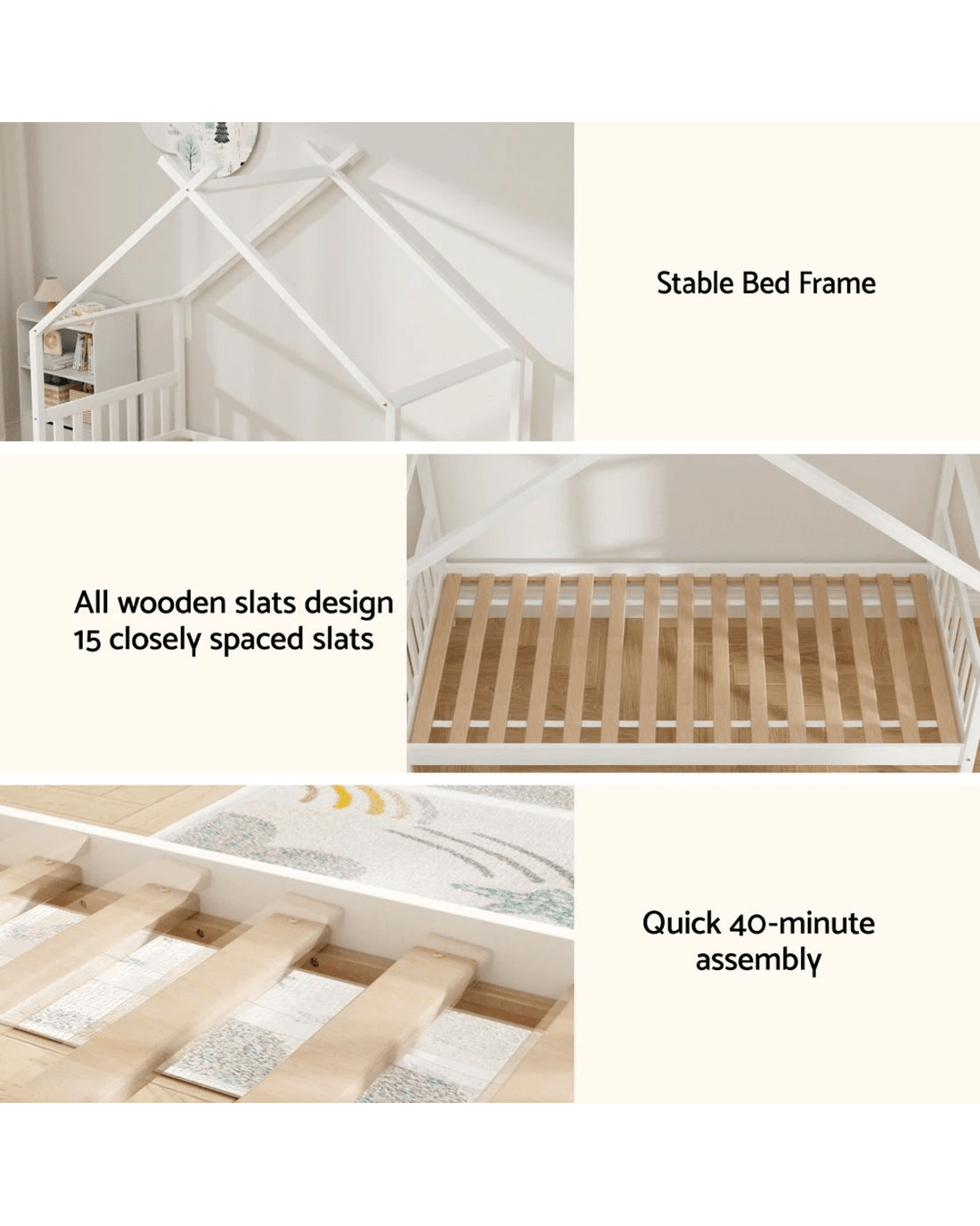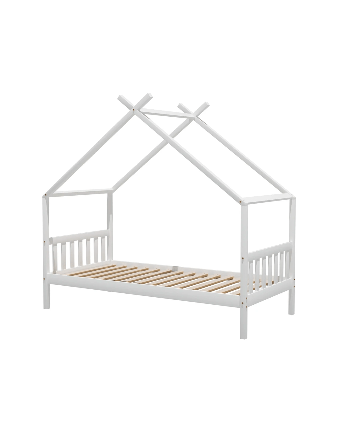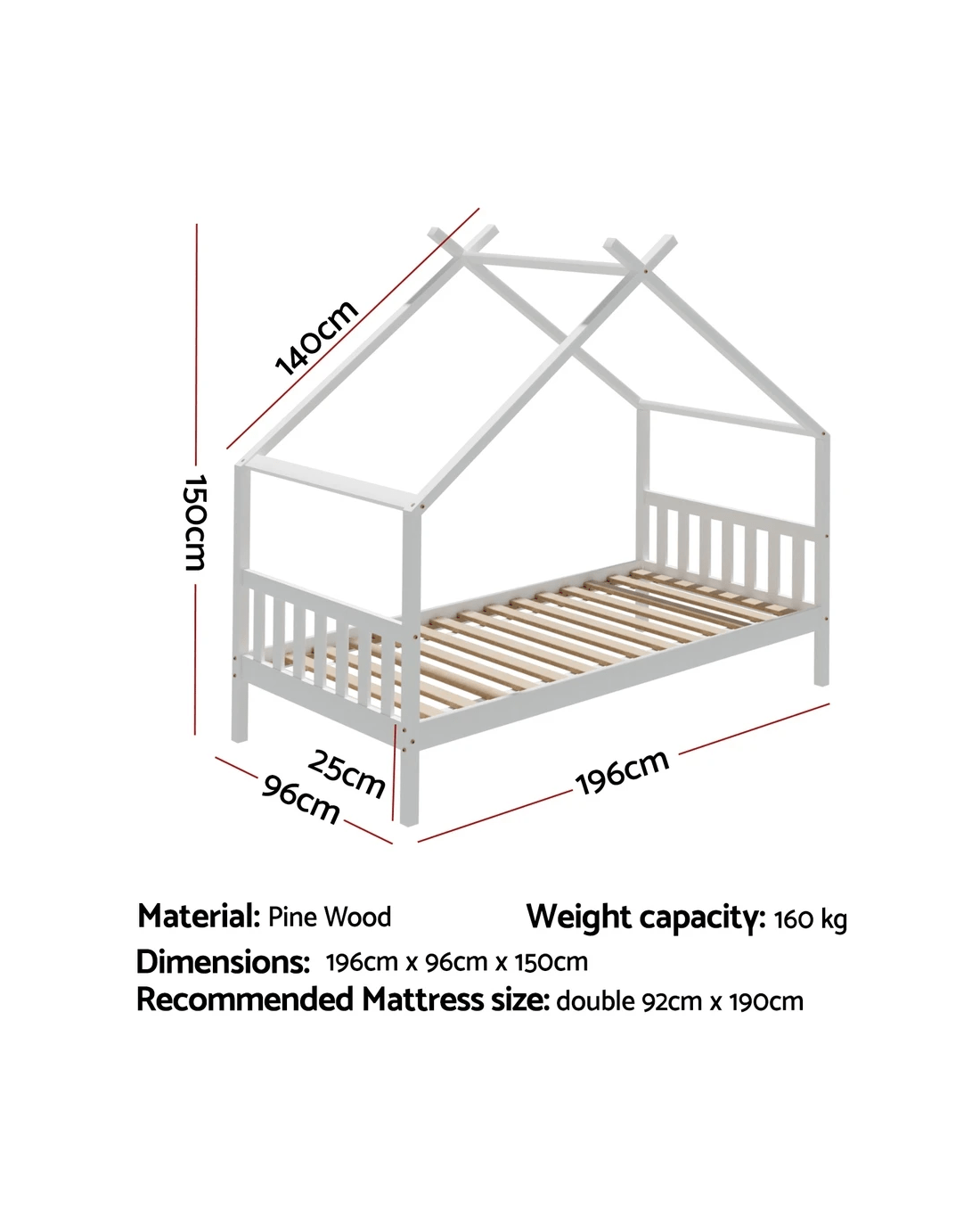Sold by Aisle SixArtiss Bed Frame Wooden Base Kids Single Timber House Beds - White