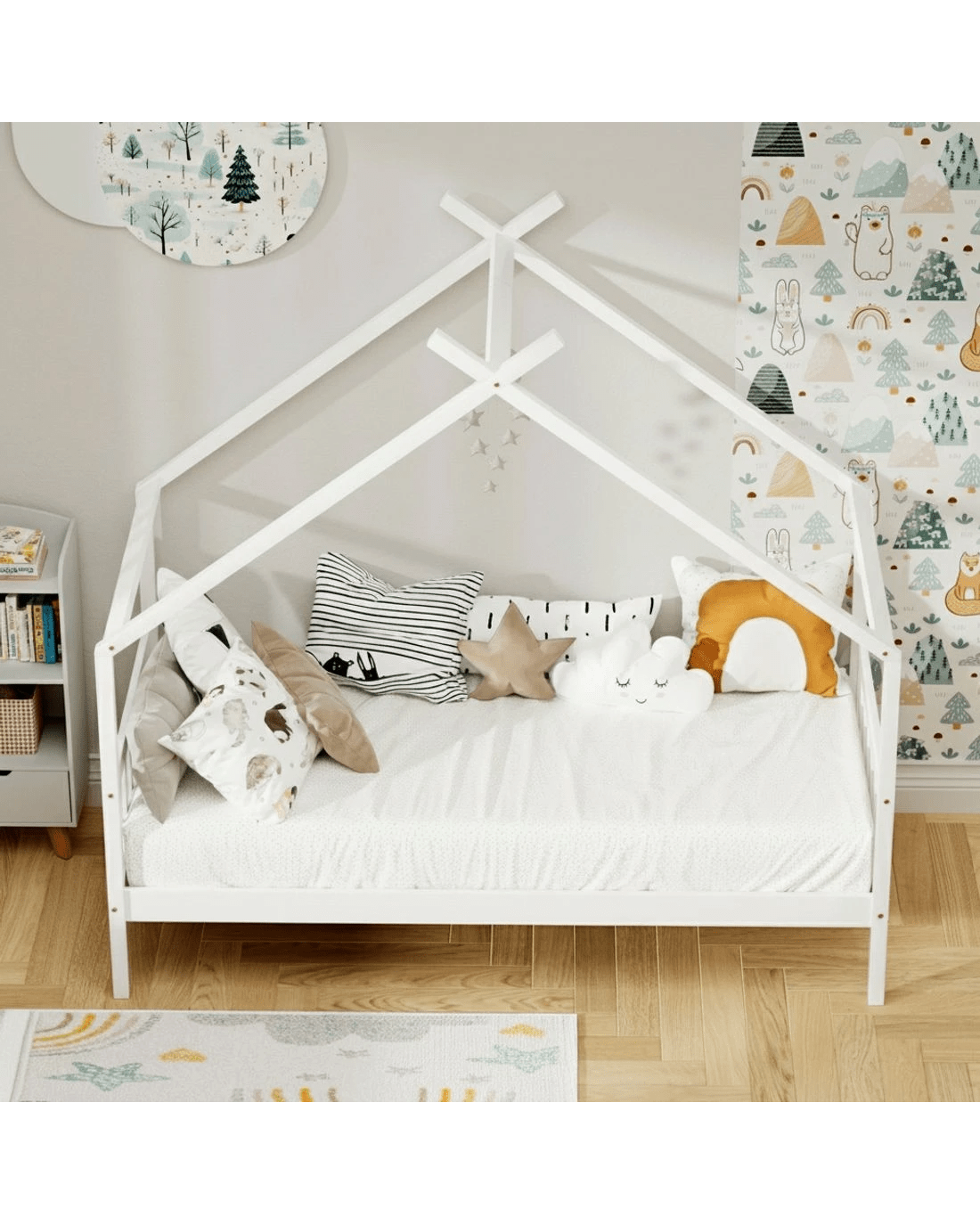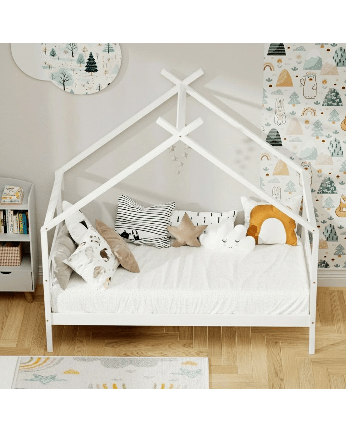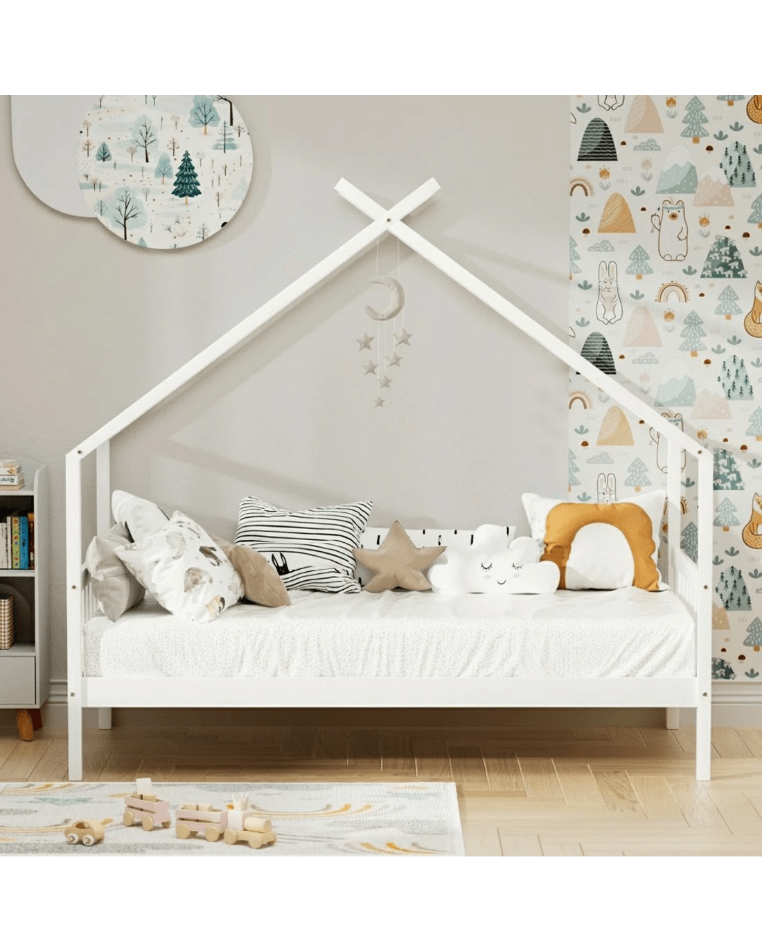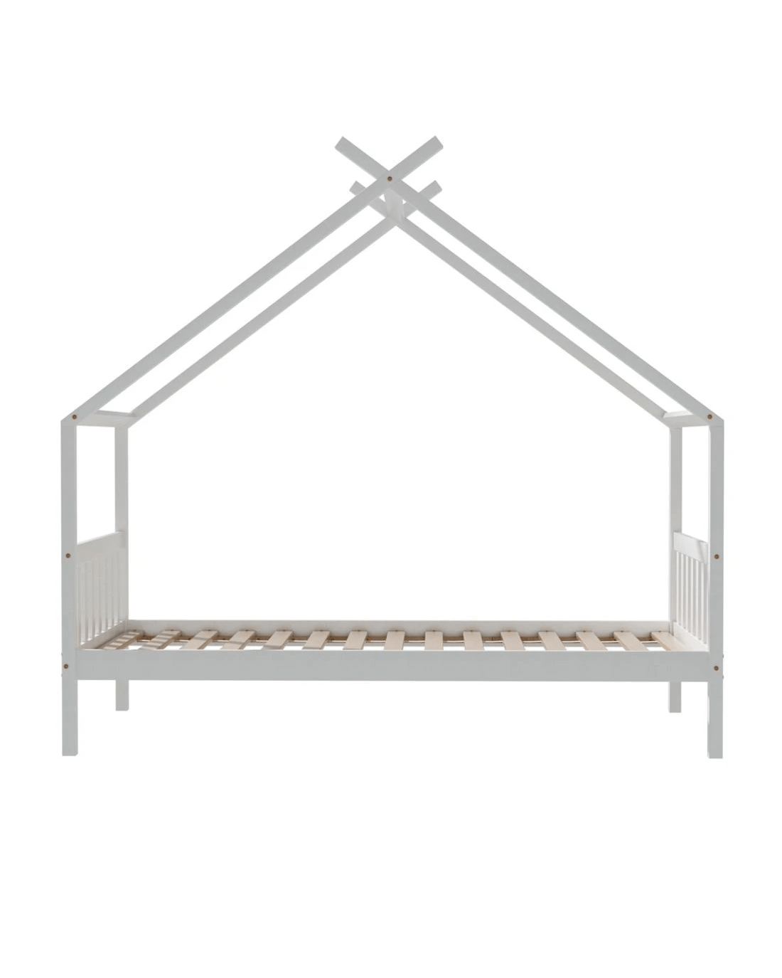 Sold by Aisle SixArtiss Bed Frame Wooden Base Kids Single Timber House Beds - White