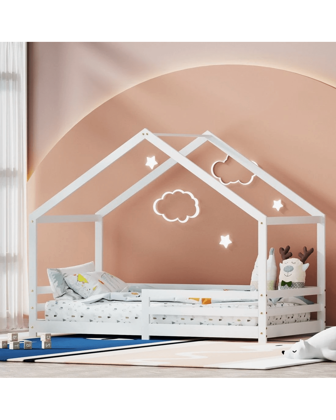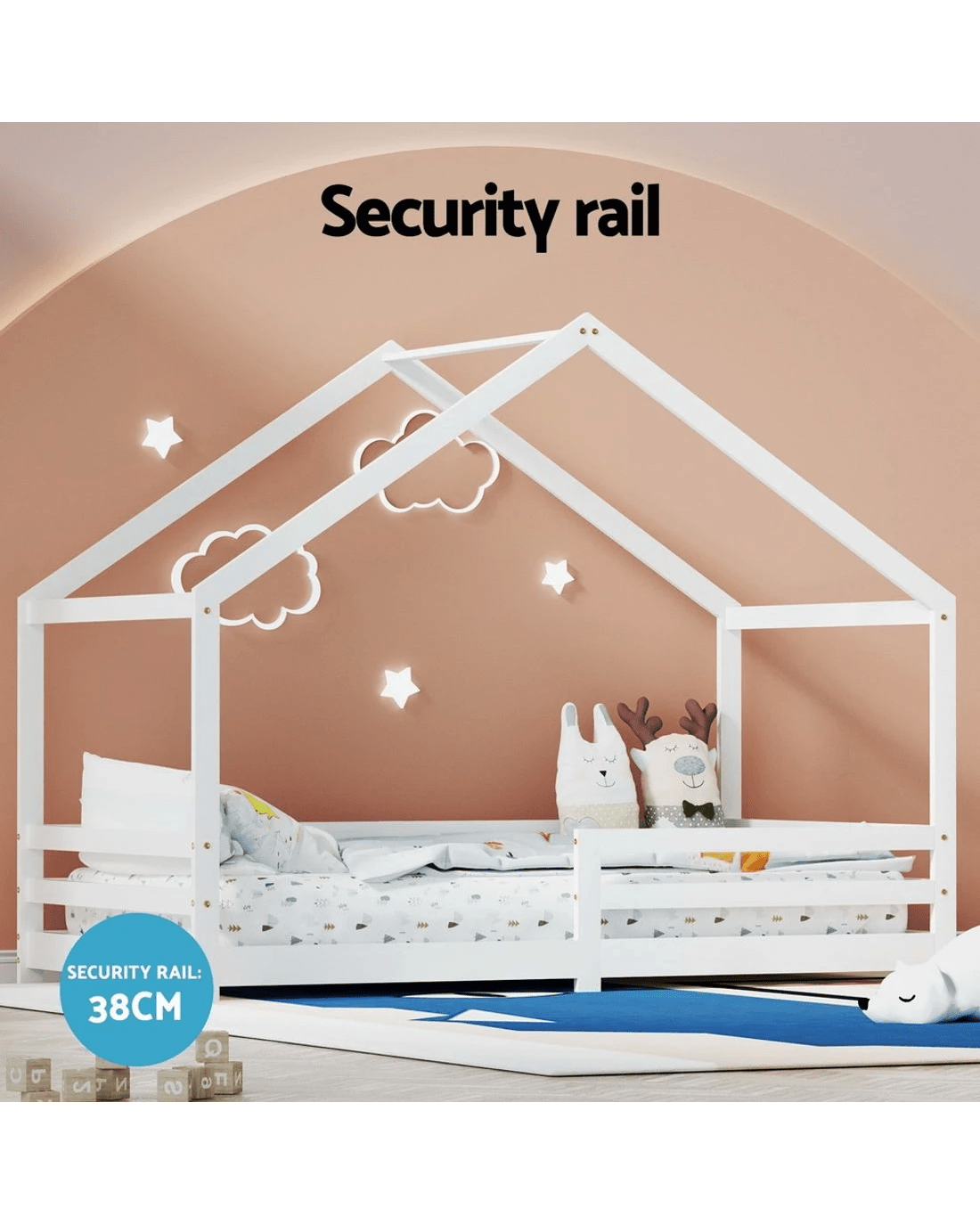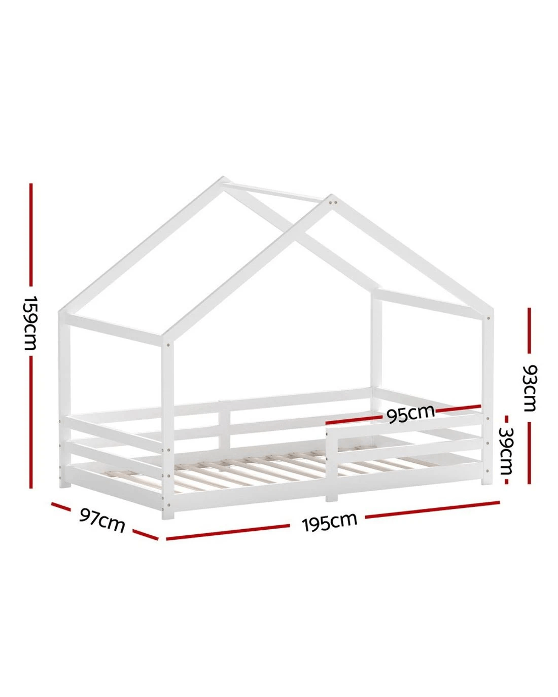 Introducing our Artiss house-shaped bed frame, crafted from solid pine wood for ultimate durability. Designed with kids in mind, it features safe, non-toxic paint, smooth edges, and sturdy construction. Easy to maintain and fitting a standard Australian Single mattress, it's the perfect addition to any child's bedroom.