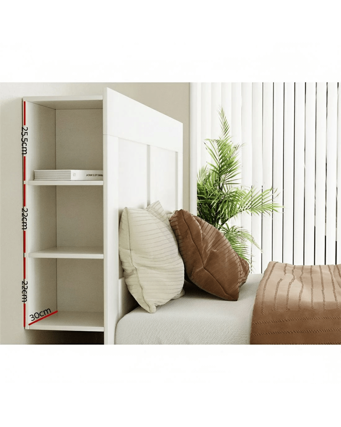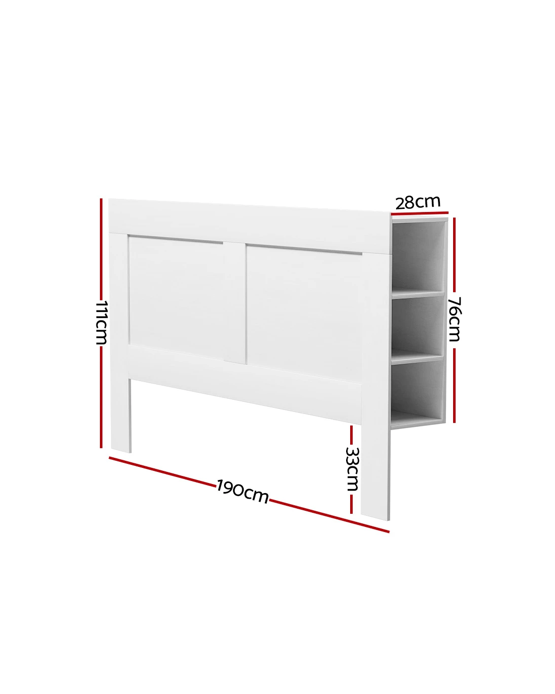 Make the most of your bedroom storage with the Cabi Bed Head from Artiss. Made from quality thick MDF board, the headboard is not only smooth and appealing to look at, but it contains 3-tier cube shelves on both sides. The shelves can carry up to 5kg per tier, with a top shelf weight capacity of 20kg. The headboard is stylish as well as functional, with a smooth glossy surface and clean lines. The headboard's surface is smooth and easy to clean – simply wipe with a damp cloth to remove dust or spills. With two colours available, you'll love your new fine and functional Cabi Bed Head.