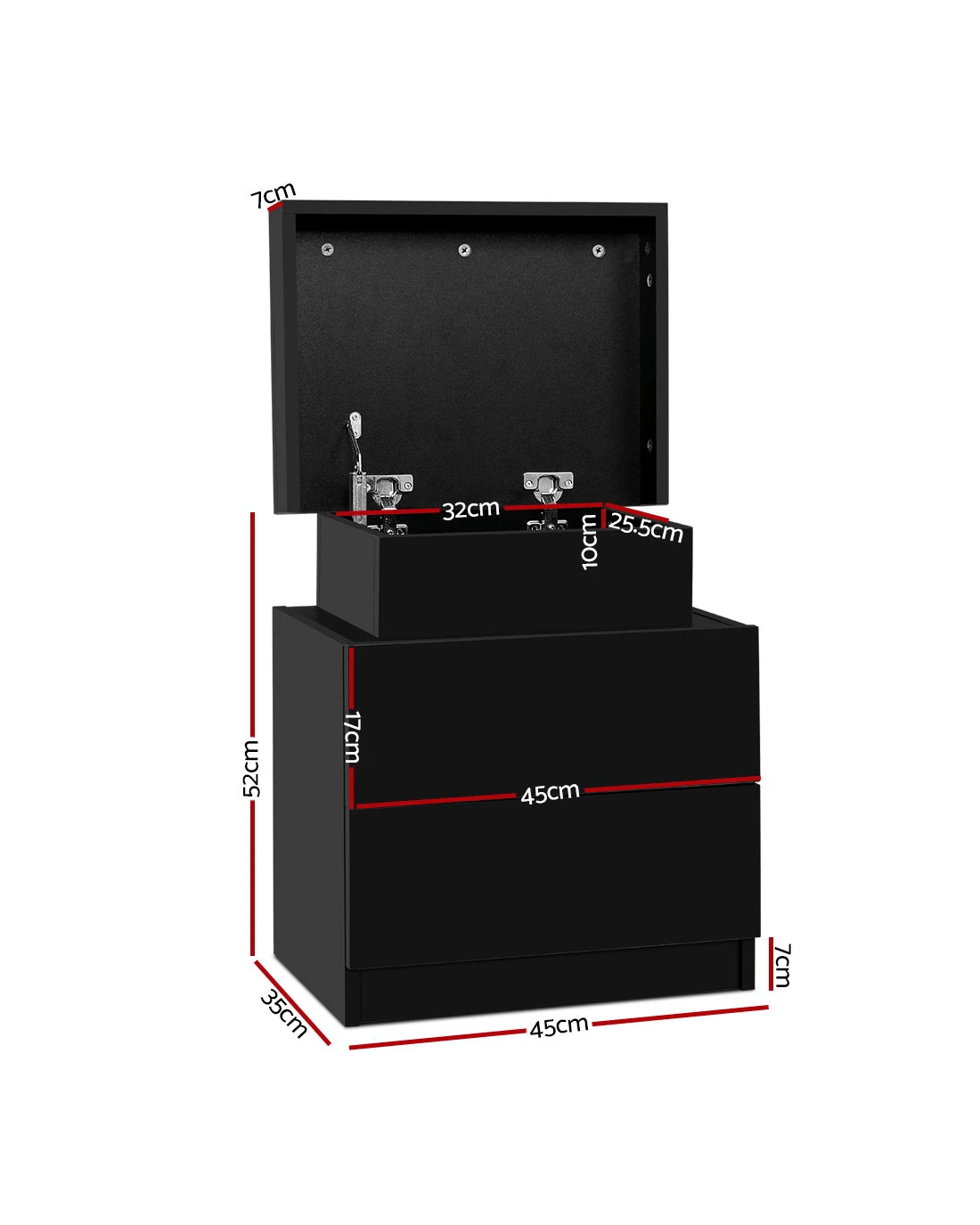 Sold by Aisle SixArtiss Bedside Table 2 Drawers Lift-up Storage - Black