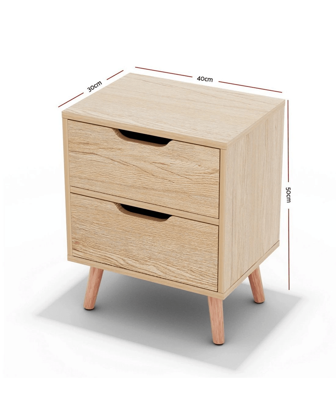 The Artiss Bedside Table offers both style and functionality, providing a convenient surface and two storage drawers for your essentials. It beautifully complements your interior while enhancing your nighttime routine. Crafted to blend seamlessly into your space, it represents the ideal intersection of style, practicality, and convenience, transforming your sleeping quarters into a haven of peace and organisation.