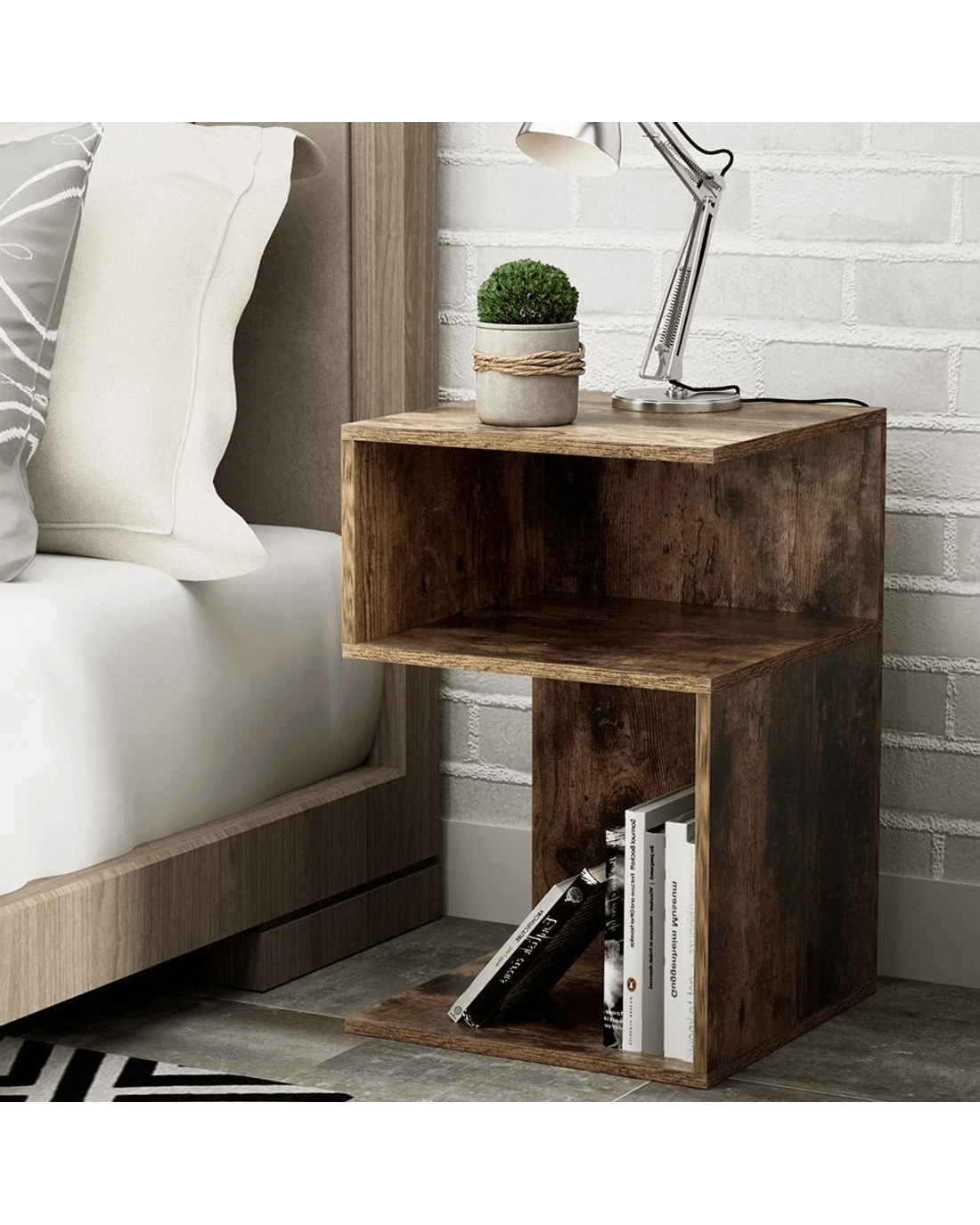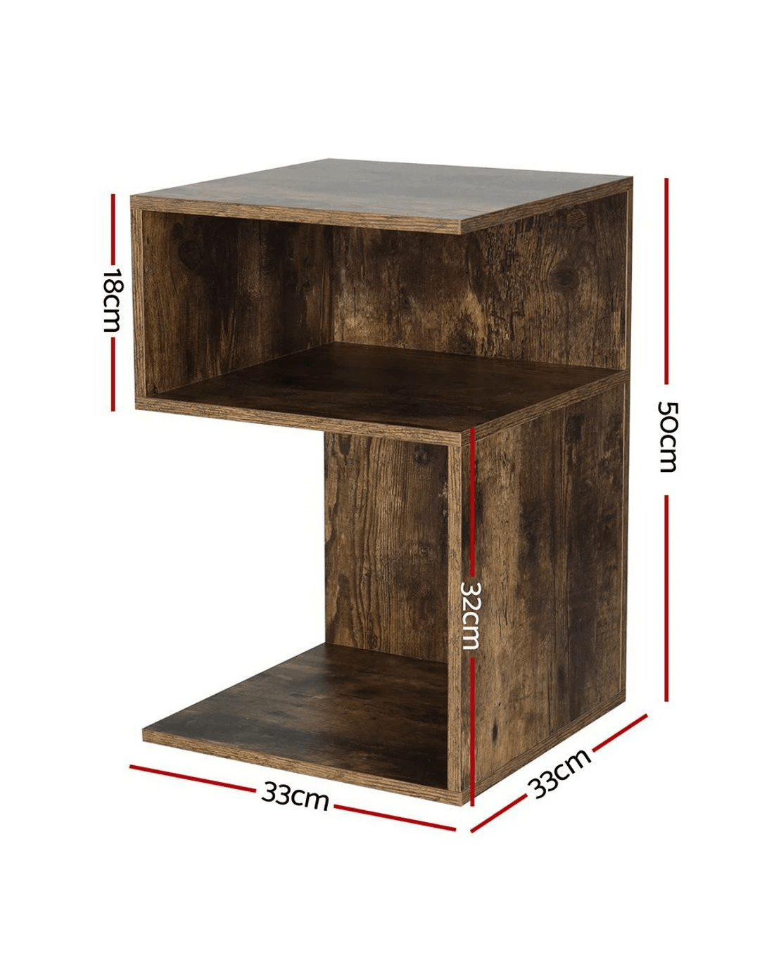 Elevate your living space with the UMENI Bedside Table from Artiss. This artistic, contemporary piece will blend in nicely with most home décor and remain trending for years to come. Made from a thick particle board with a wood grain paper finish, the S-shaped bedside table is durable and long-lasting. Featuring a narrow top shelf and a generous bottom display shelf, the bedside table makes it easy to store your bedroom essentials in an easy-to-reach place. Floor protectors keep the unit in place and prevent scrapes and scratches on your floors. The smooth surface makes the bedside table easy to clean and maintain. With simple assembly instructions, you'll be able to put together your new bedside tables in no time. Elevate your bedroom today with the timeless UMENI Bedside Table from Artiss.