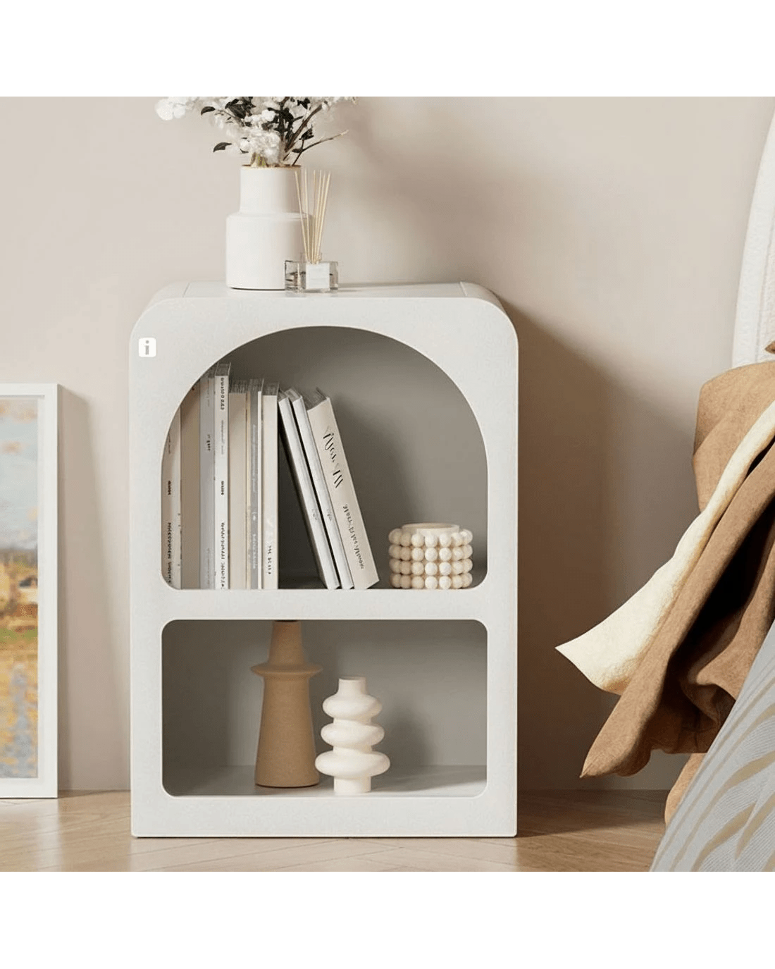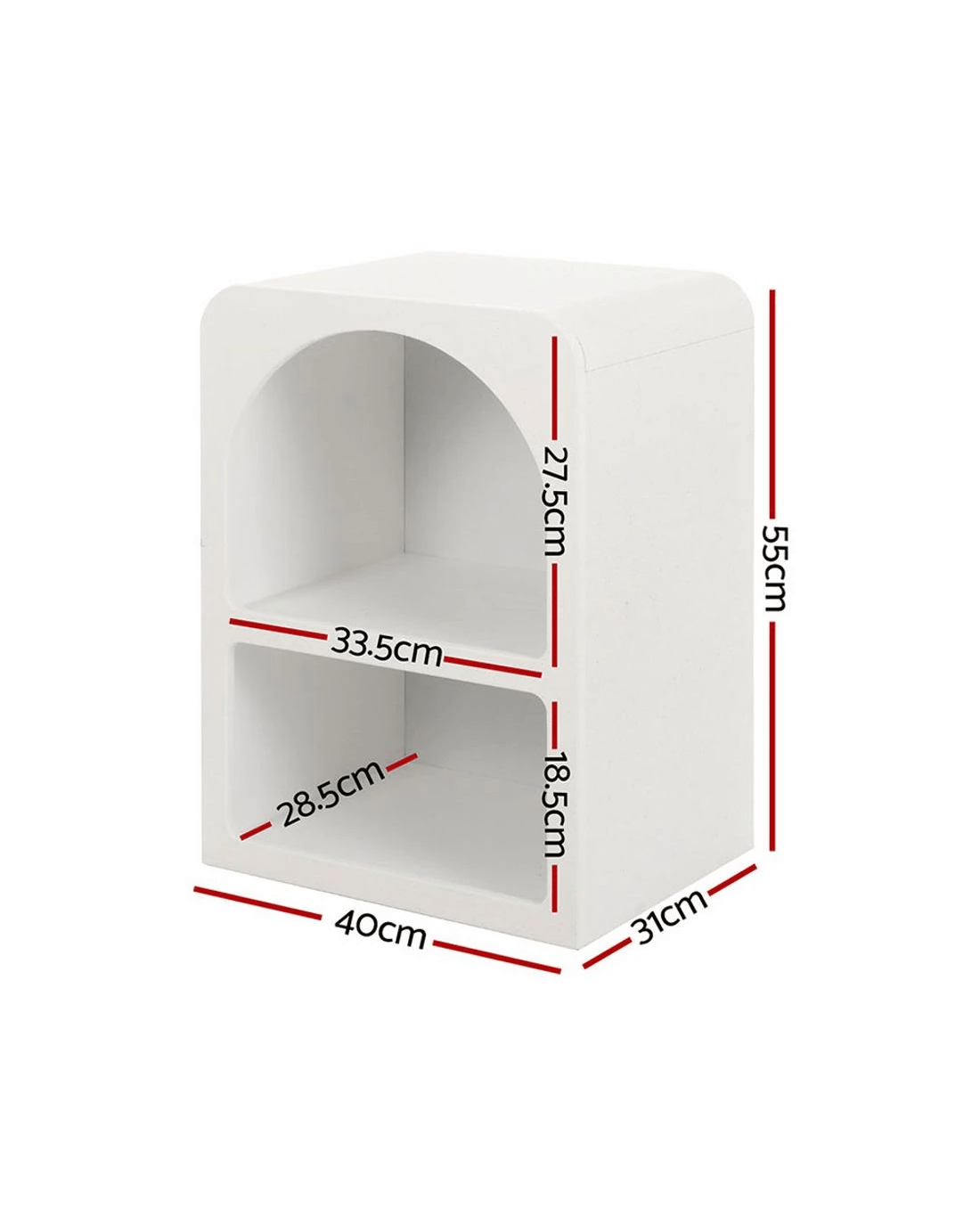 Look no further than the Artiss ARCHED Bedside Table for a unique contemporary style bedroom piece. The stylish arched design doesn't just look good but provides you with ample storage for all your bedside essentials. With simple, clean lines and a textured finish, the piece evokes the bright and beautiful vibes of the Mediterranean. Two spacious shelves give you plenty of storage space and weight capacities of 10kg per shelf and 20kg on top. Constructed from E1 MDF board, the bedside table is affordable, durable, sturdy and easy to assemble and maintain. The perfect companion to any home, you'll love the refreshing, contemporary, practical design of the Artiss ARCHED Bedside Table.
