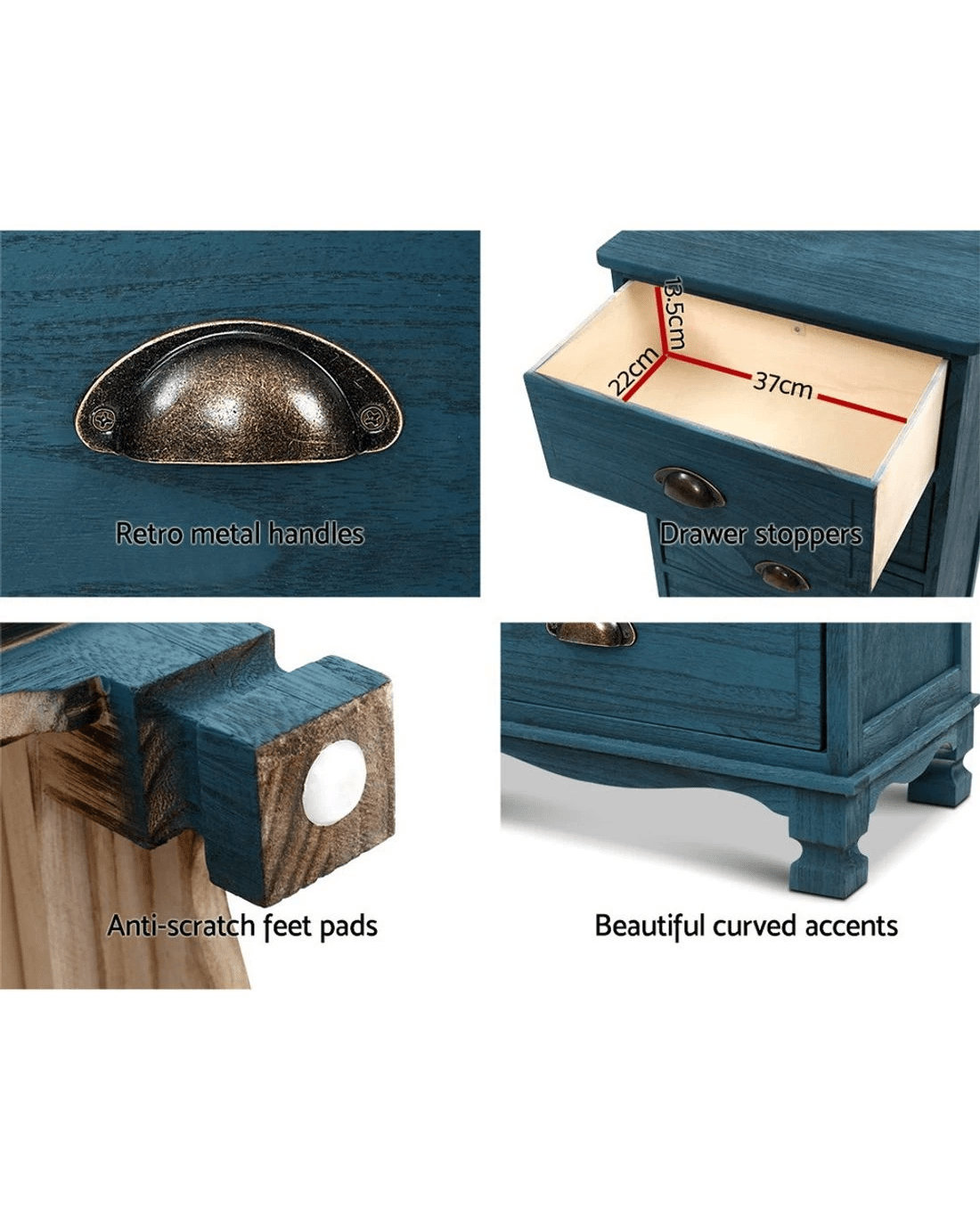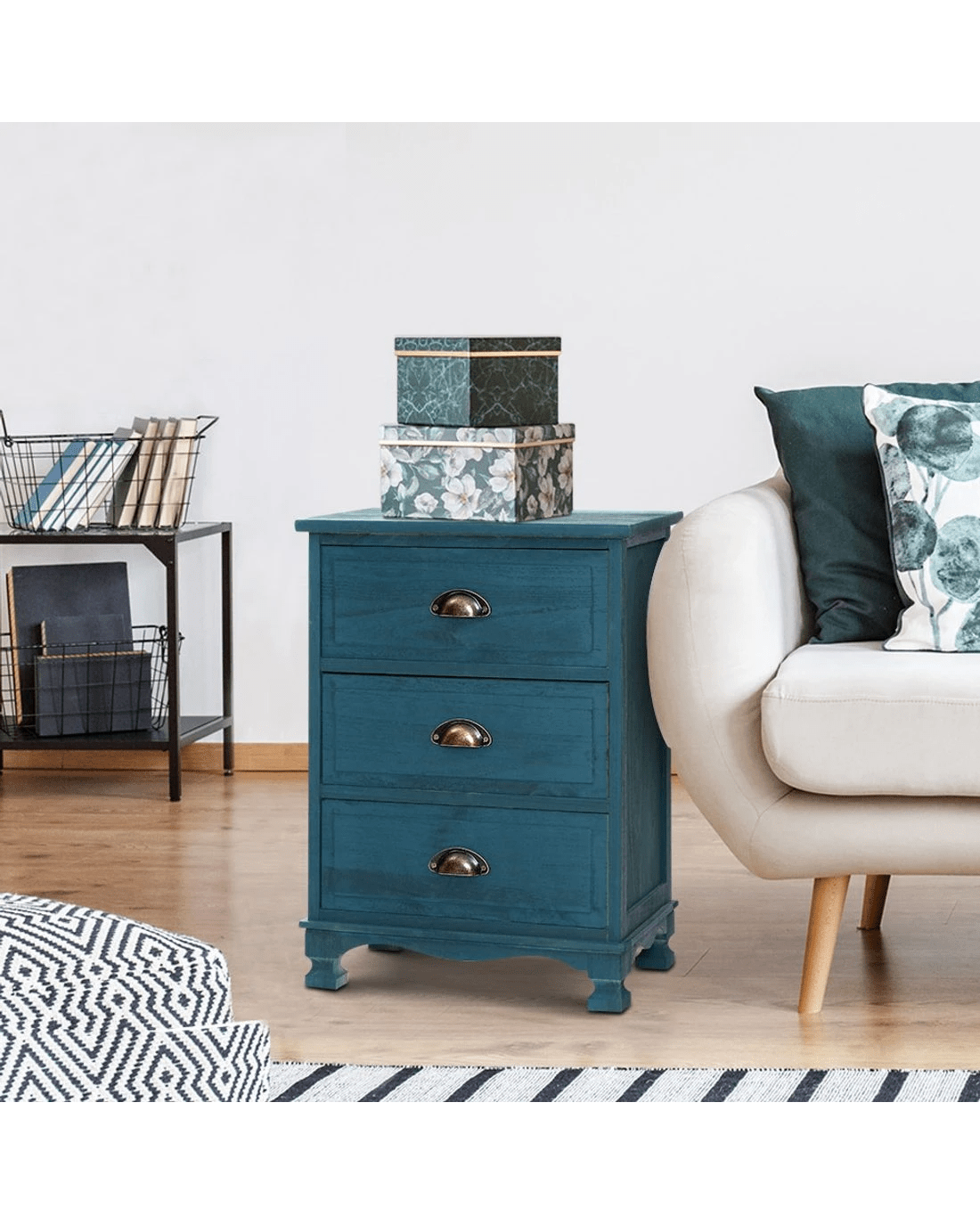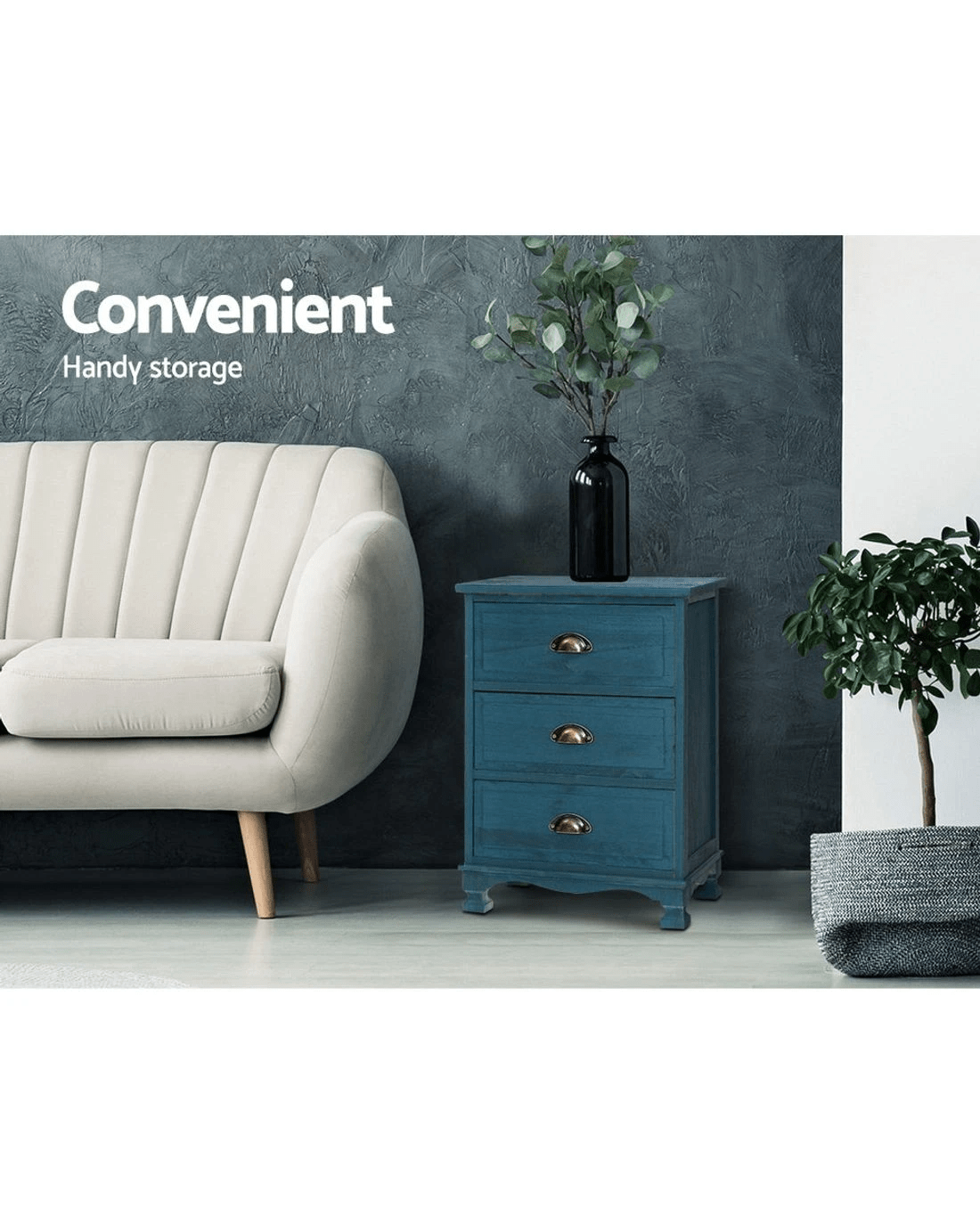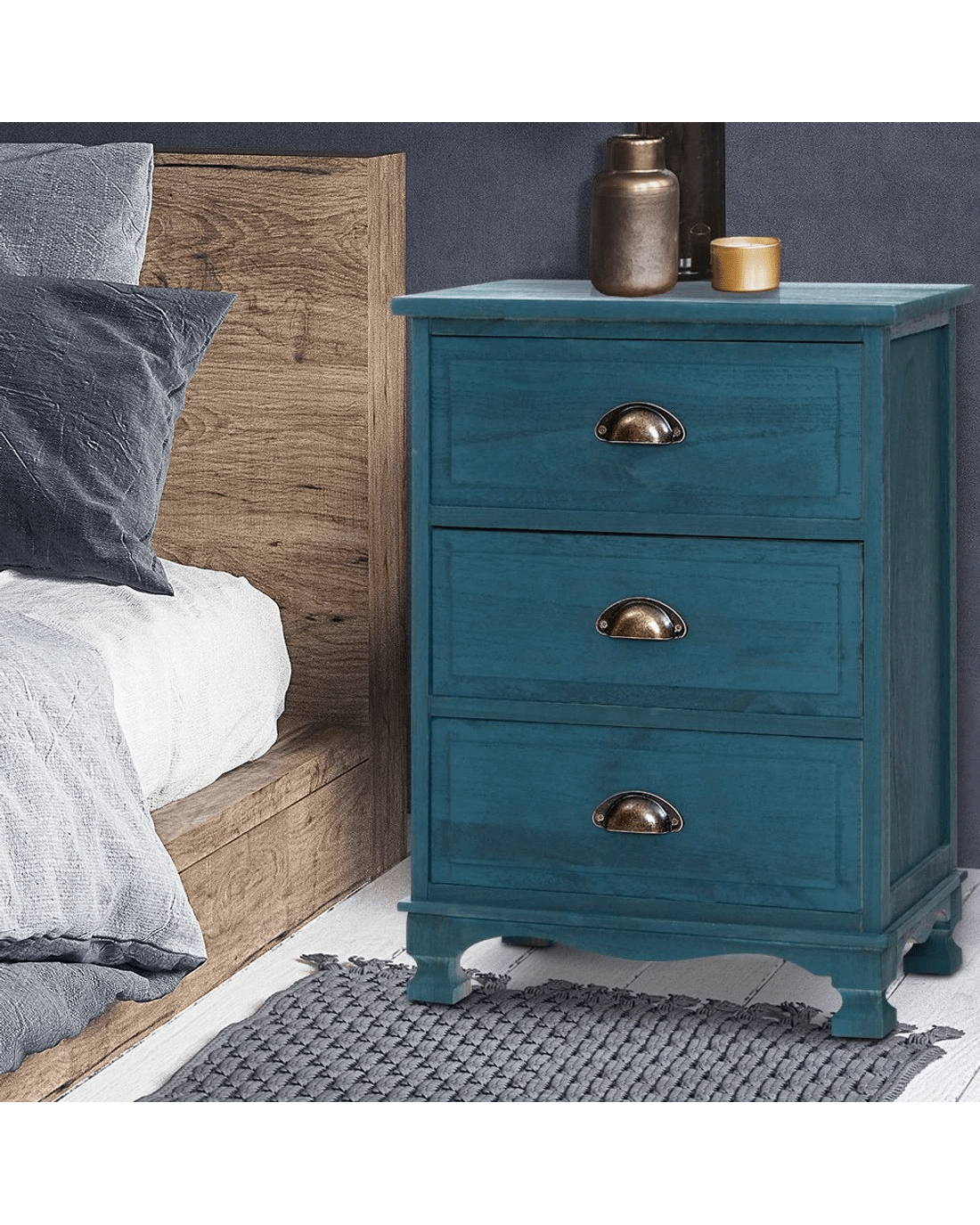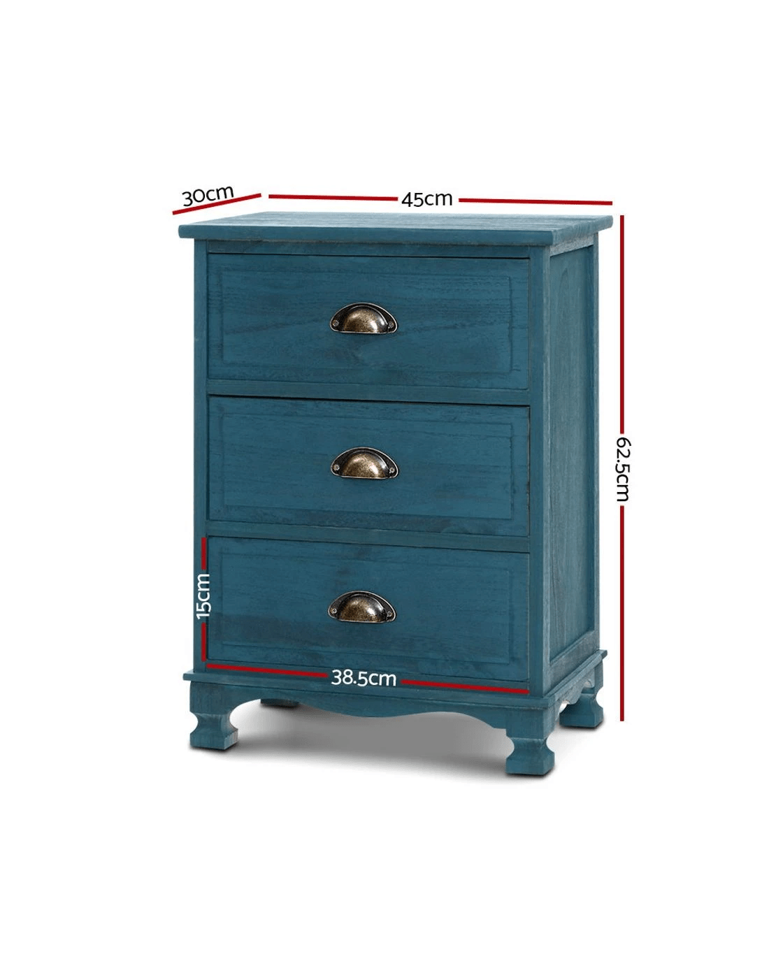 Sold by Aisle SixArtiss Bedside Table 3 Drawers Vintage - Blue