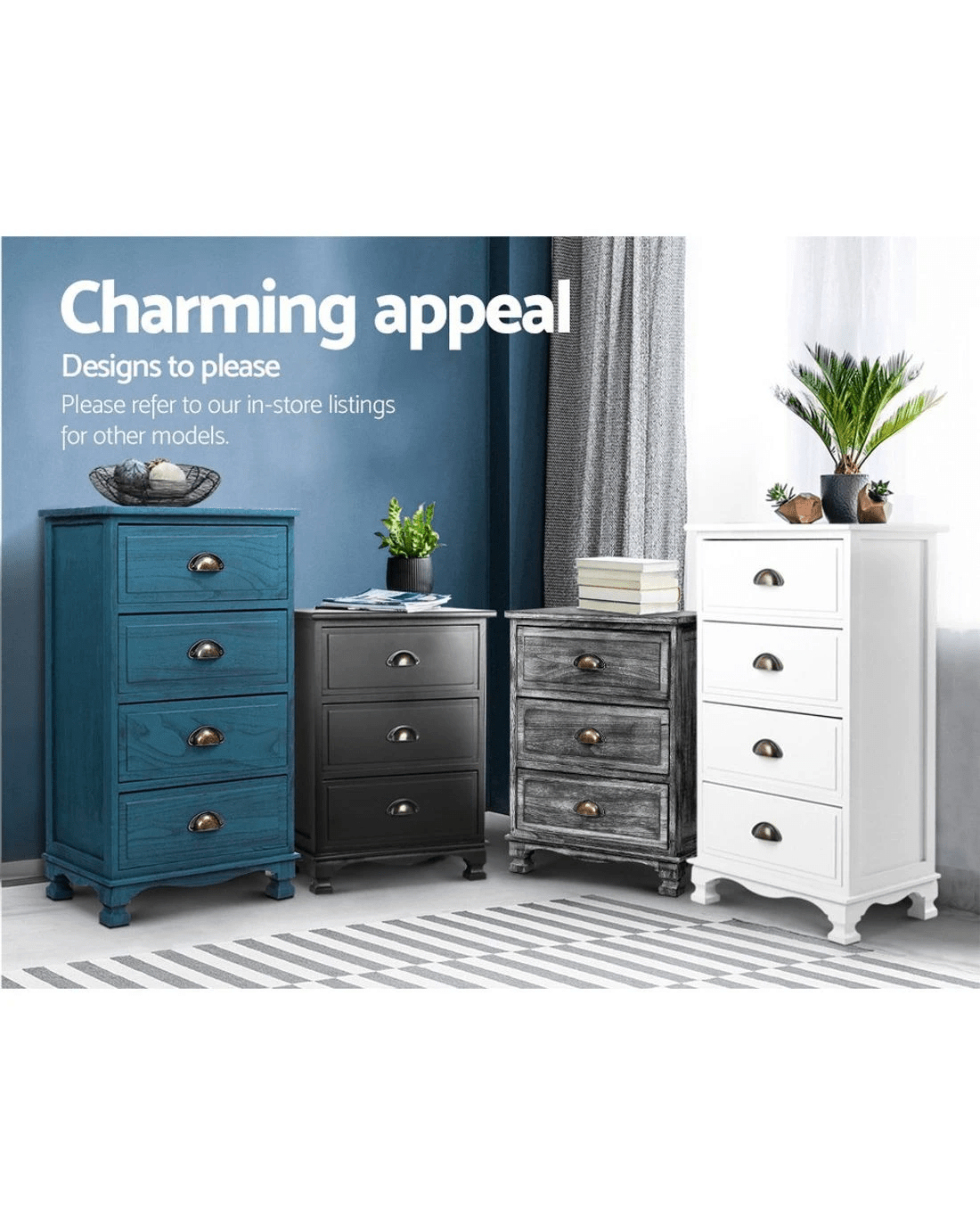 With its charming retro appeal and curved accents, our Artiss 3-drawer Storage Cabinet exudes timeless elegance all over. The three deep drawers with vintage metal handles provide ample space for practical storage and also come with drawer stoppers. Crafted from solid Paulownia wood and MDF board, the cabinet is stable and durable and features round corners for safe use and anti-scratch feet pads to keep floors and surfaces pristine even with robust use. Best of all, the cabinet comes fully assembled and a wall mount is included as an extra safety measure.