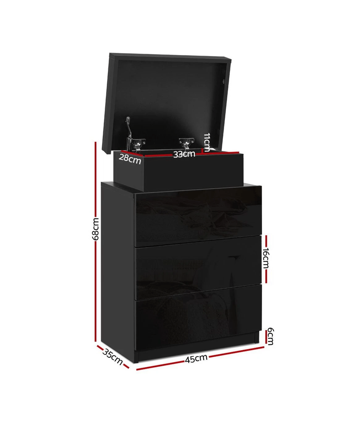 Number of drawers: 3 + Lift-up storage compartment