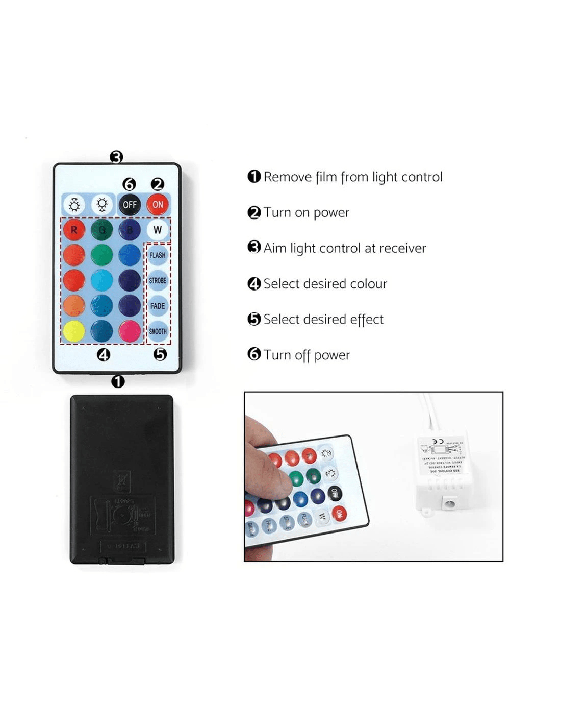 Please point the control towards receiver to customise LED lights.