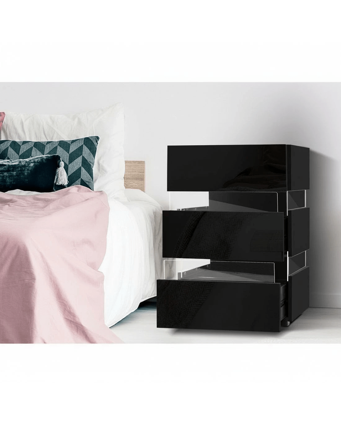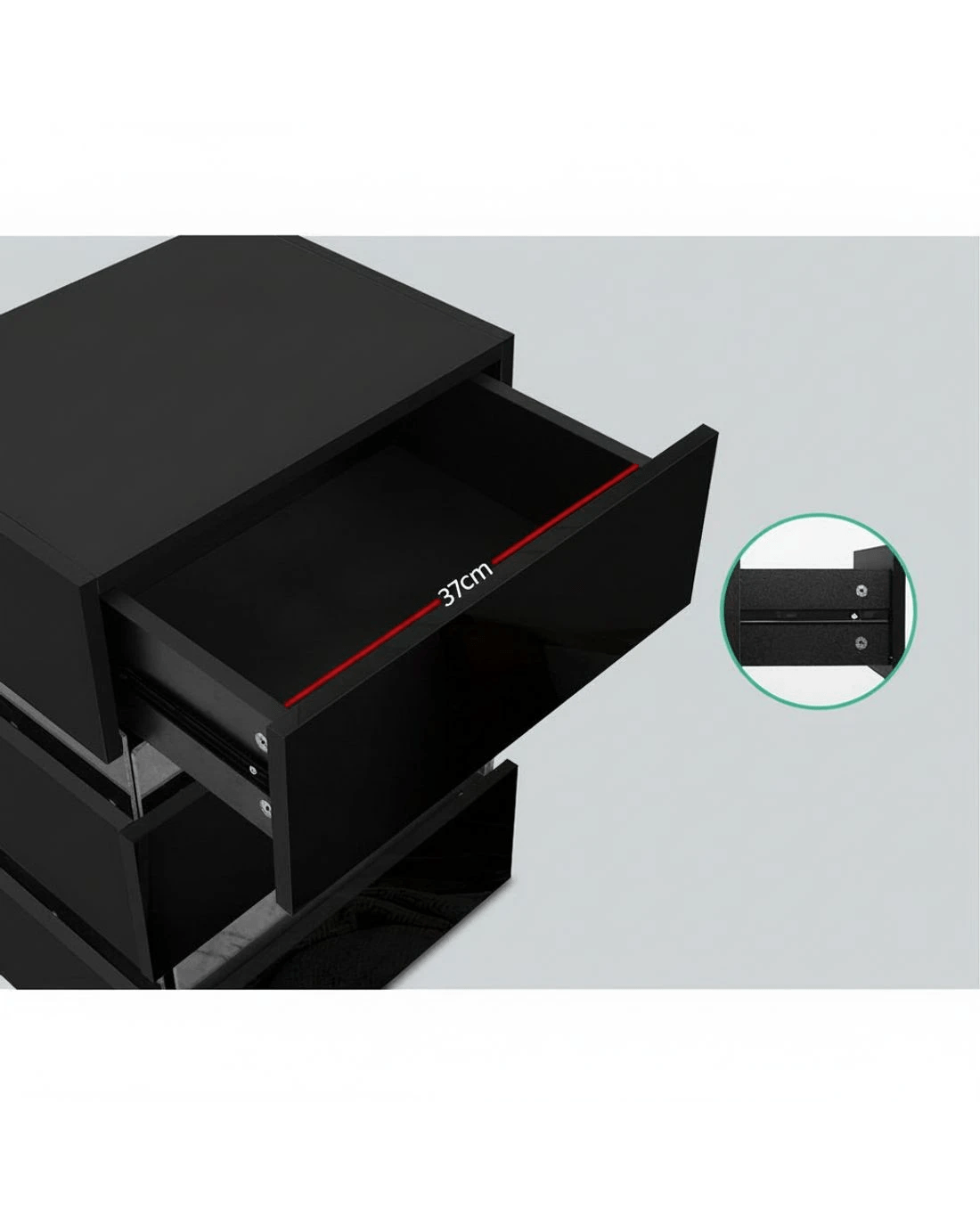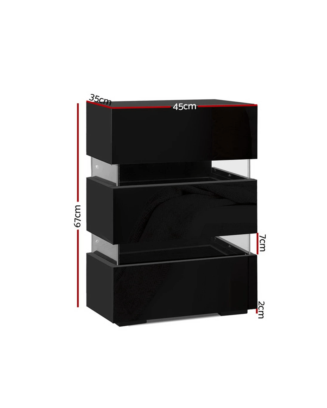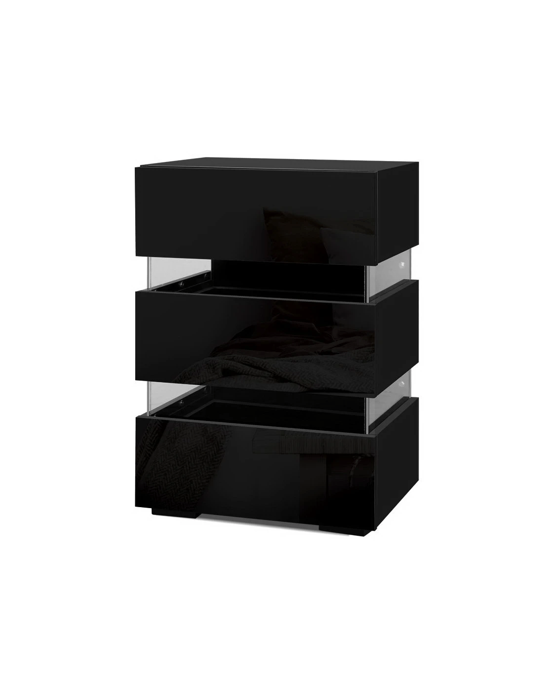 Artiss Bedside Table LED 3 Drawers - LUMI - Black