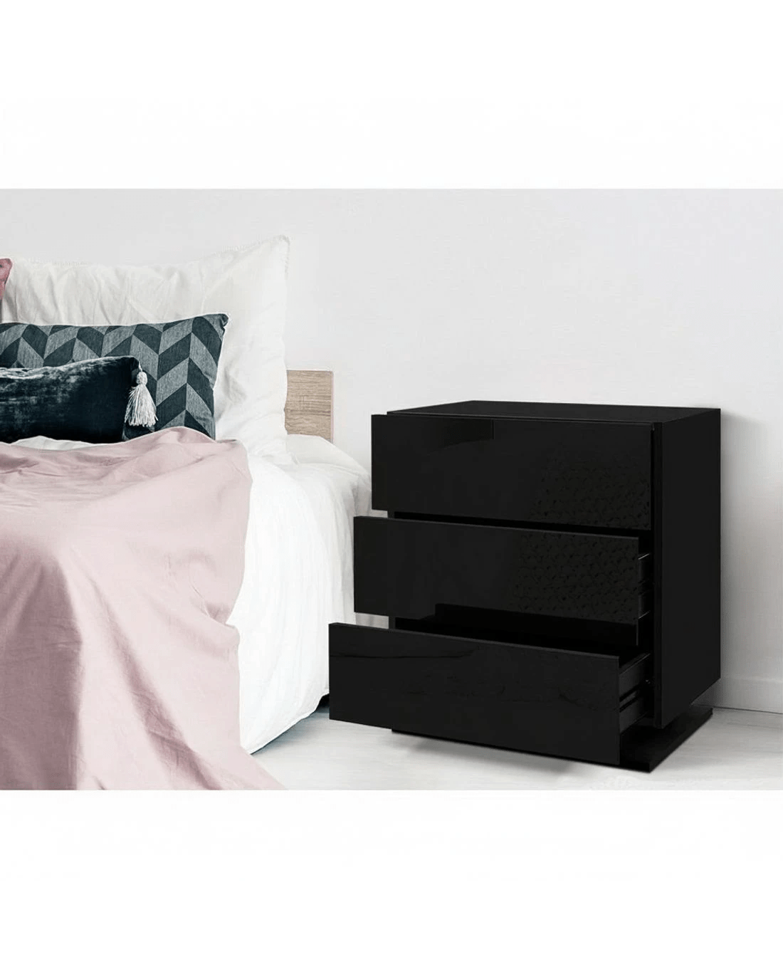 Sold by Aisle SixArtiss Bedside Table LED 3 Drawers - Black