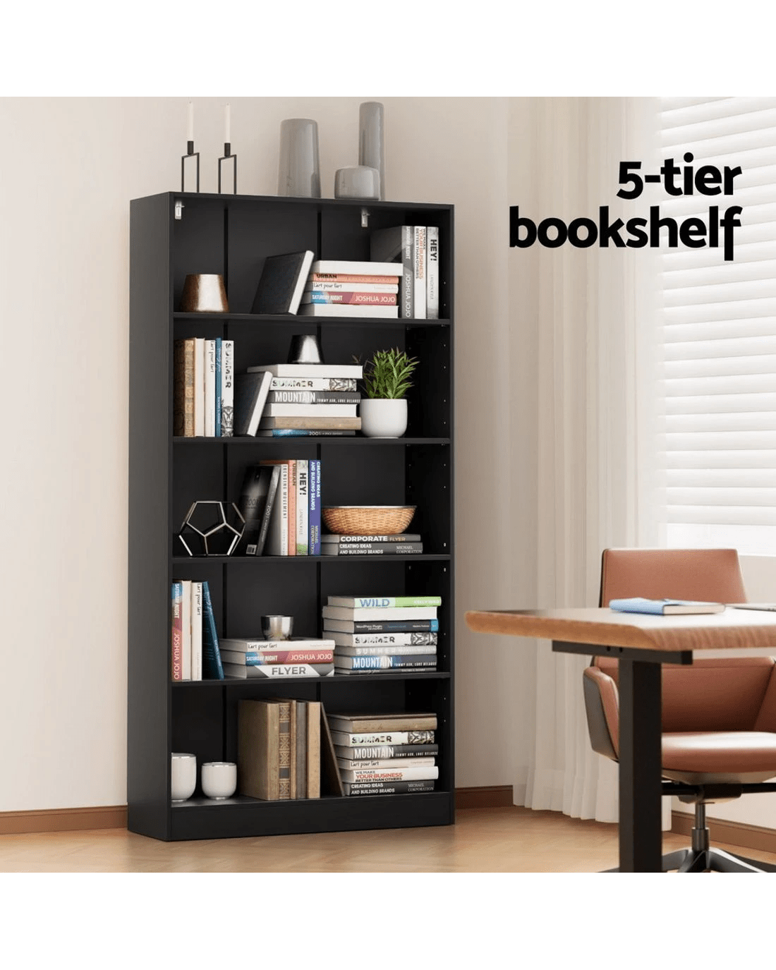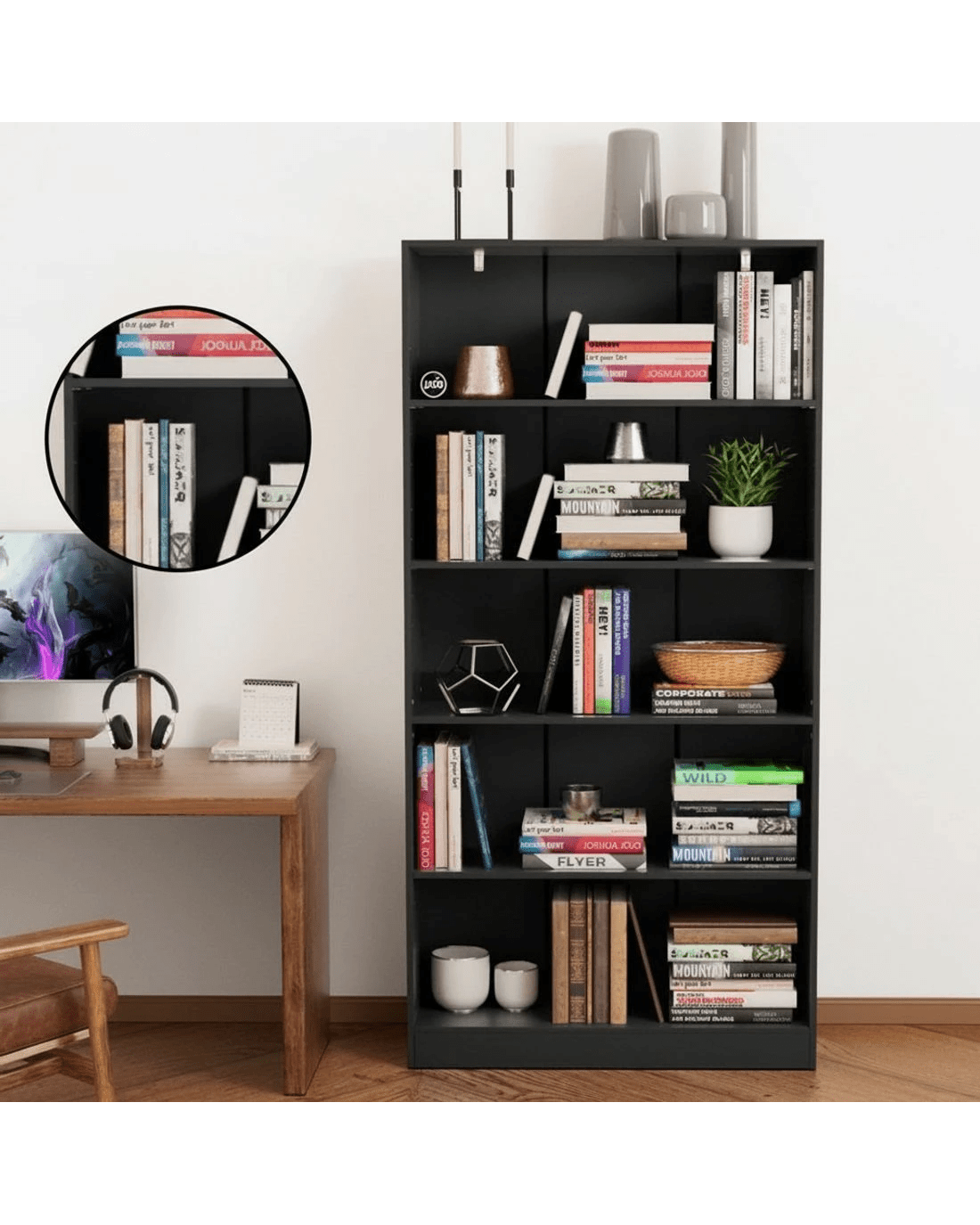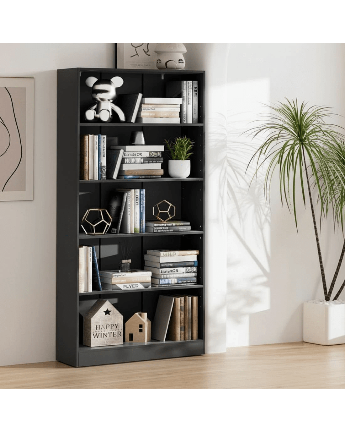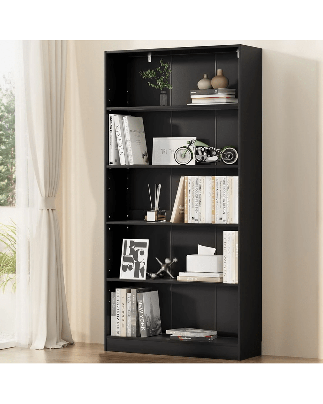 Sold by Aisle SixArtiss Bookshelf 5 Tiers ANTON - Black