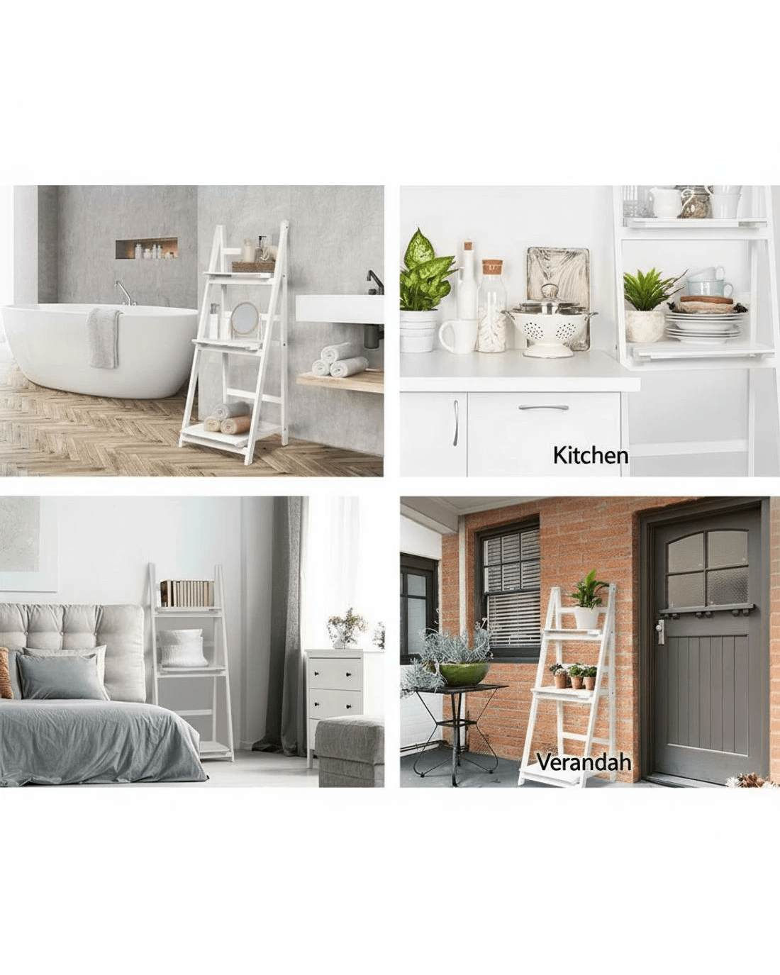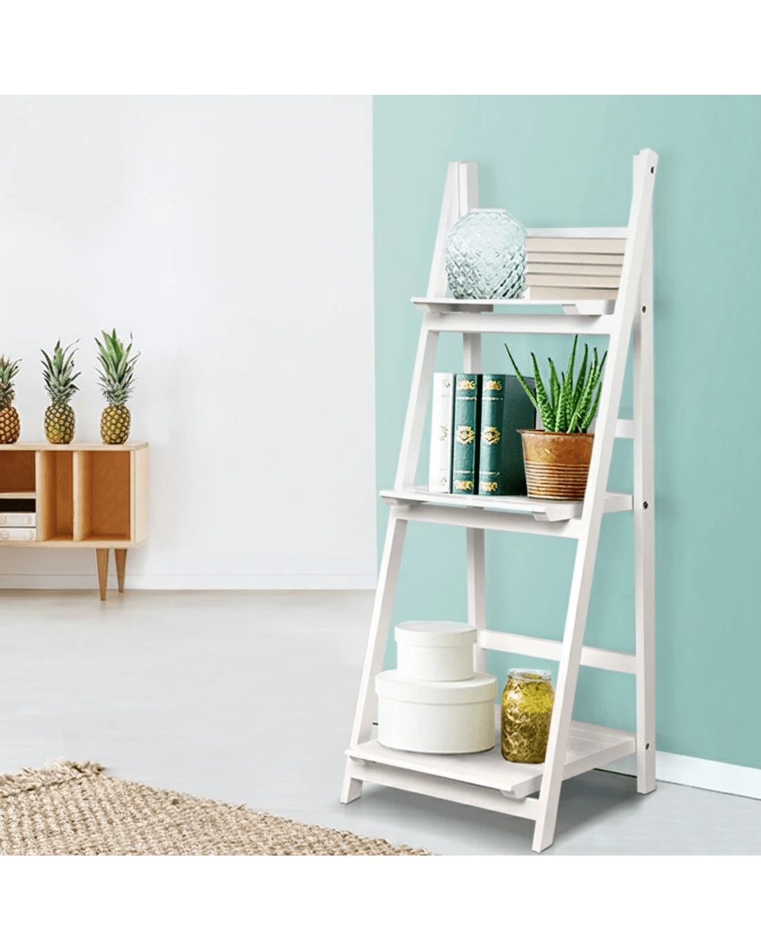 There are ladder shelves. Then there is our Artiss Ladder Shelf. Not just a lean-to but capable of standing on its own with four sturdy legs. Three shelves, in increasing size from top to bottom, offer ample space for displays and collectibles in an aesthetic and functional design. The wide base makes for a very stable structure, but wall screws are also included so that the shelf can be mounted to the wall for better stability and added safety. Crafted from Paulownia wood and MDF and finished in non-toxic paint, the shelves have reinforced side bars for extra strength. The ensemble is space efficient and makes for an impressive design statement in any home. It is also foldable so that you can easily store it away when not in use.