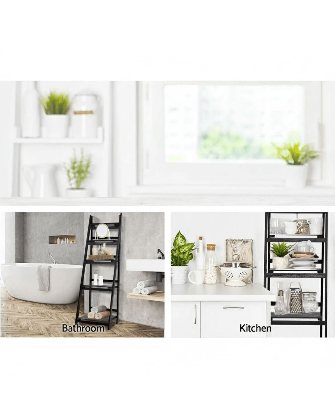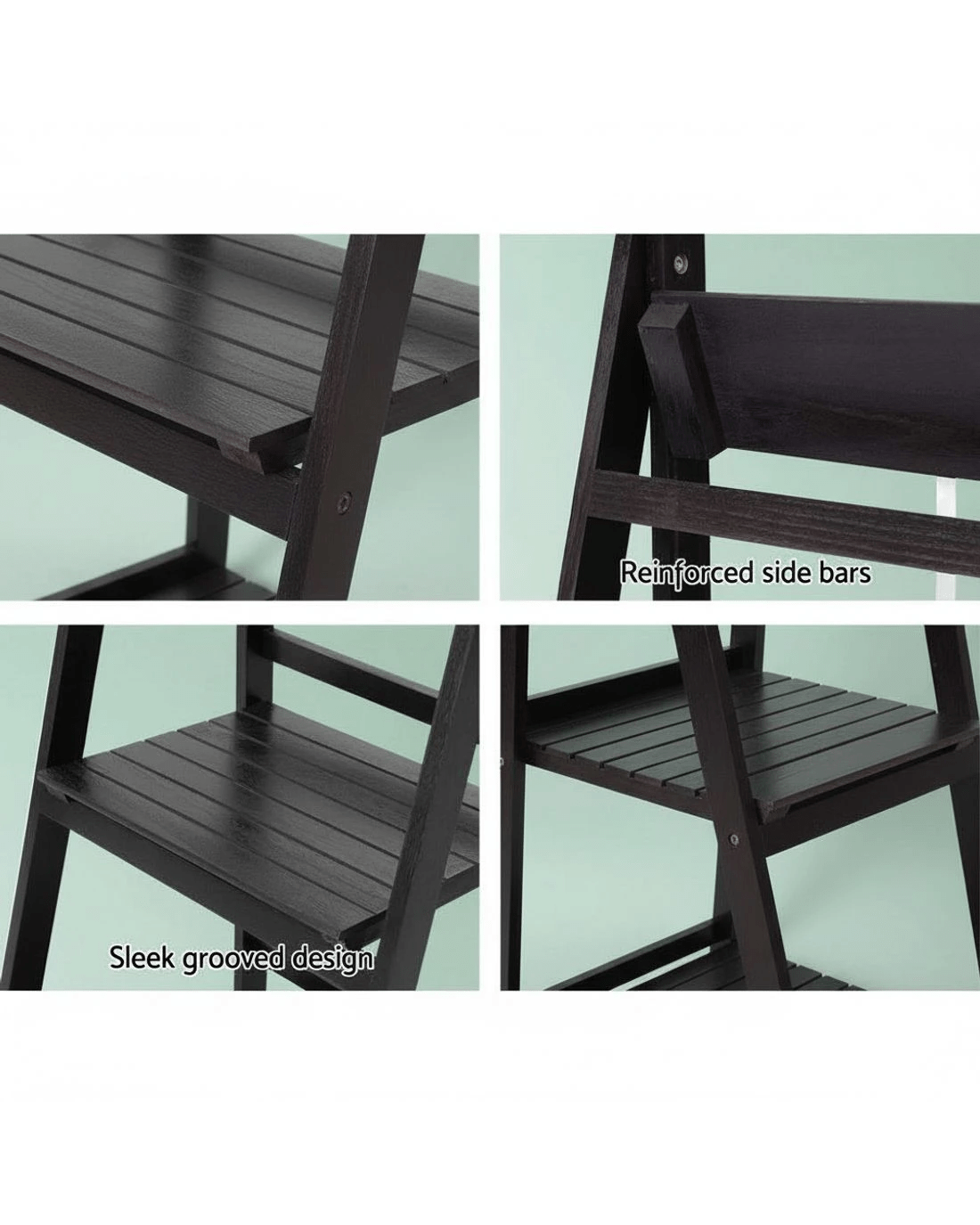 There are ladder shelves. Then there is our Artiss Ladder Shelf. Not just a lean-to but capable of standing on its own with four sturdy legs. Five shelves, in increasing size from top to bottom, offer ample space for displays and collectibles in an aesthetic and functional design. The wide base makes for a very stable structure, but wall screws are also included so that the shelf can be mounted to the wall for better stability and added safety. Crafted from Paulownia wood and MDF and finished in non-toxic paint, the shelves have reinforced side bars for extra strength. The ensemble is space efficient and makes for an impressive design statement in any home. It is also foldable so that you can easily store it away when not in use.