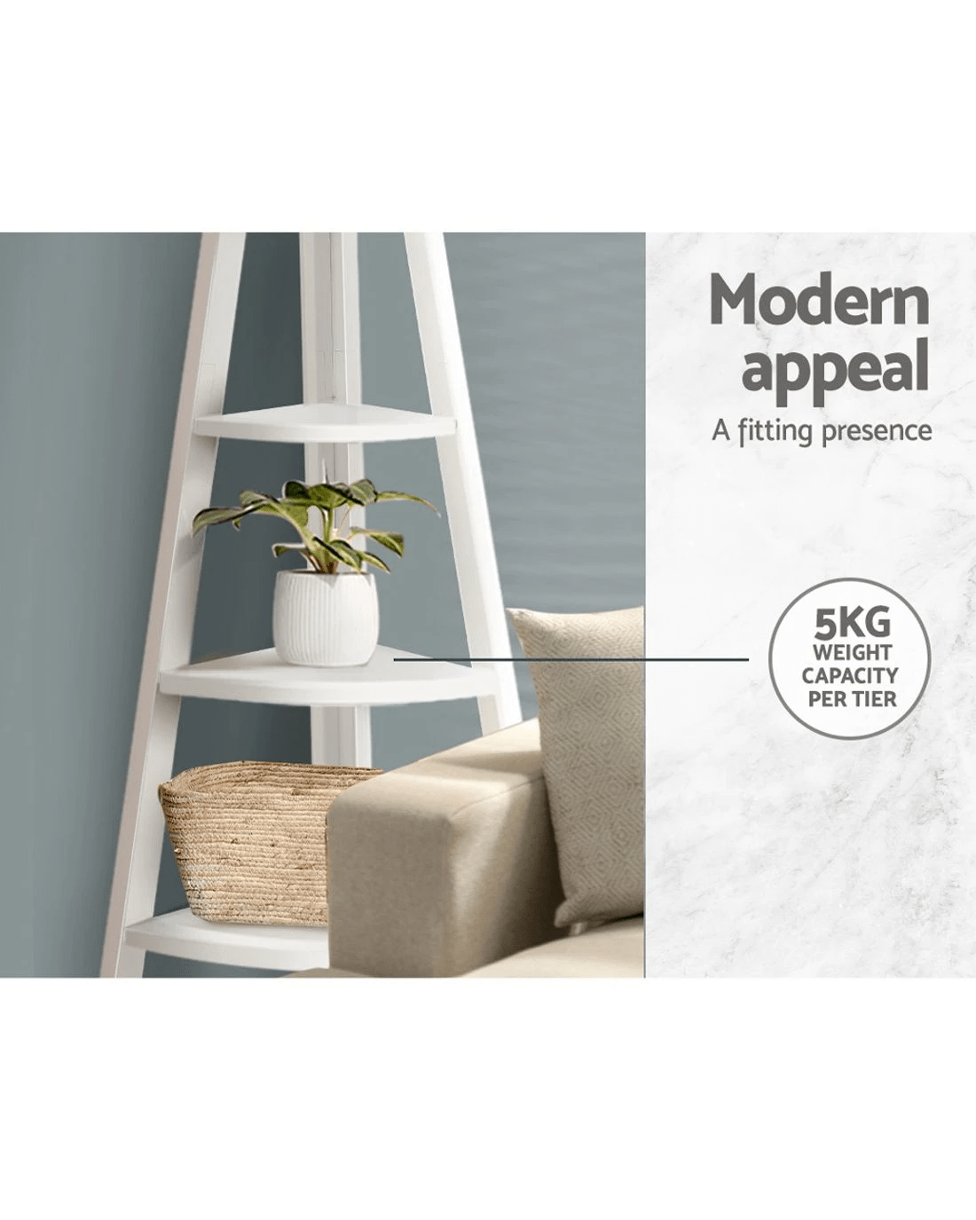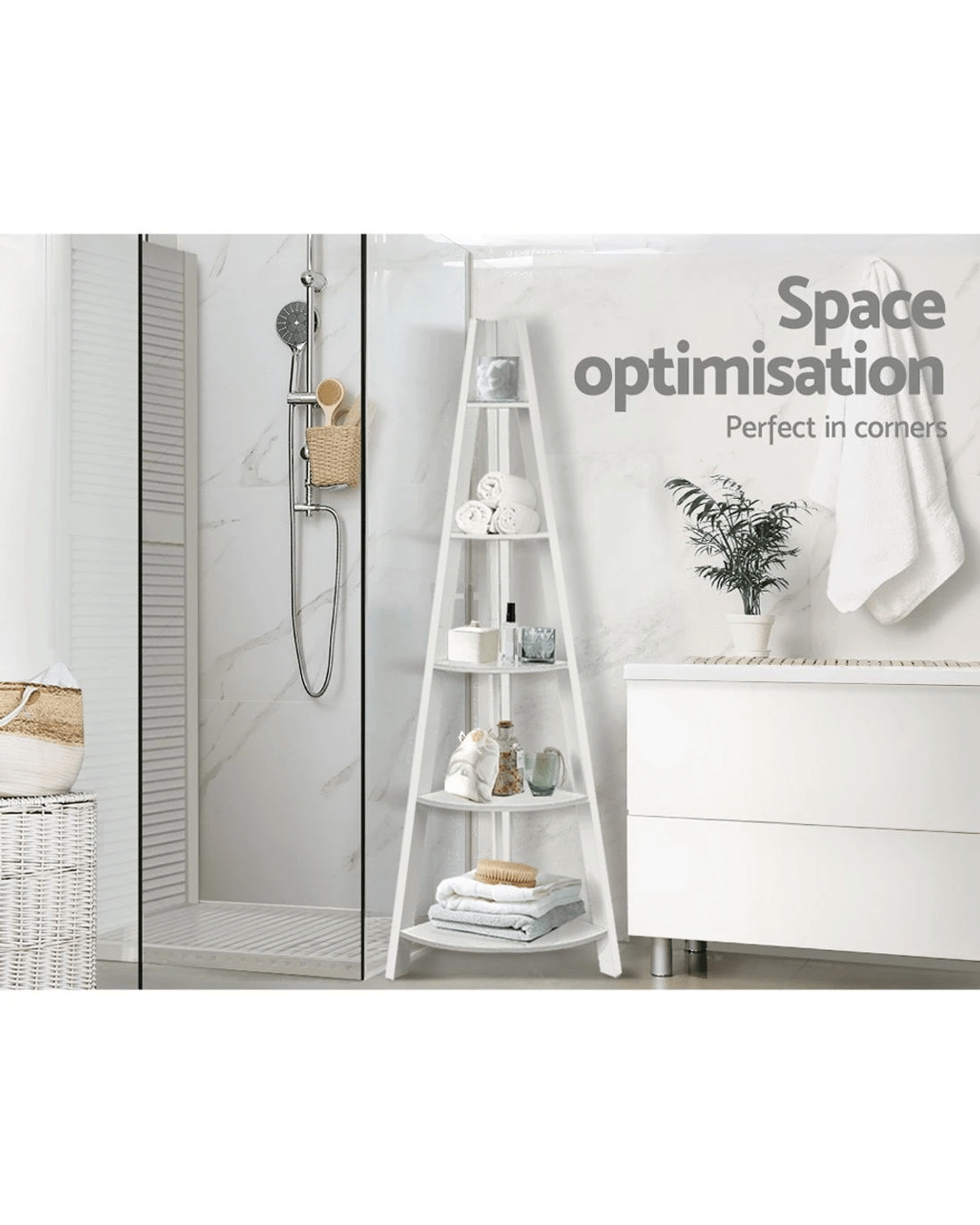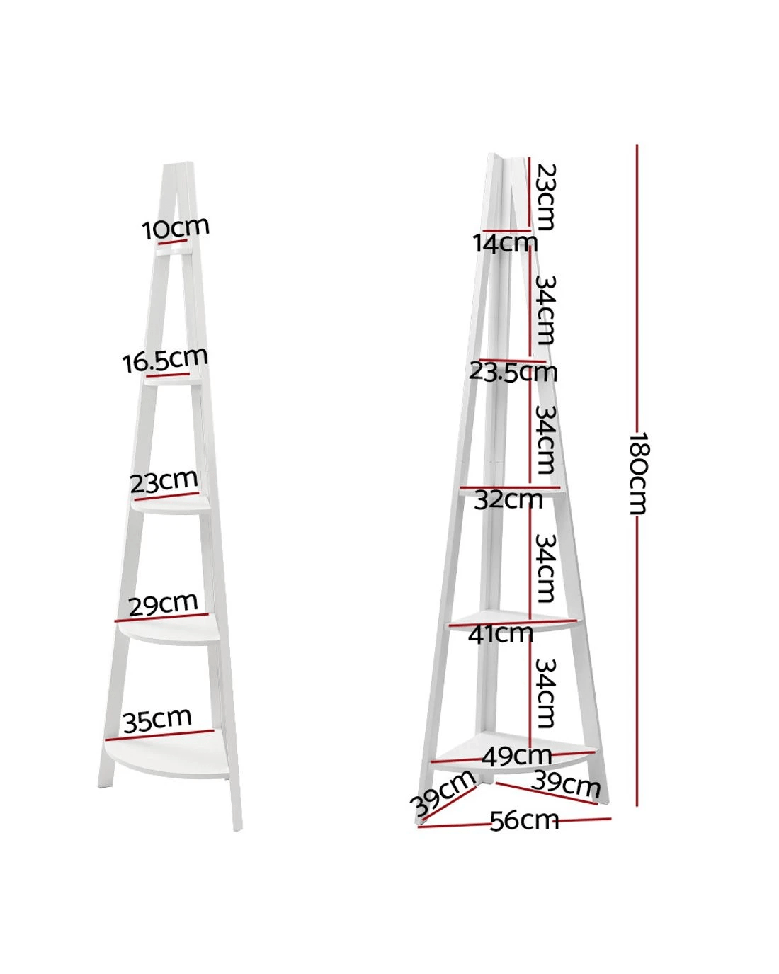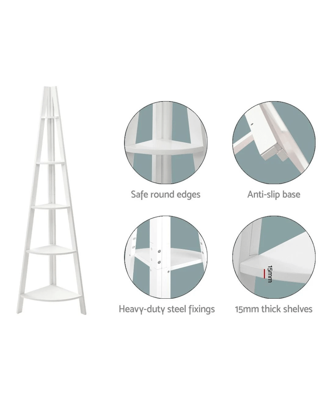 There are ladder shelves. Then there is our Artiss Corner Ladder Shelf. Five shelves, in increasing size from top to bottom, offer ample space for displays and collectibles in an aesthetic and functional design. The creative design helps to optimise your storage and fits perfectly into any corner spaces. Perfectly curved, thick edges prevent unwanted bumps, and the anti-slip base will keep your items in place. Crafted with MDF and finished in non-toxic paint, you can rest assured these shelves will stand the test of time in both quality and style. Finally, the smooth finish is waterproof and mould proof, making cleaning effortless. The ensemble is space efficient and makes for an impressive design statement in any home.