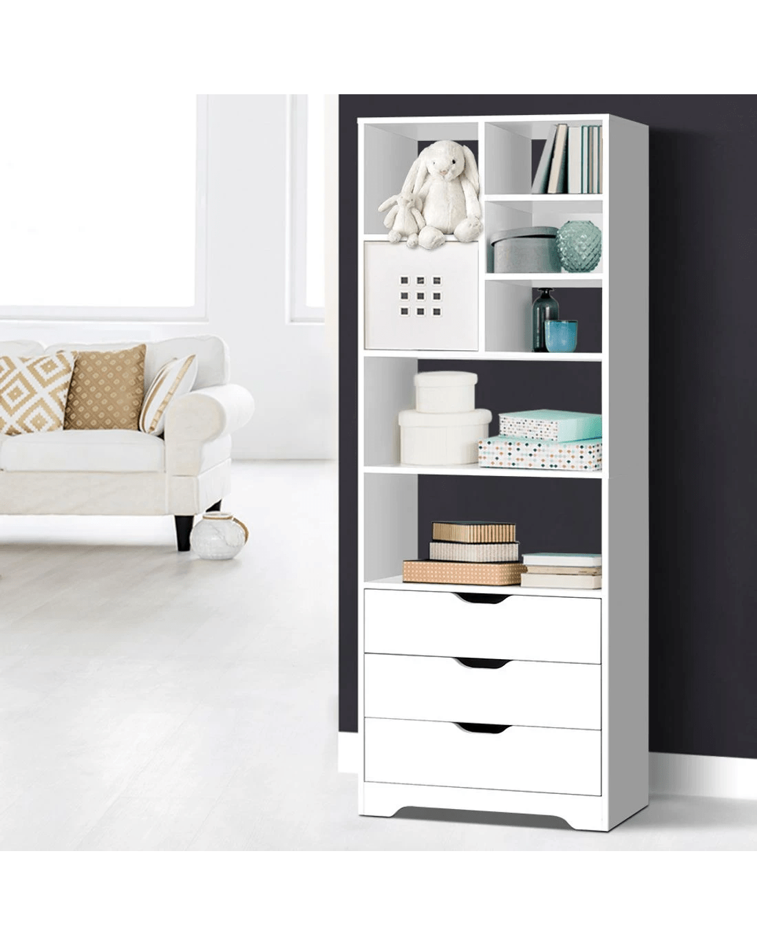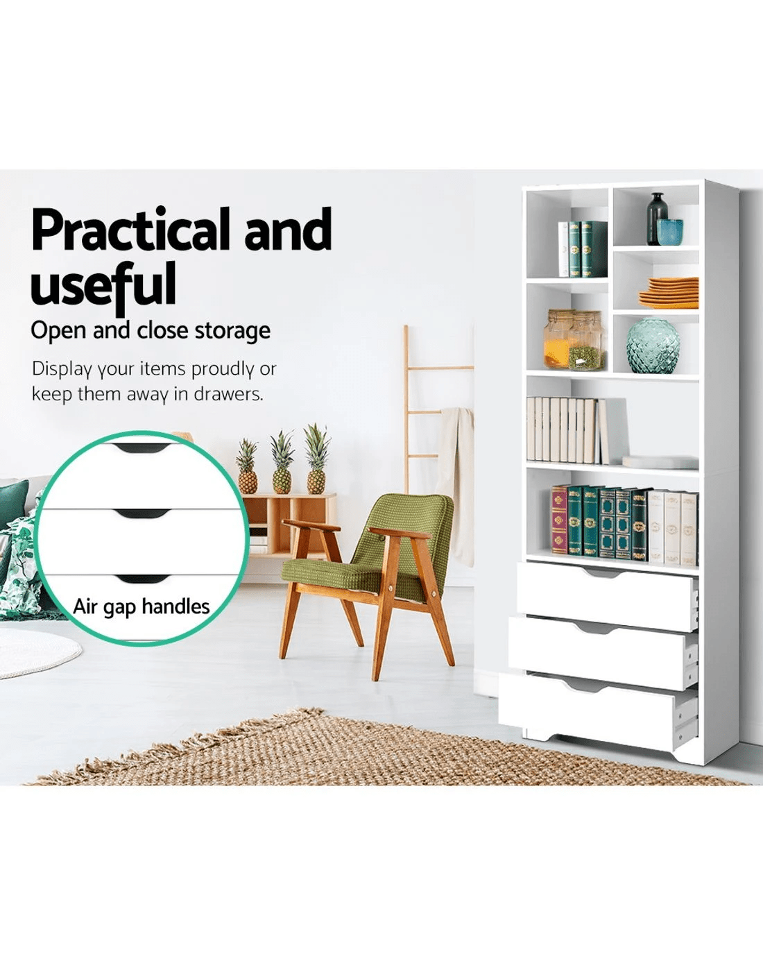 Modern and sleek. Our Artiss Display Shelf has the best of everything you want in storage options. With seven spacious shelves and three drawers, this display shelf lets you showcase all your favourite items openly and in closed storage. And with its tall, slim-line design, durable construction, air gap handles, back panel, anti-scratch feet and sturdy base, this space-saving display shelf has every feature that makes it a popular choice for the discerning home stylist