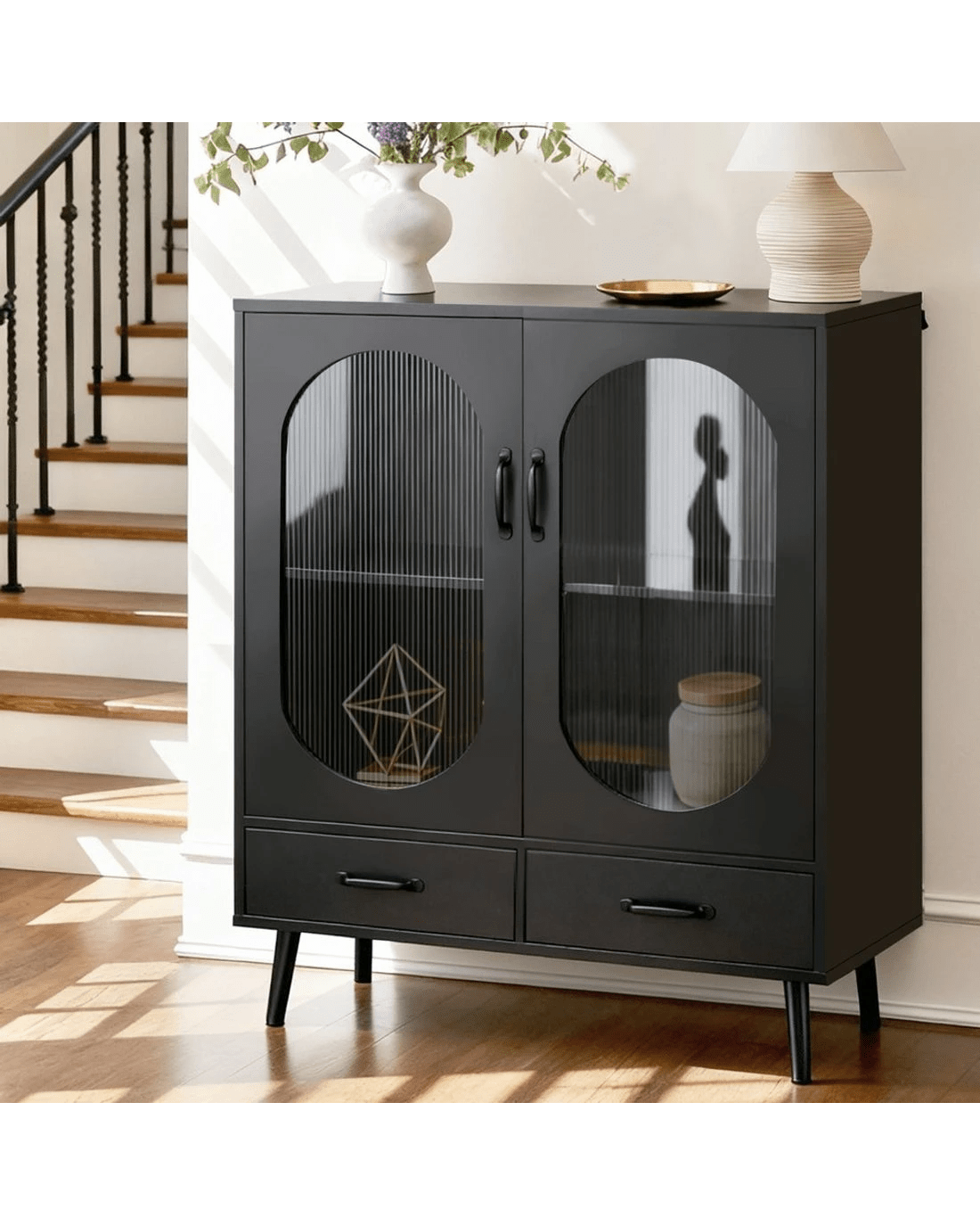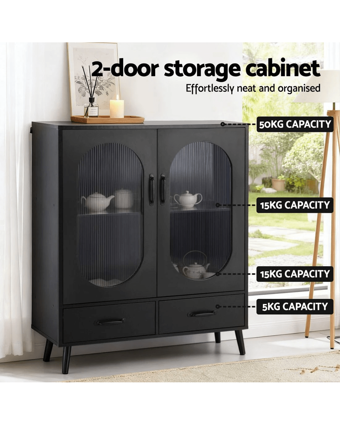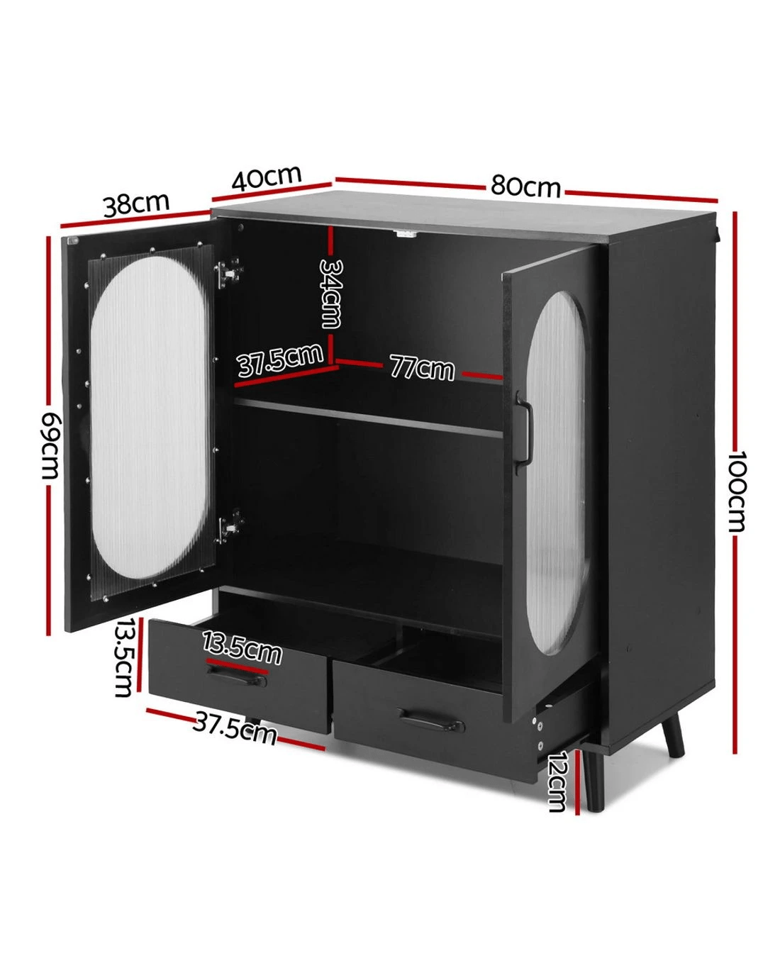 The Lency Buffet Sideboard is a stylish and functional storage solution for your modern home. With two large cabinets and two generous drawers, the cabinet offers ample storage space to keep your belongings organised and clutter-free. The fluted plastic door panels add a touch of elegance while the magnetic door fittings ensure secure closure. Solid pinewood legs keep the cabinet standing tall, and the quality metal hinges ensure durability and longevity. For additional safety, your purchase includes an anti-tip kit to secure your cabinet to the wall. Cleaning and maintenance are a breeze, making this sideboard a practical choice. Plus, it is easy to assemble, saving you time and effort. Upgrade your living space with the Artiss Lency Buffet Sideboard today.