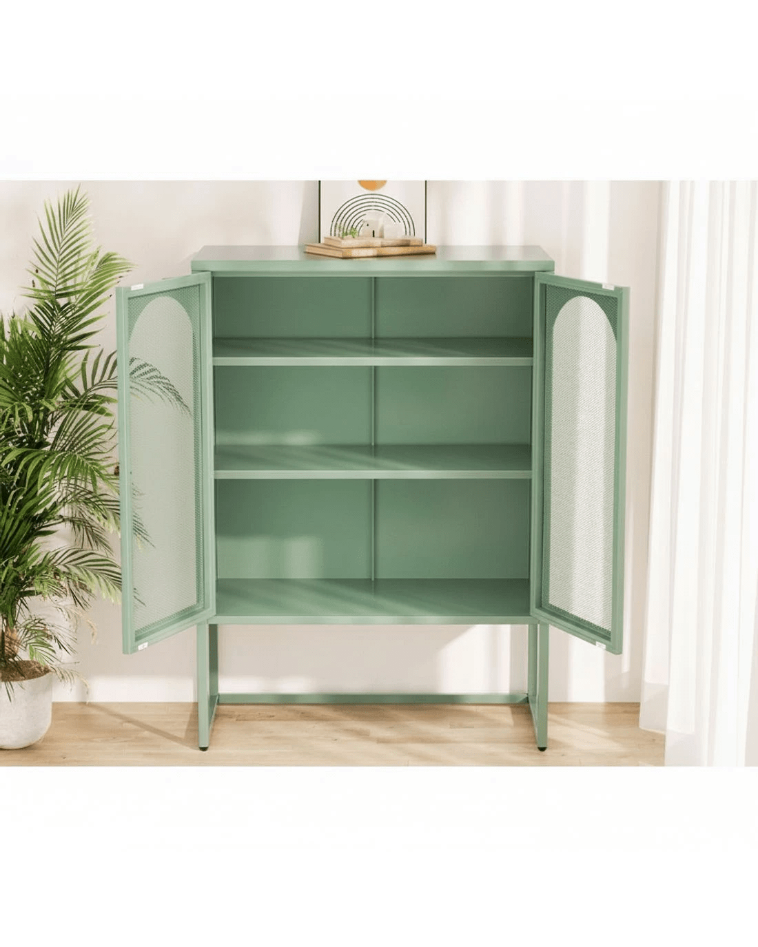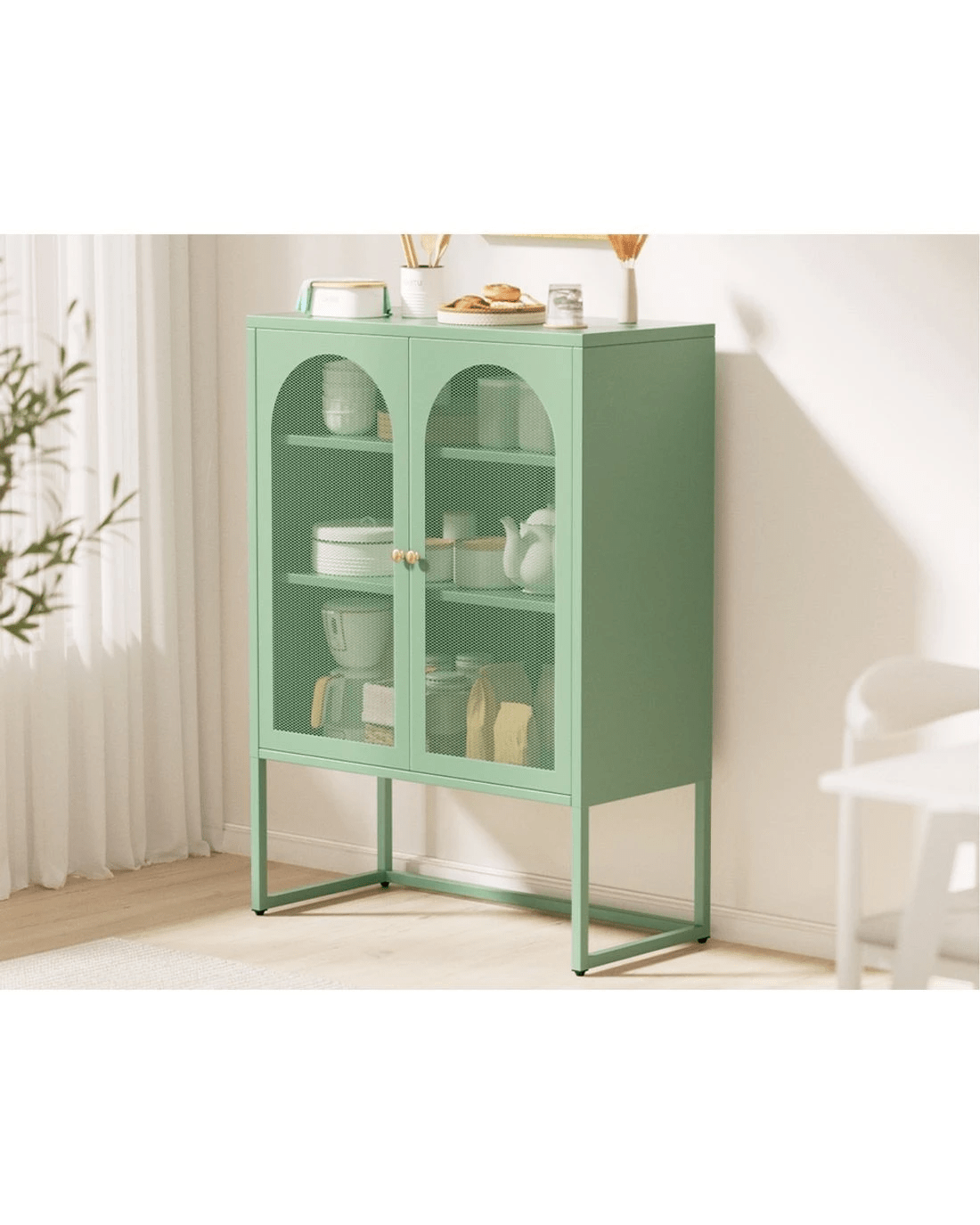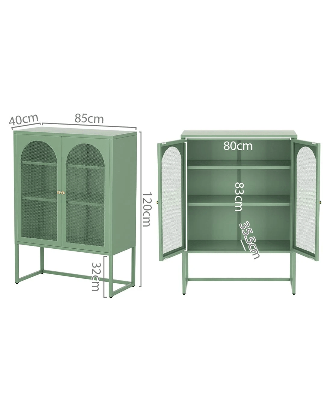 For a beautiful combination of modern functionality and timeless design, the new Artiss Elma Buffet Sideboard will give your home a cheerful, modern refresh. Whether you need extra storage space or want to revamp your space with unique furniture pieces, the Elma is a real statement piece. The two-door cabinet is made from high-quality cold-rolled steel and features two adjustable shelves for all your essentials. The doors feature stylish arched mesh panels so you can see exactly what's inside. Each shelf has a 20kg weight capacity, with a 40kg weight capacity for the base and top. The smooth surface is easy to clean and maintain – simply wipe down with a damp cloth. Adjustable feet pads keep the cabinet in place while also protecting your floors. For extra security, you can attach the cabinet to the wall with the built-in anchor points. Looking for a contemporary glow-up? Get your hands on the Artiss Elma Buffet Sideboard today.