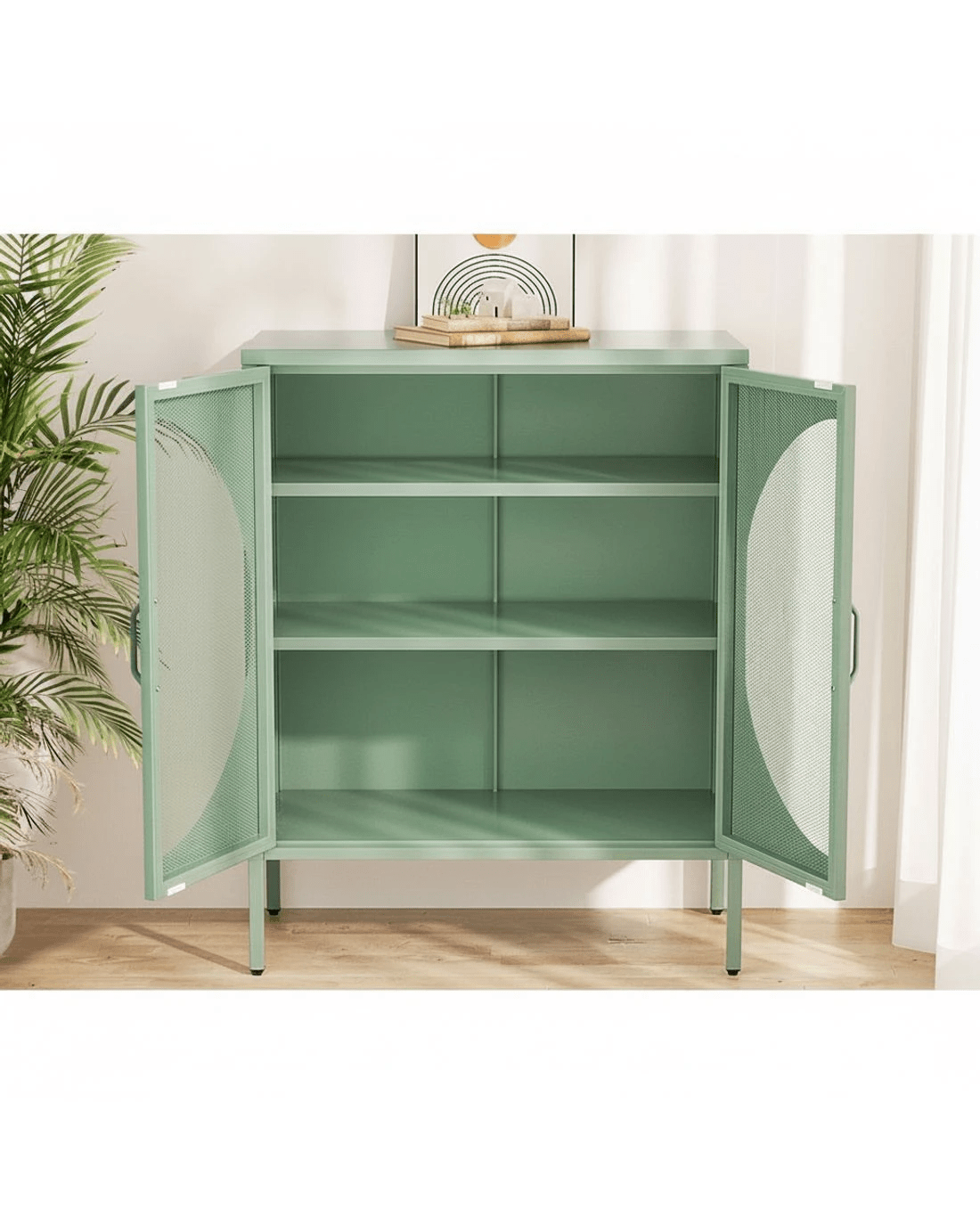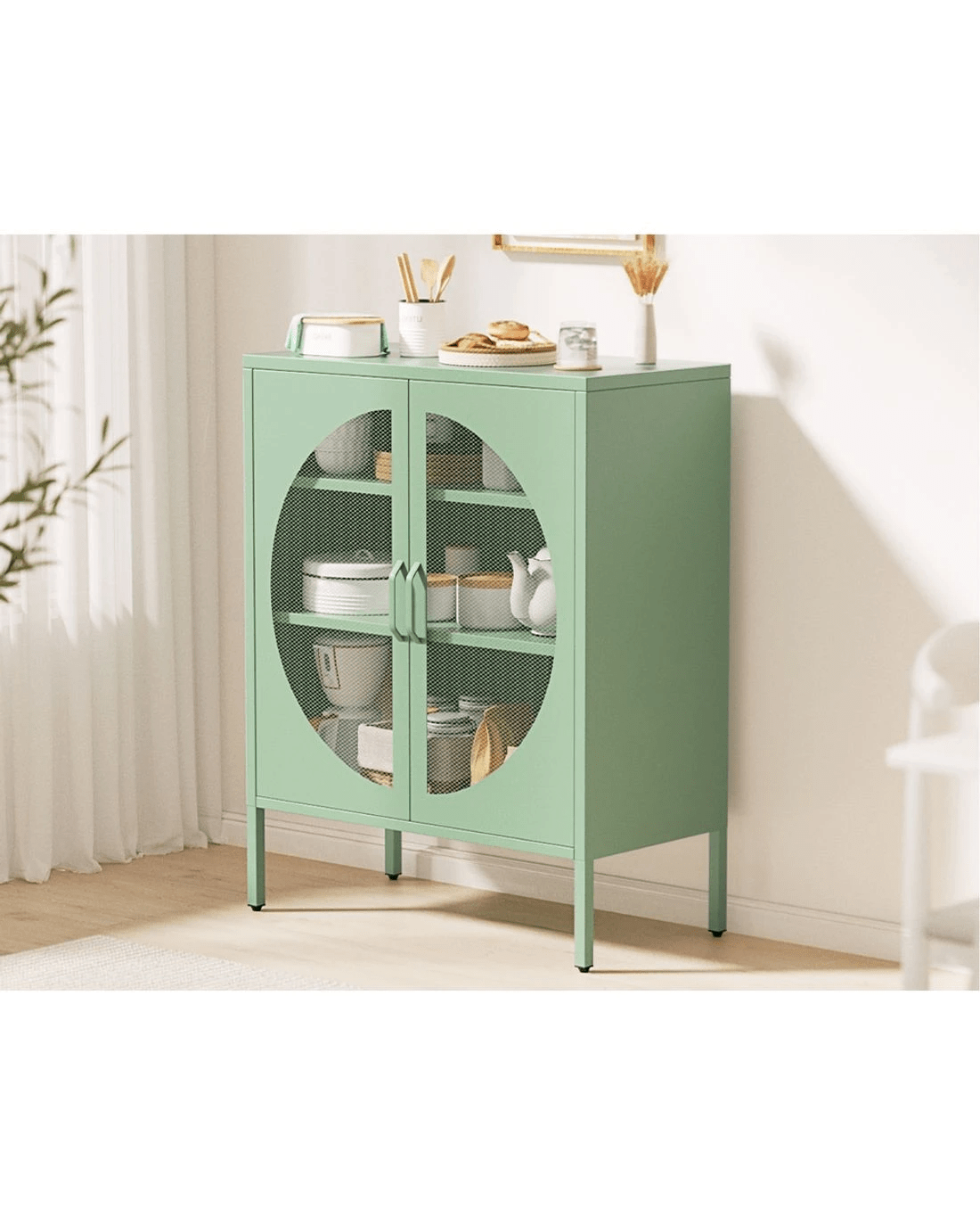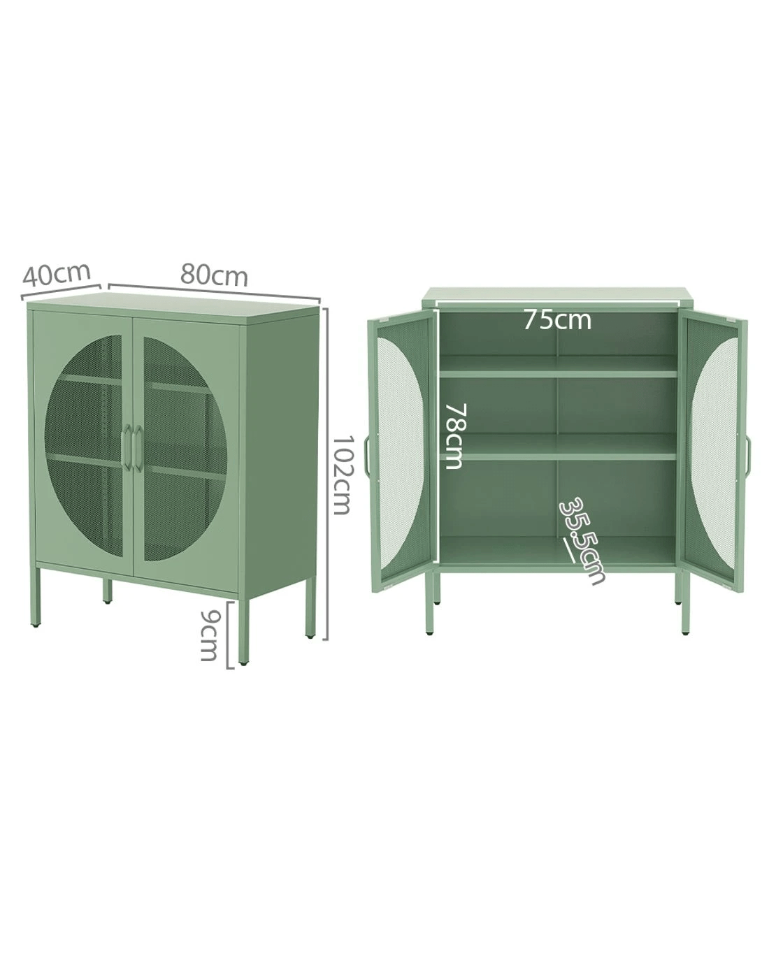 For a beautiful combination of modern functionality and timeless design, the new Artiss Elsa Buffet Sideboard will give your home a cheerful, modern refresh. Whether you need extra storage space or want to revamp your space with unique furniture pieces, the Elsa is a real statement piece. The two-door cabinet is made from high-quality cold-rolled steel and features two adjustable shelves for all your essentials. The doors feature a stylish circular mesh hole so you can see exactly what's inside. Each shelf has a 20kg weight capacity, with a 40kg weight capacity for the base and top. The smooth surface is easy to clean and maintain – simply wipe down with a damp cloth. Adjustable feet pads keep the cabinet in place while also protecting your floors. Looking for a contemporary glow-up? Get your hands on the Artiss Elsa Buffet Sideboard today.