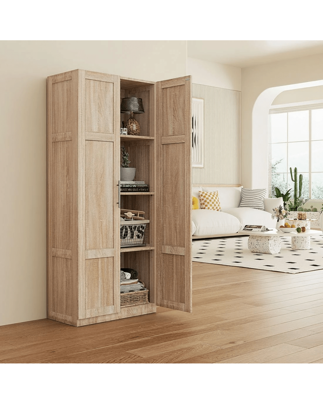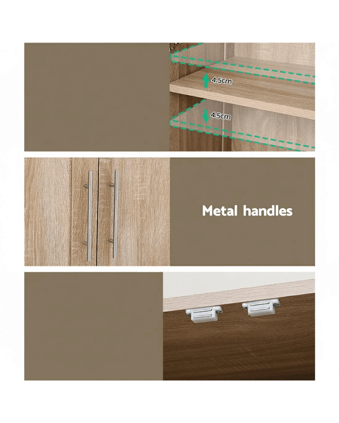 Need more storage space in your kitchen or living room? Our Tall Cupboard from Artiss may just be the solution for you. With four shelves in the cabinet the cabinet provides more than ample space for all your essentials. Plus, the doors have magnetic catches for easy and tight closure; The cabinet can be used as storage in your bathroom, pantry, or bedroom. Mix and match with other pieces for the perfect look!