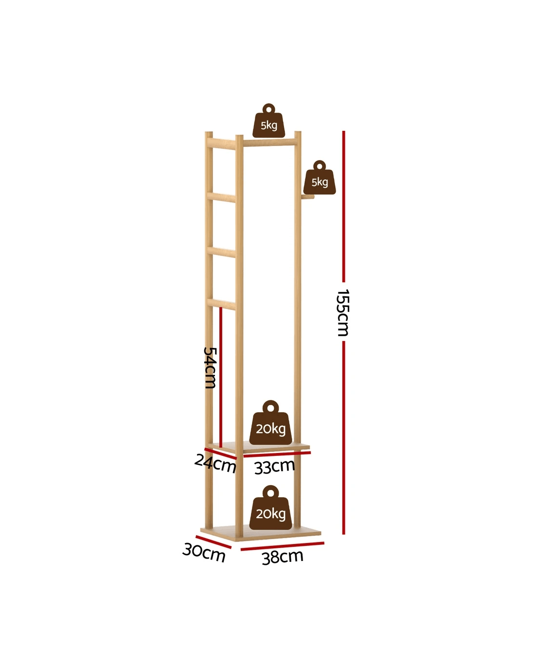 Overall dimensions: 38cm x 30cm x 155cm