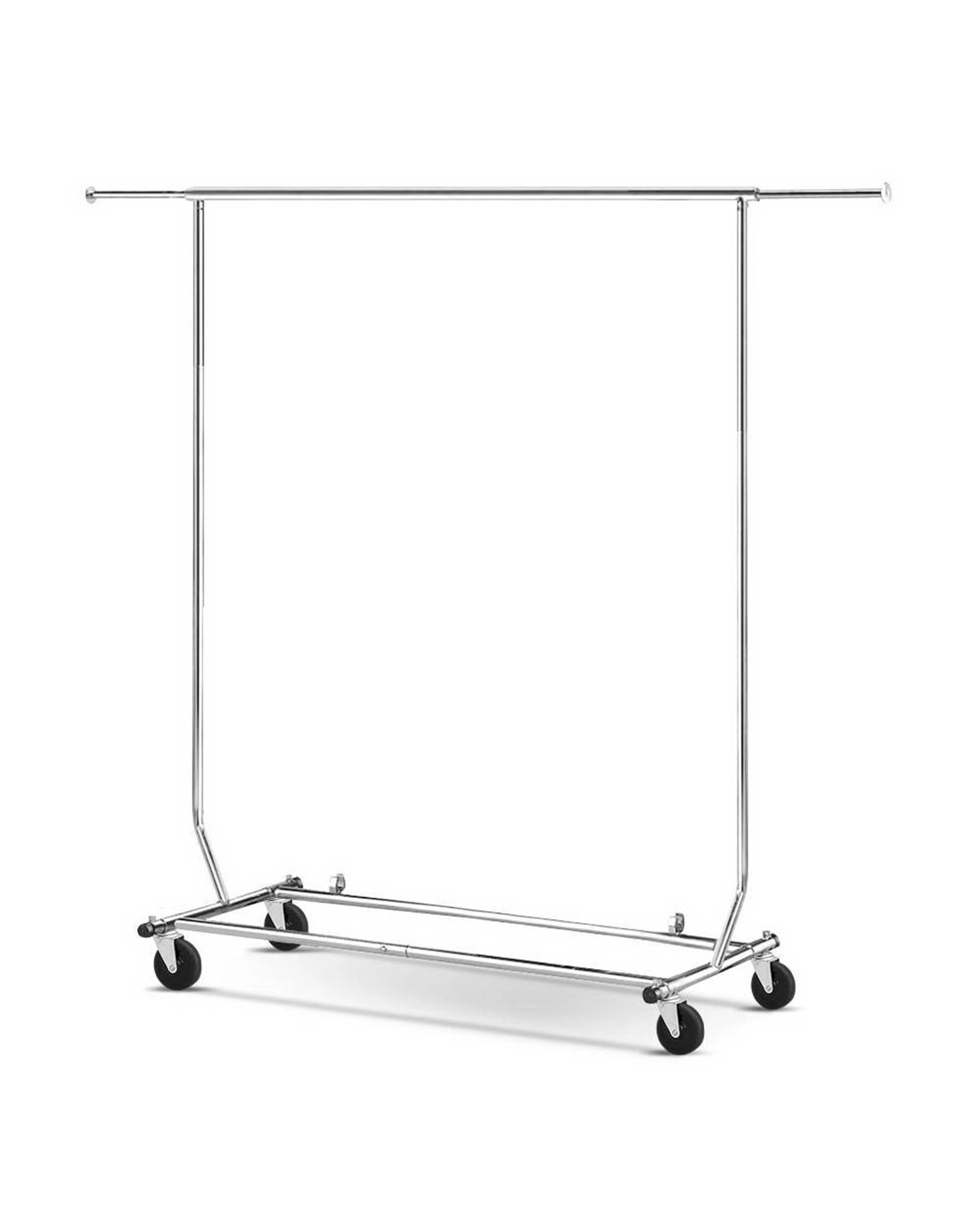 Our Artiss heavy duty adjustable garment rack with wheels is as stylish as it is practical. Made from strong metal with a chrome finish, the clothes rack features thicker metal tubes that can withstand the rigours of constant use as well as providing better corrosion resistance. The top bar can hold up to 80kg while the twin lower bars can hold up to 30kg. Better still, the width and height are adjustable to fit your clothes based on your requirements. The heavy duty clothes rack also has anti-slip stoppers to prevent your clothes from sliding off the rack while the strong and large 10cm diameter wheels are omni-directional with two castors that come with brakes. Not least, it comes with four plastic caps to prevent damage to wall and furniture when moving the rack from place to place. The heavy duty clothes rack is collapsible for easy storage and transport.