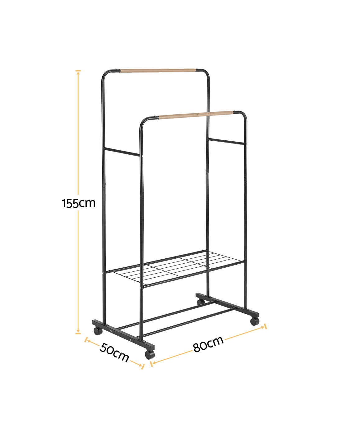 Artiss Clothes Rack Double Rod Airer Rail Coat Stand Adjustable - Black