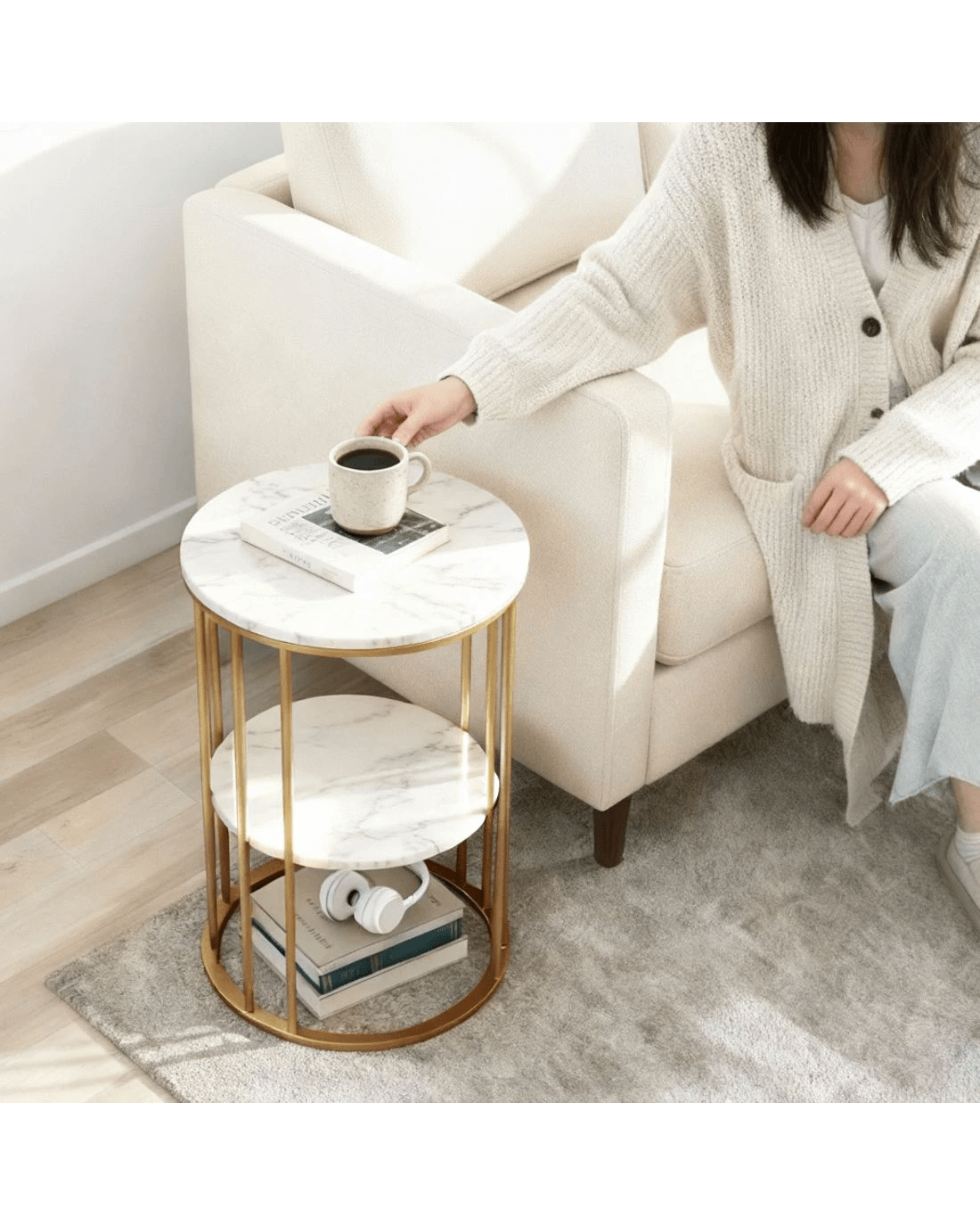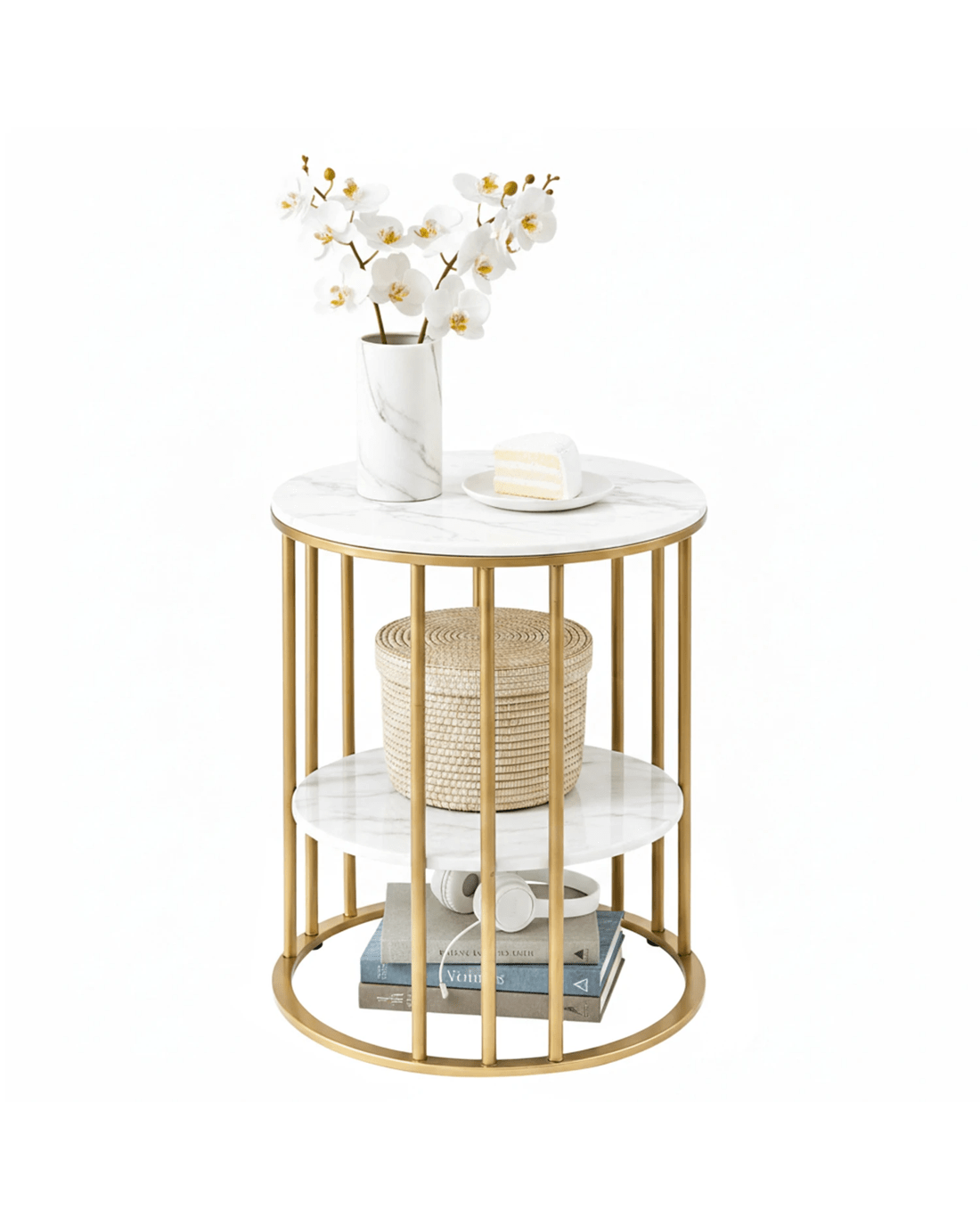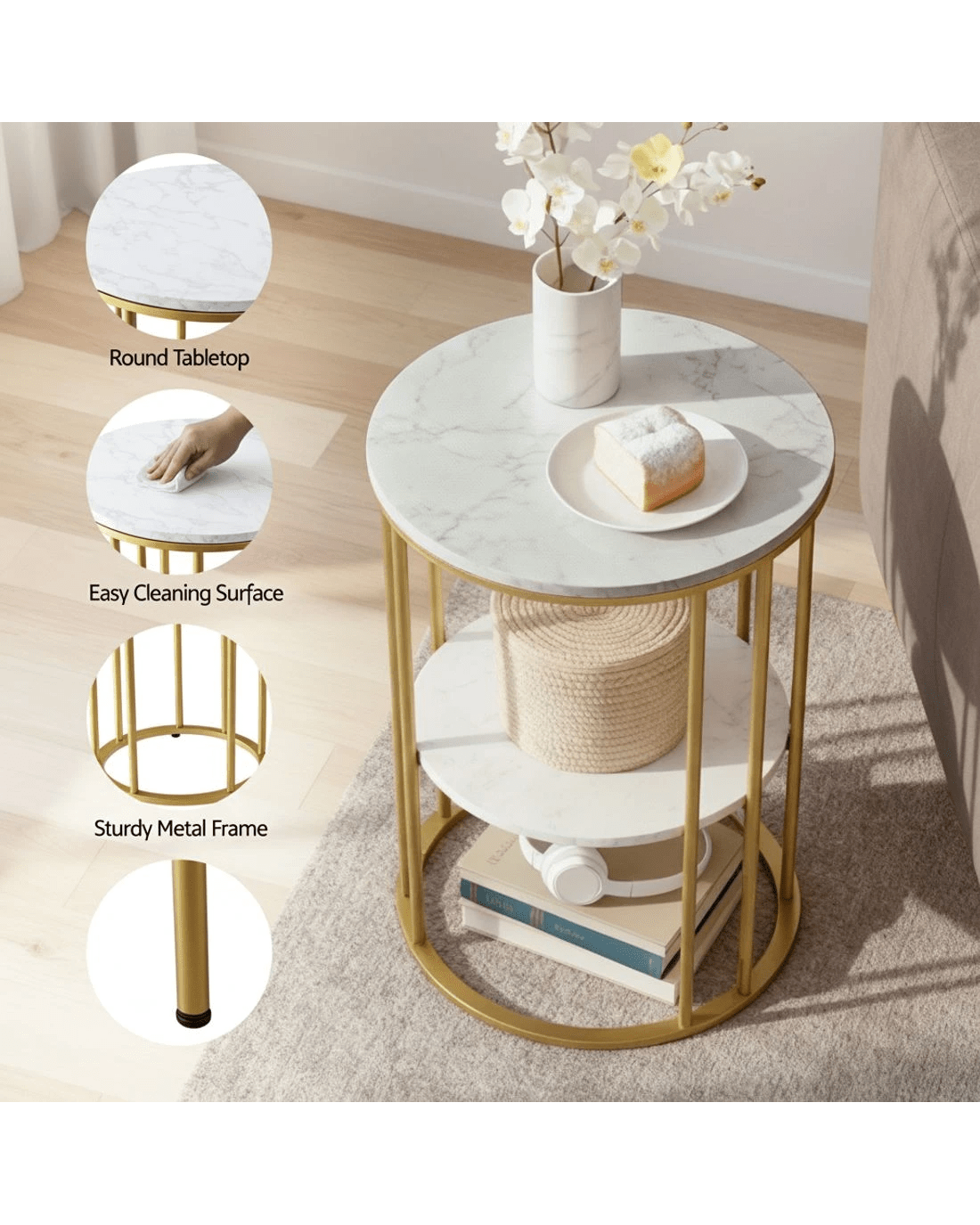Sold by Aisle SixArtiss Coffee Table 2-Tier Round Marble Effect &Gold - Multi