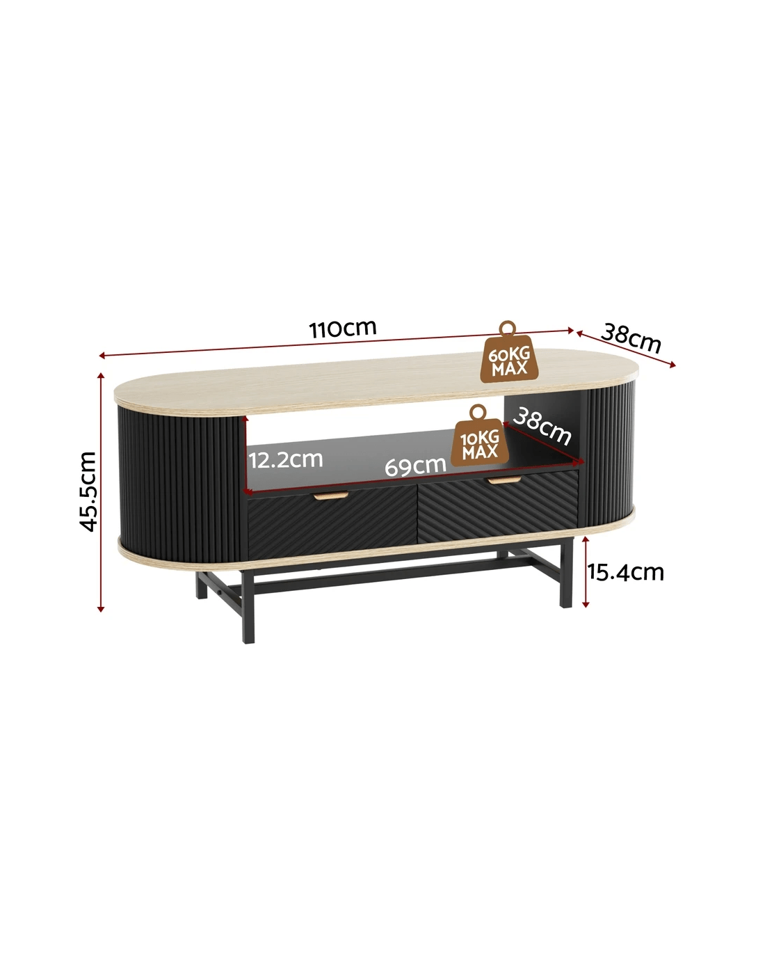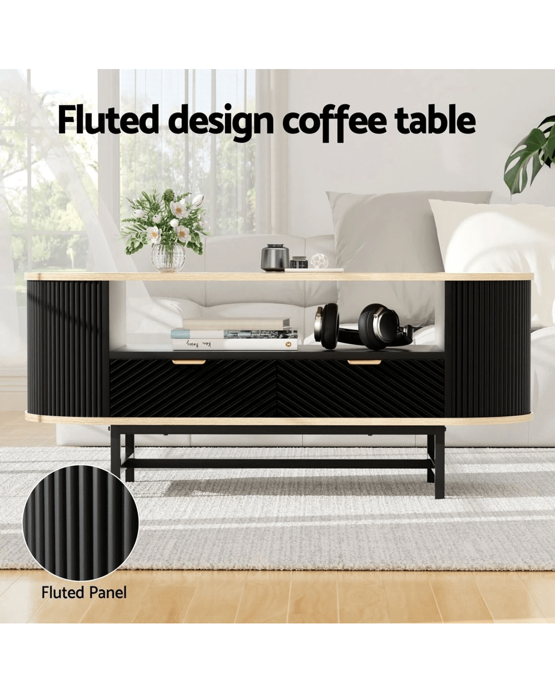 The Artiss Coffee Table combines modern design with practicality. Its spacious 110cm tabletop is perfect for holding drinks, books, or decorative items, while the two large drawers and open shelf provide ample storage for everyday essentials. The elegant fluted design and sleek metal handles add a touch of sophistication to any room. Ideal for living rooms, offices, or lounges, this coffee table is durable, easy to assemble, and easy to clean—offering both functionality and style in one piece.