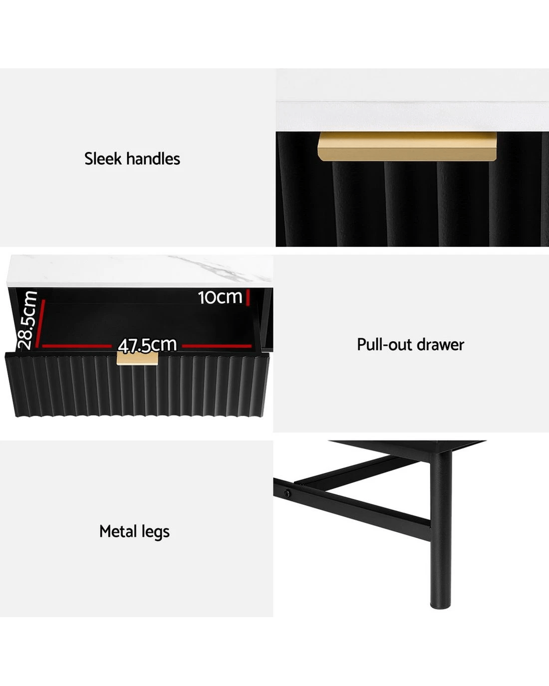 Drawer max. load: 10kg each
