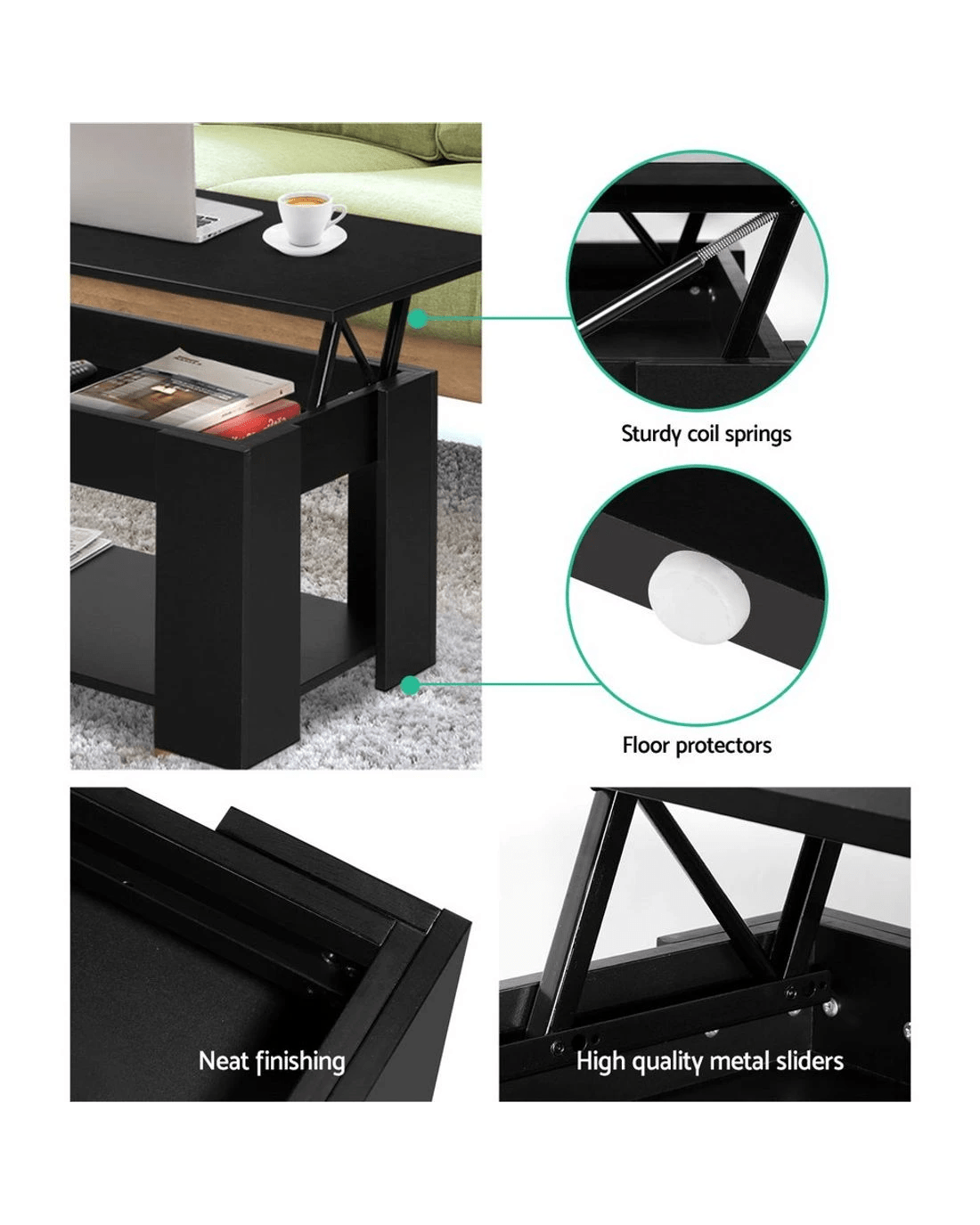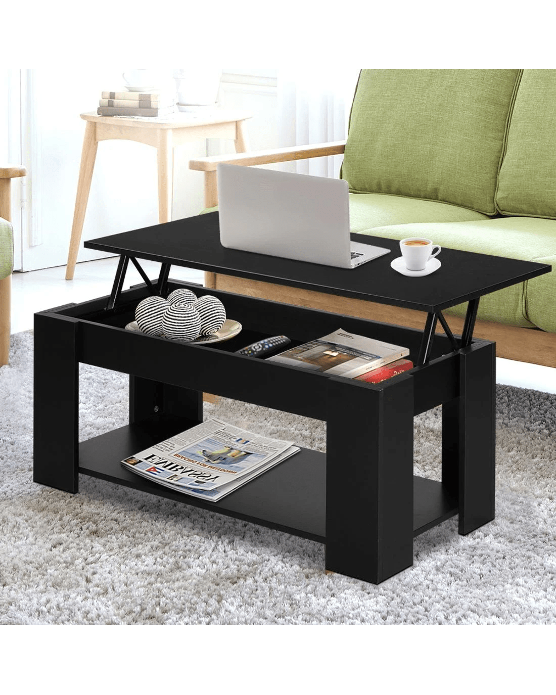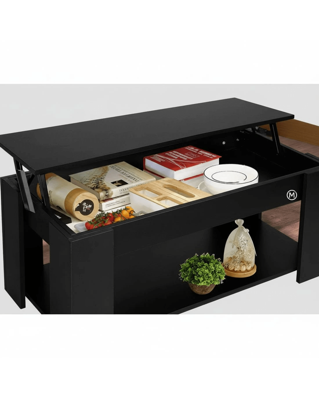 On first look, the immaculate all-black Lift-Top Coffee Table is a beautifully crafted and finished coffee table with meticulous workmanship. Lift up the table top and that's where the magic begins.