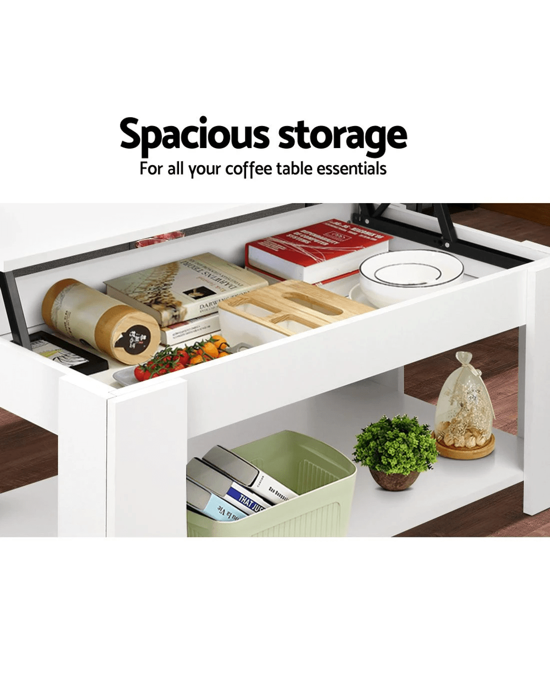 On first look, the immaculate all-white Lift-Top Coffee Table is a beautifully crafted and finished coffee table with meticulous workmanship. Lift up the table top and that's where the magic begins.