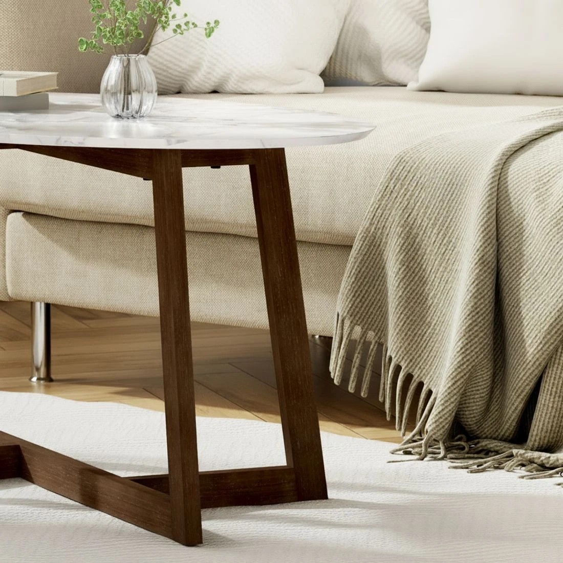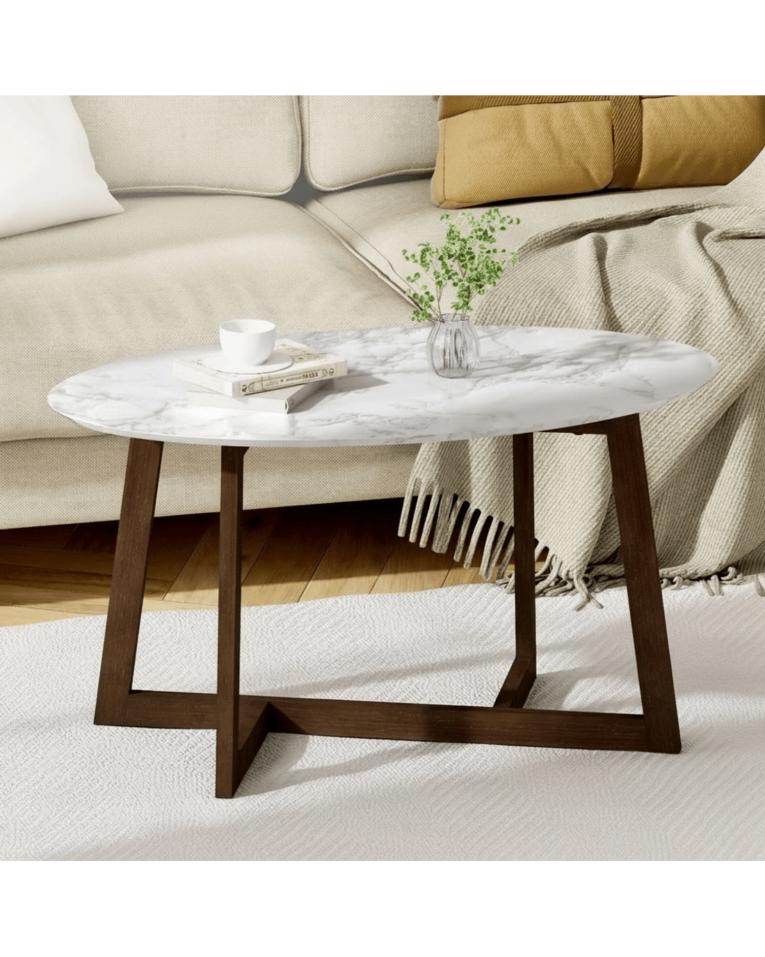 Artiss Coffee Table Oval Marble Effect - Brown